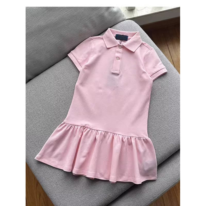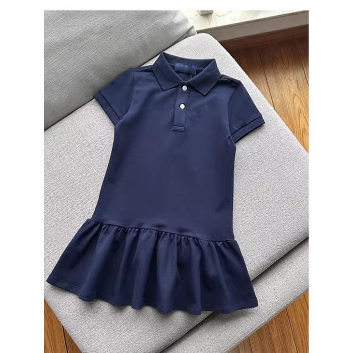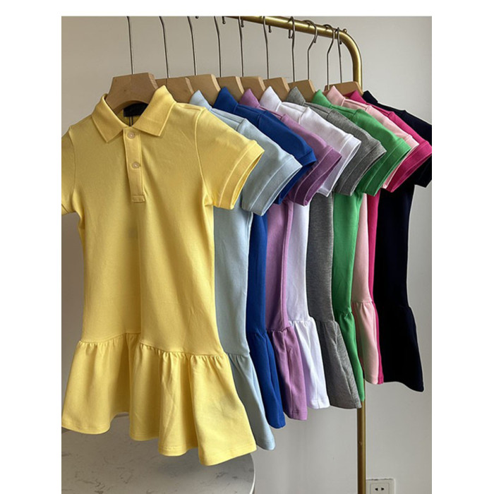 寶媽福利~女童珠地棉POLO翻領短袖荷葉連衣裙 柔軟親膚