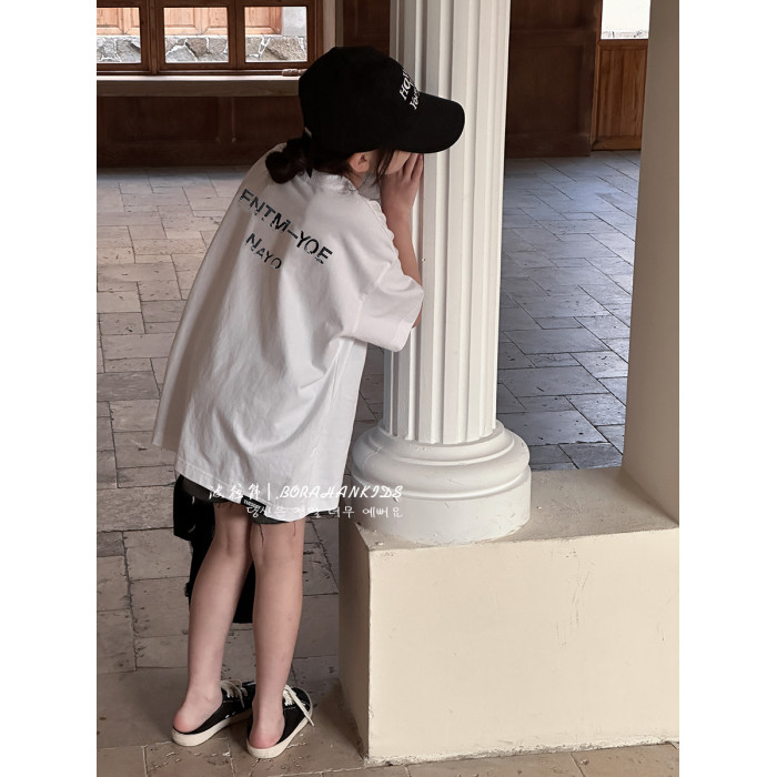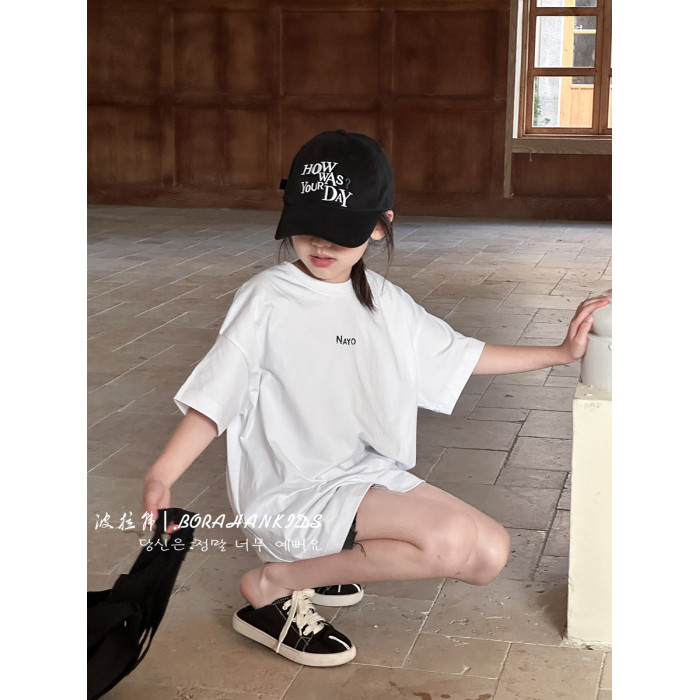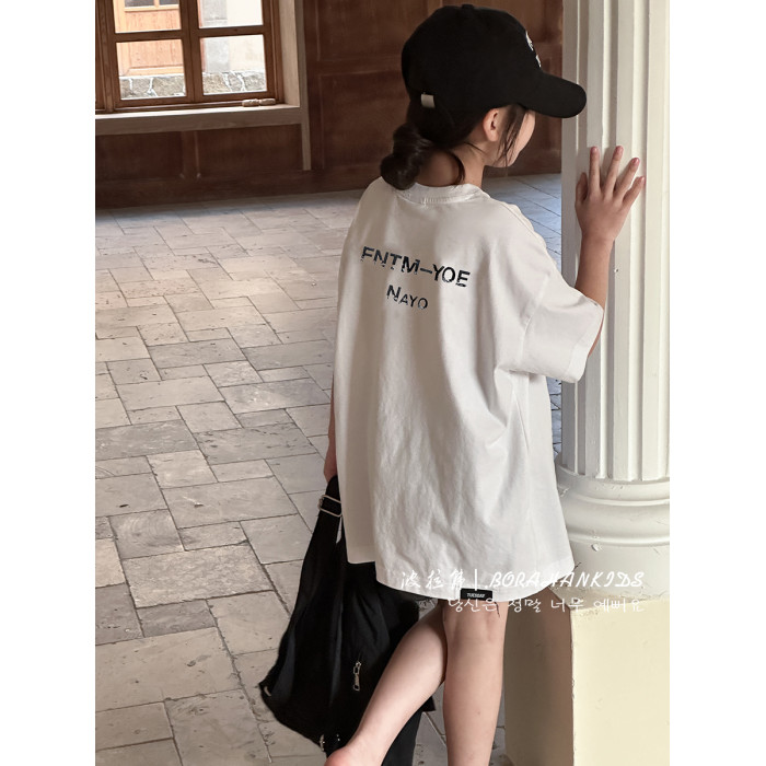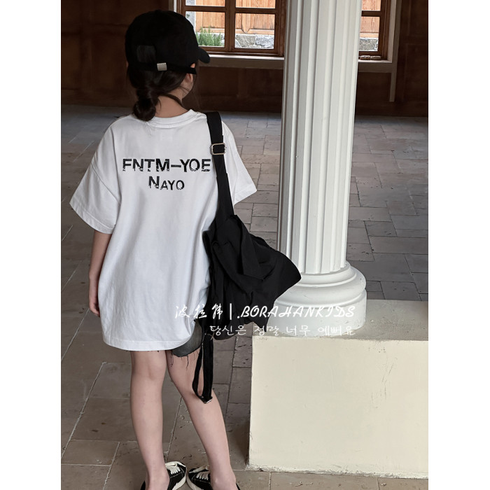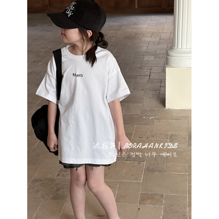 波拉韓童裝女童休閒短袖2025夏季薄款兒童圓領T恤中大童字母上衣