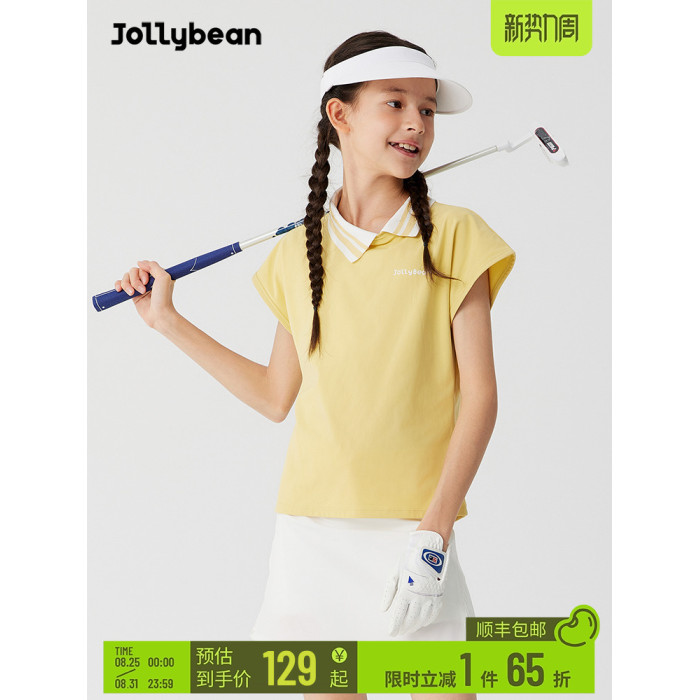 jollybean丨女童短袖POLO衫25夏季新款高爾夫不對稱領口運動上衣