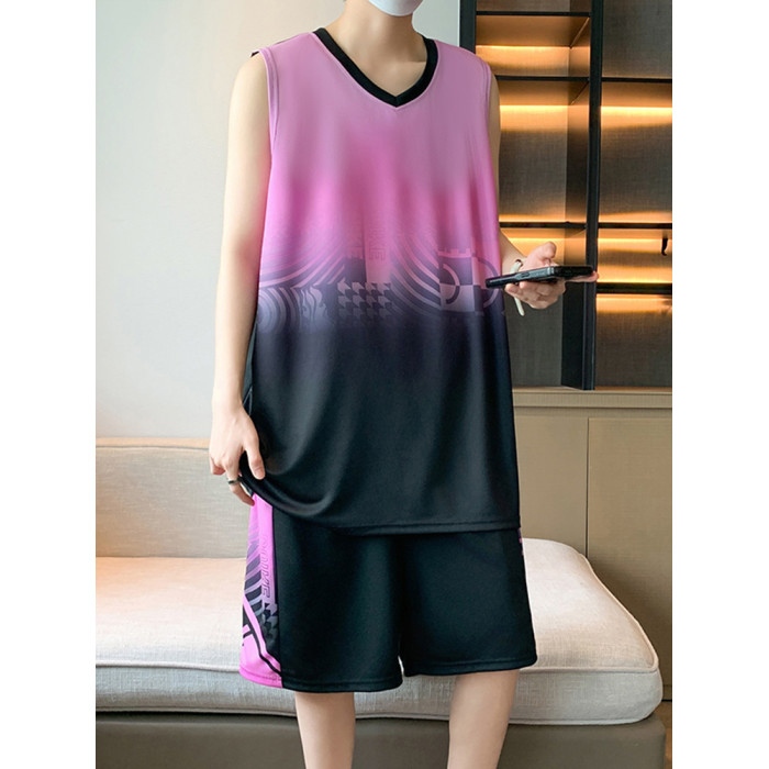 無袖籃球服套裝男寬松運動服2025新款背心冰絲速乾帥氣T恤青少年