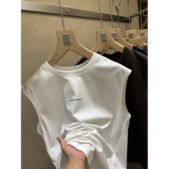 高品質!王簰質感!made in!印花男士純色無袖T恤背心25050