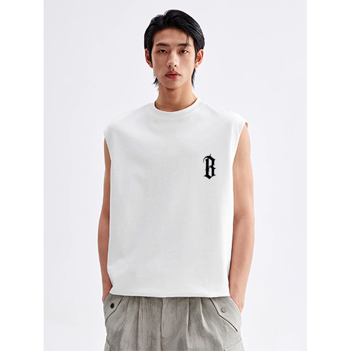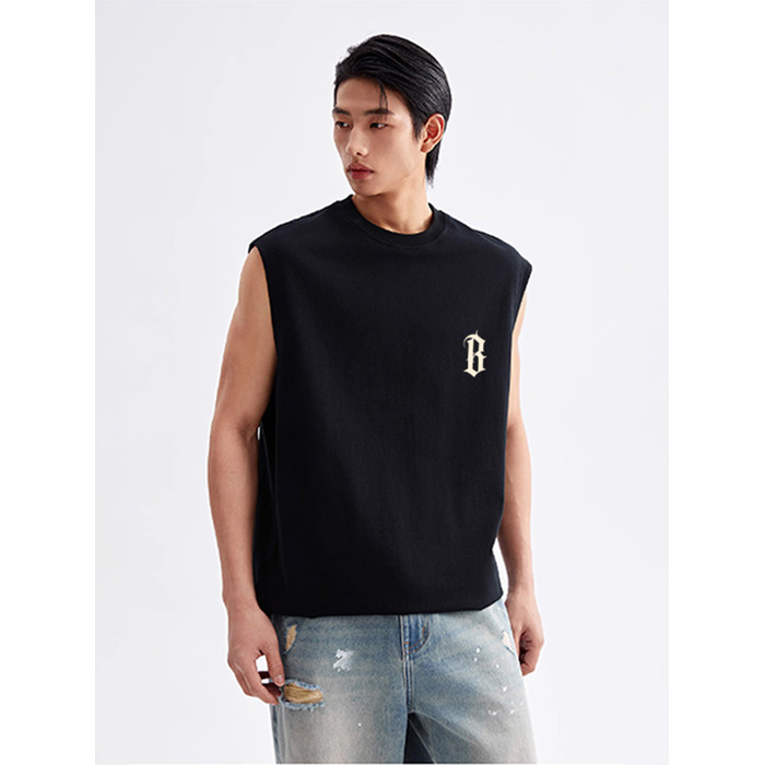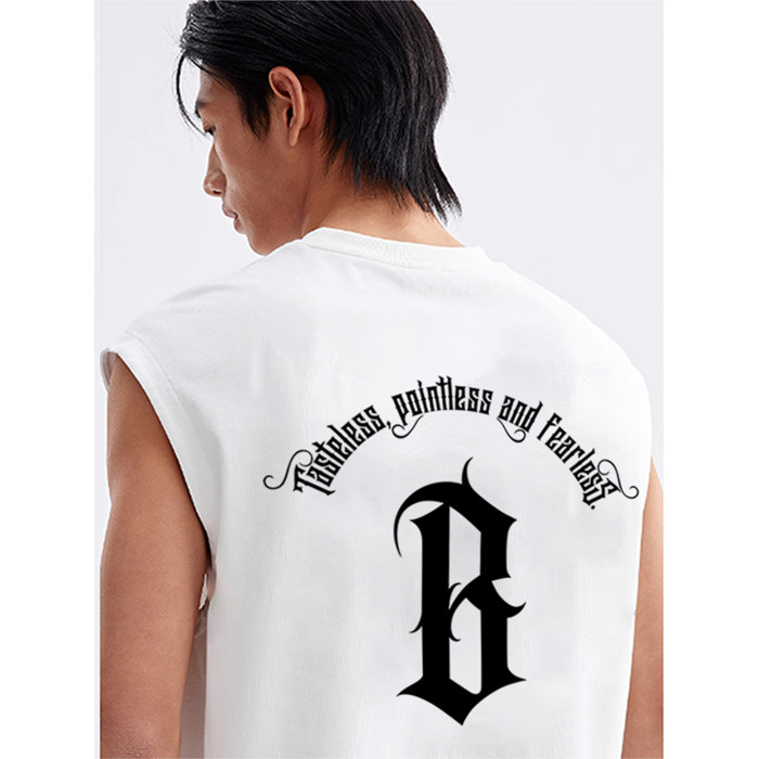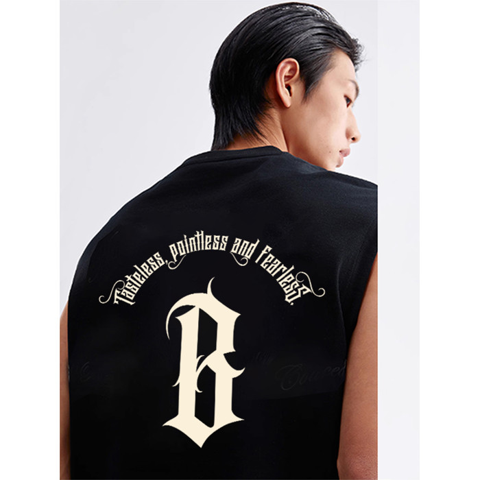 BONELESS BTW夏季美式印花背心重磅純棉無袖t恤男女潮流運動上衣