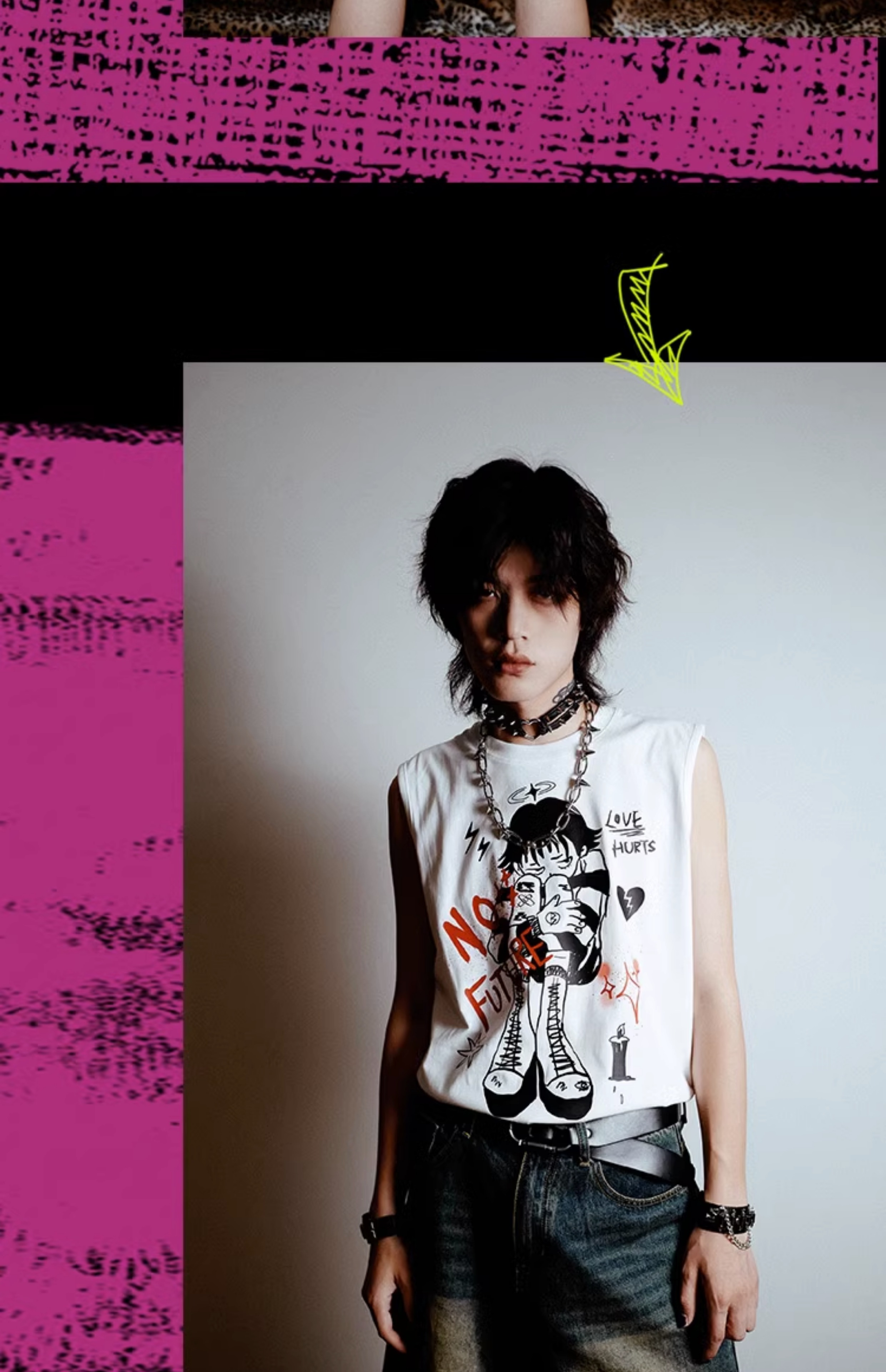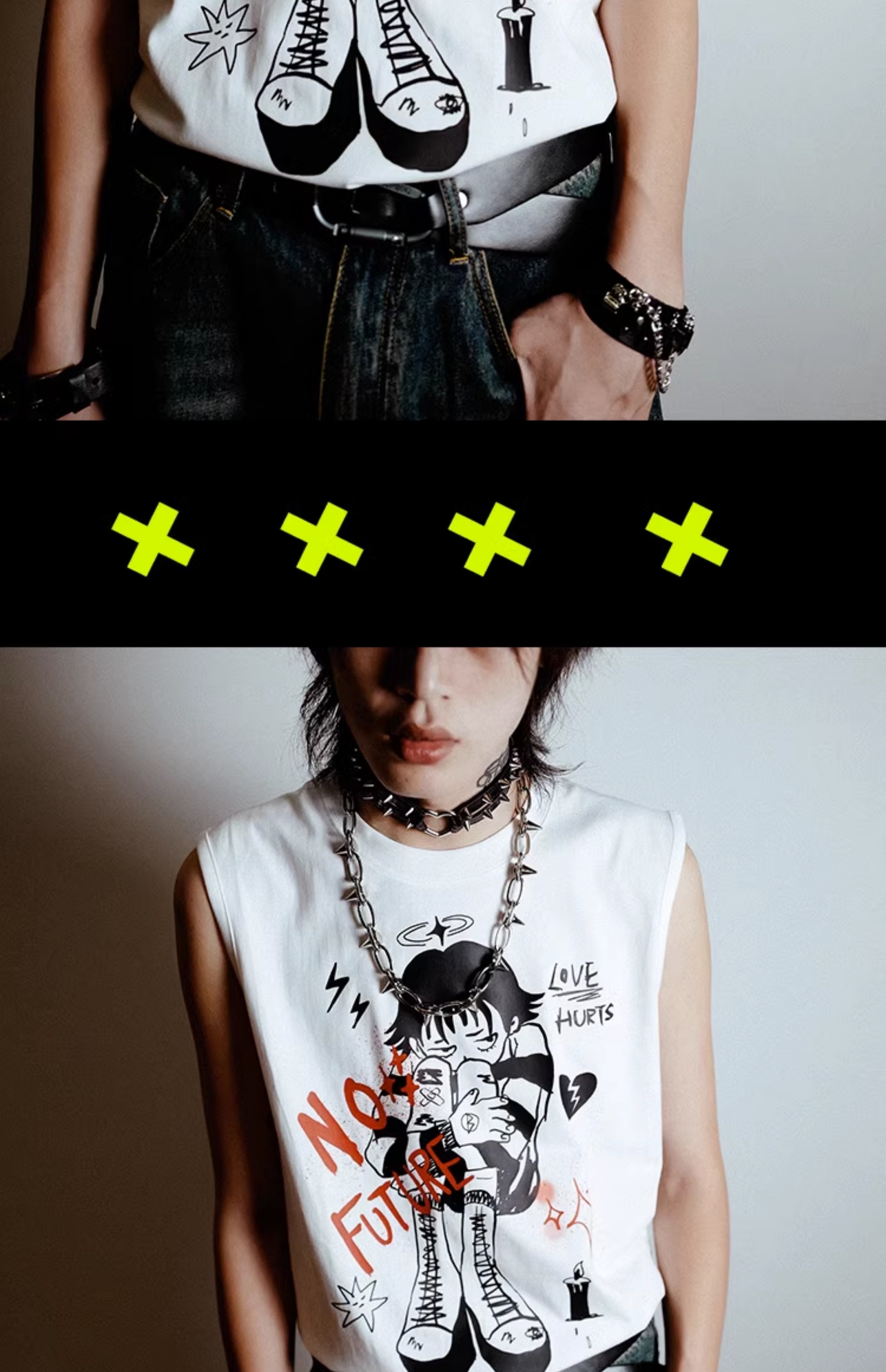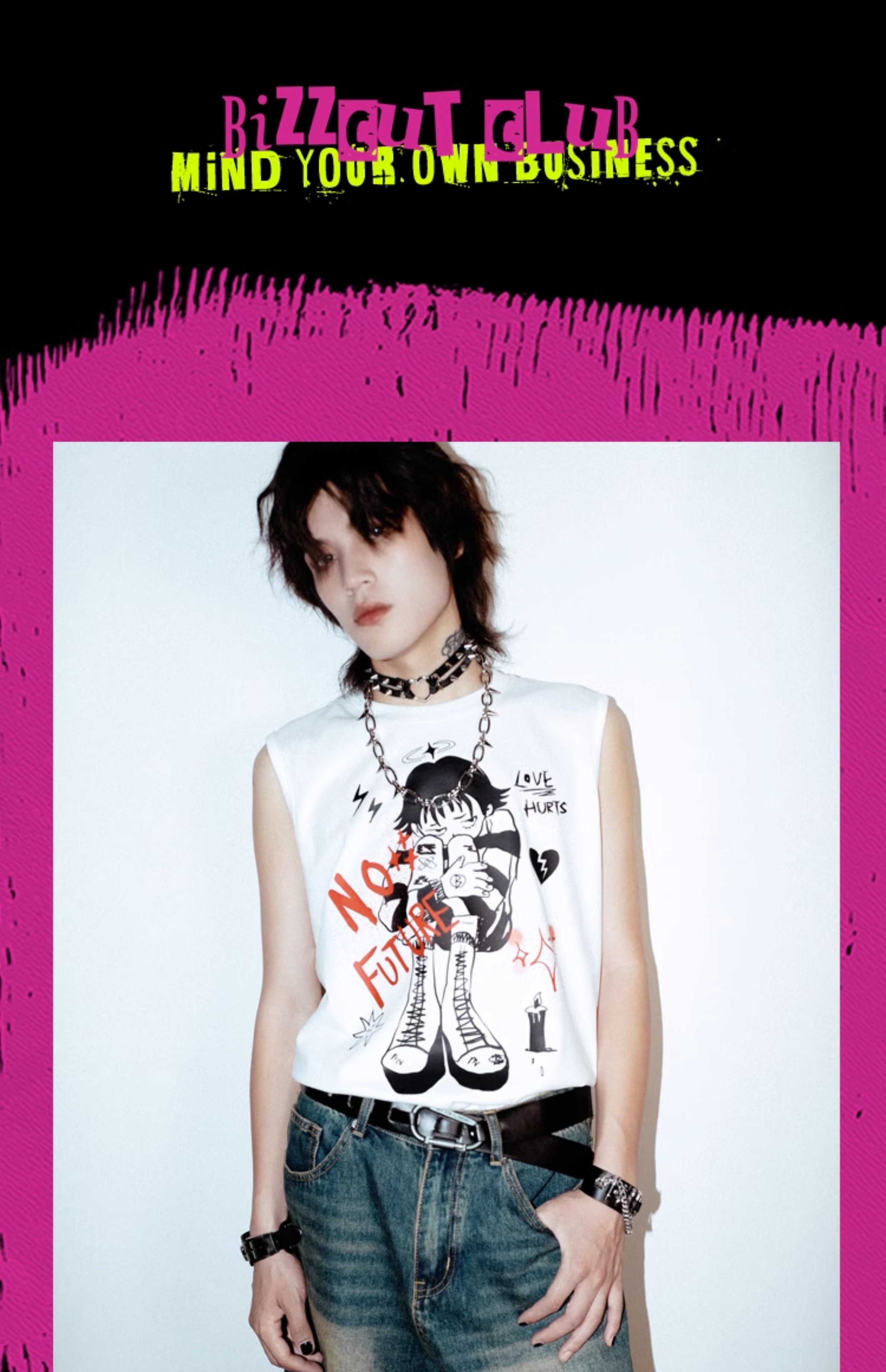 別閙BIZZCUT/青春往事/龐克坎肩無袖t恤男亞文化二次元亞比背心女