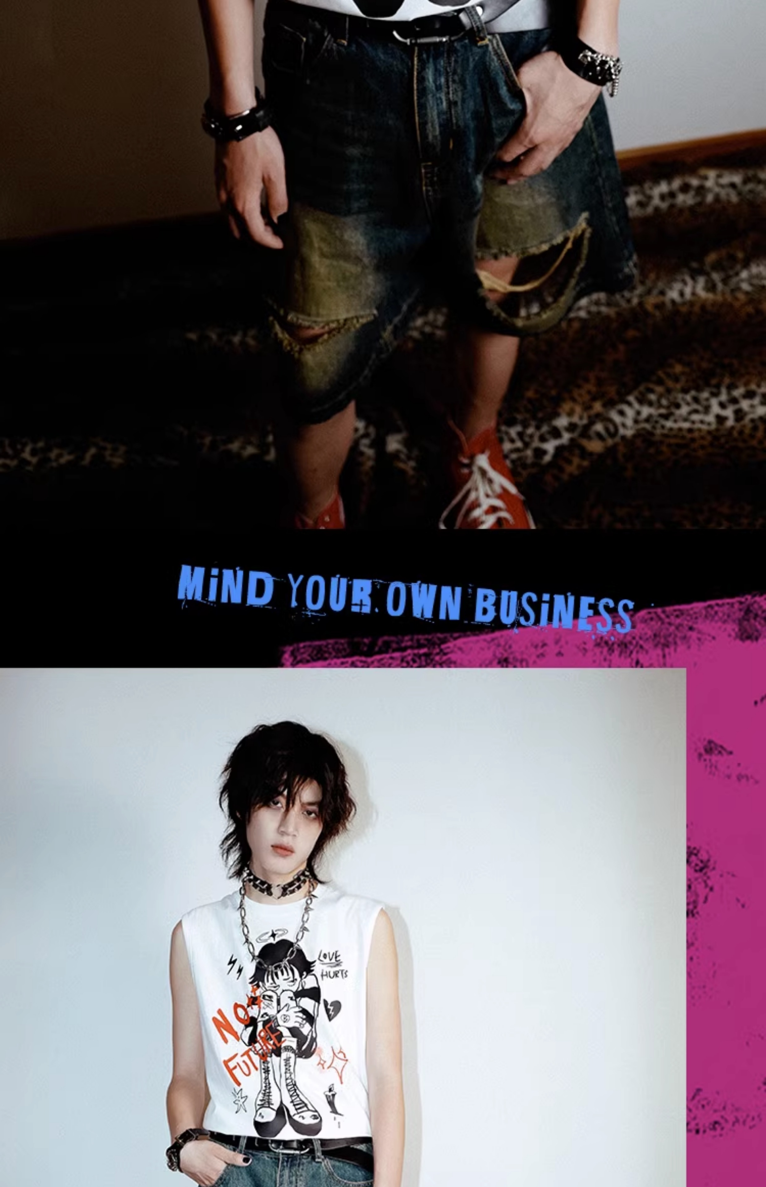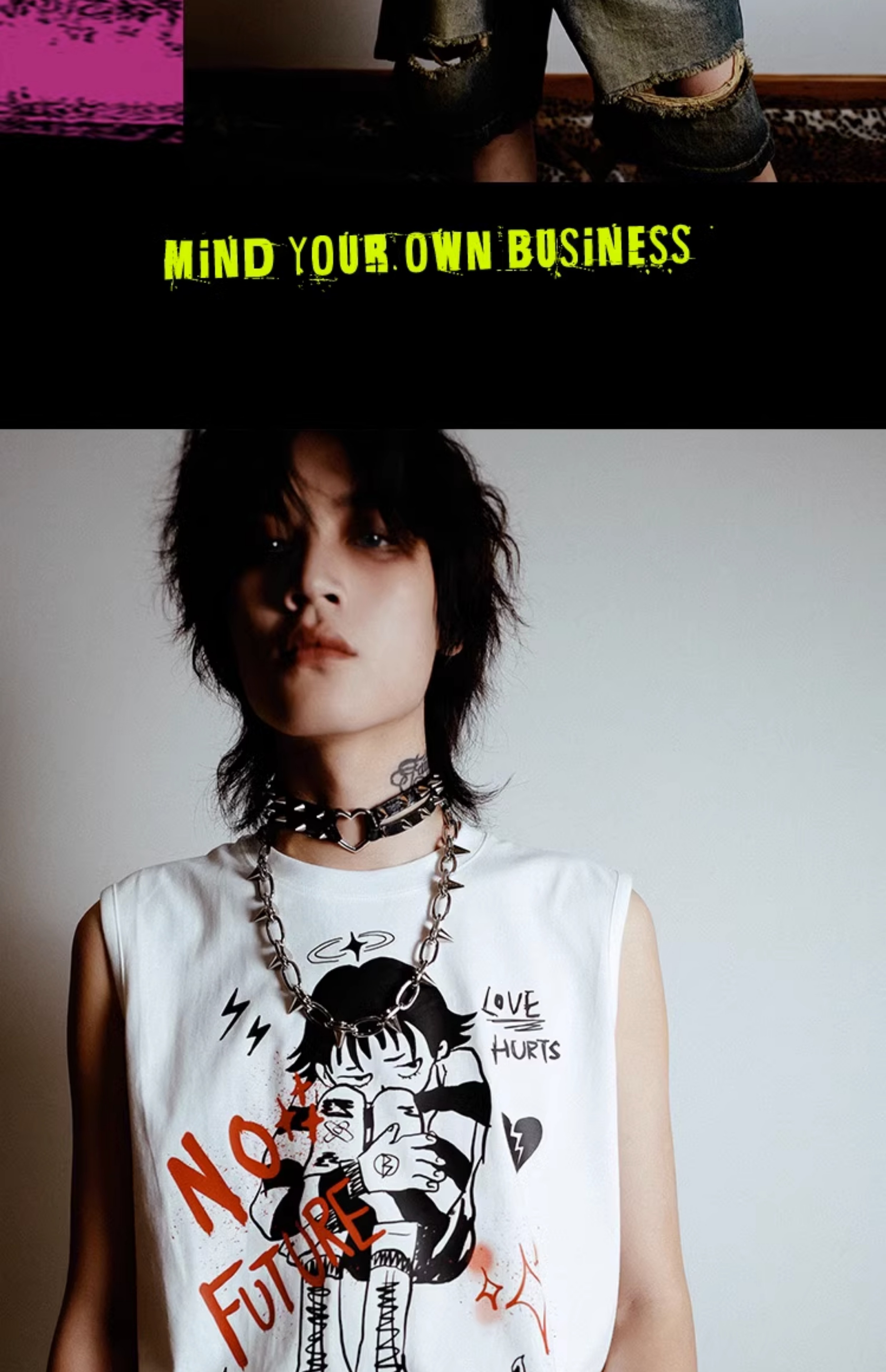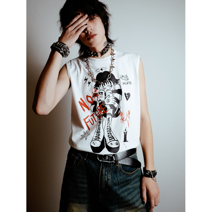 別閙BIZZCUT/青春往事/龐克坎肩無袖t恤男亞文化二次元亞比背心女