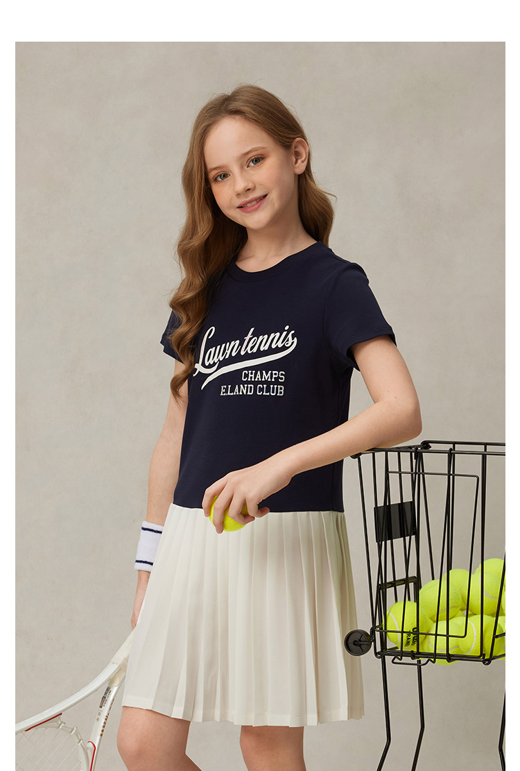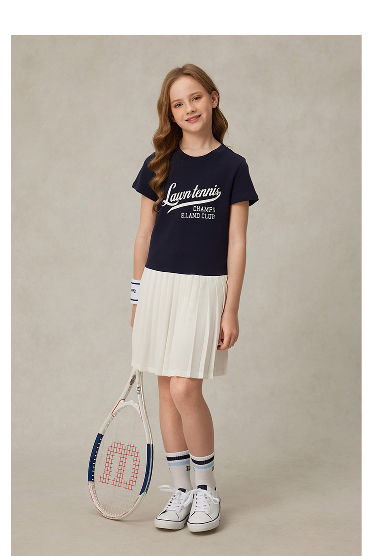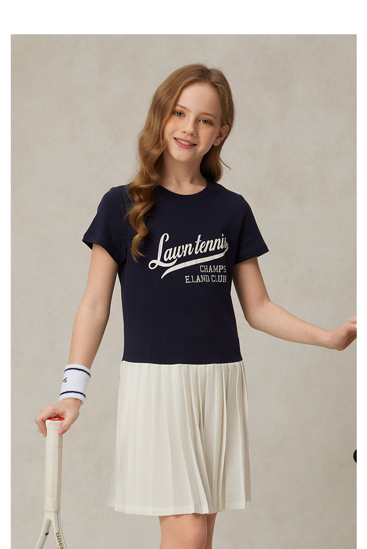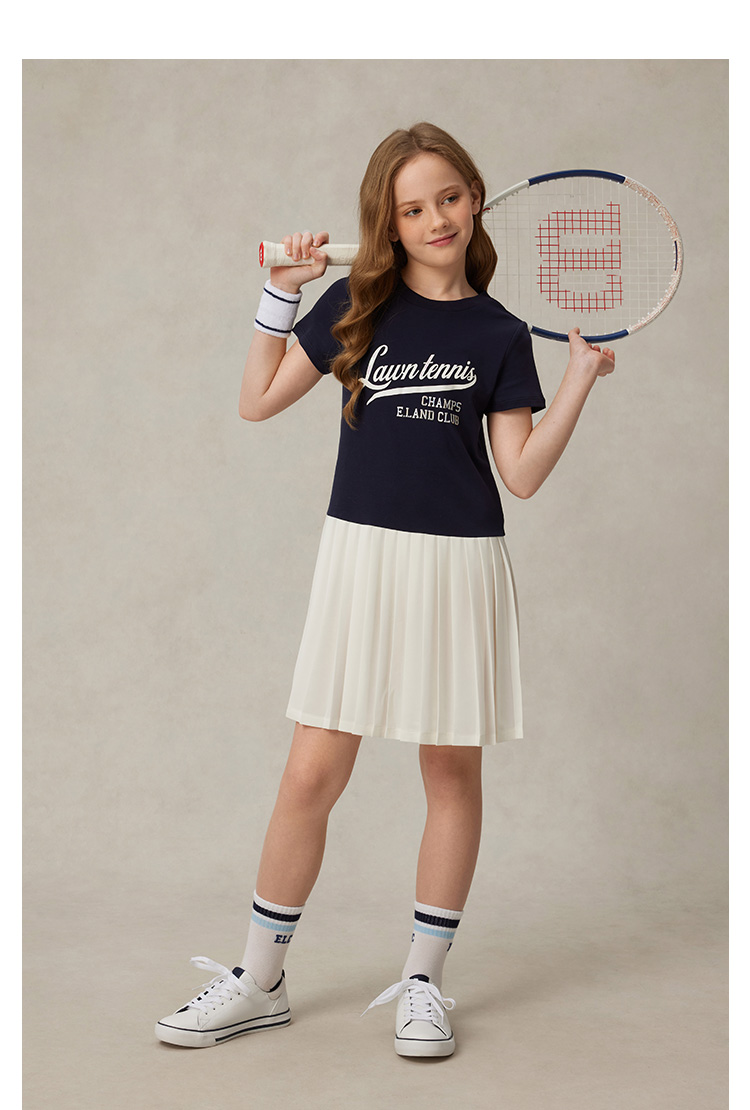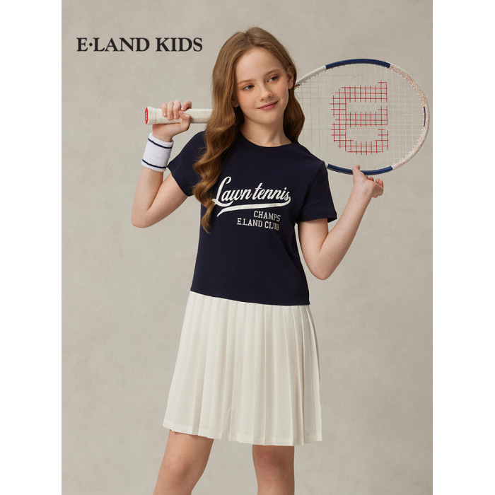 【雲柔棉】eland kids衣戀童裝女童連衣裙2025年夏學院風百褶裙子