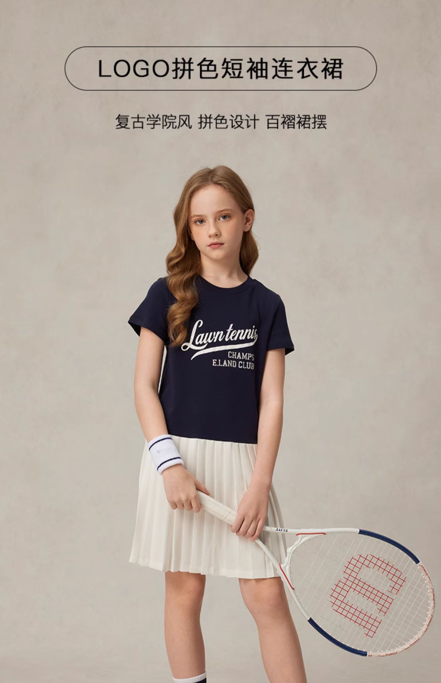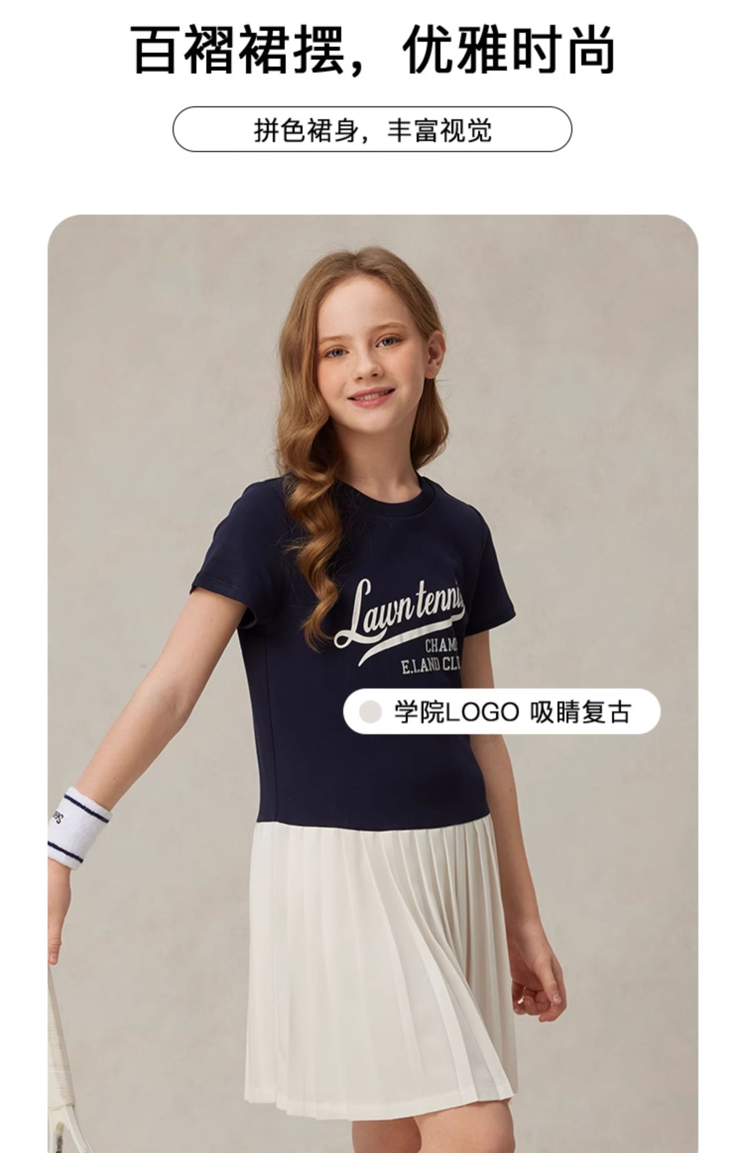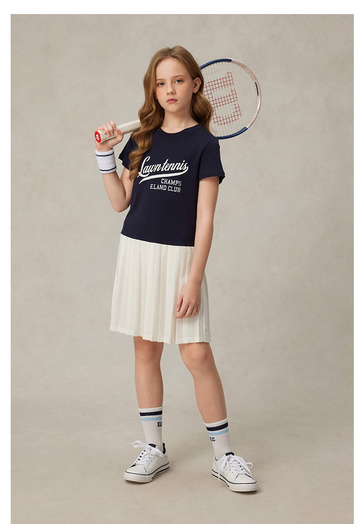 【雲柔棉】eland kids衣戀童裝女童連衣裙2025年夏學院風百褶裙子