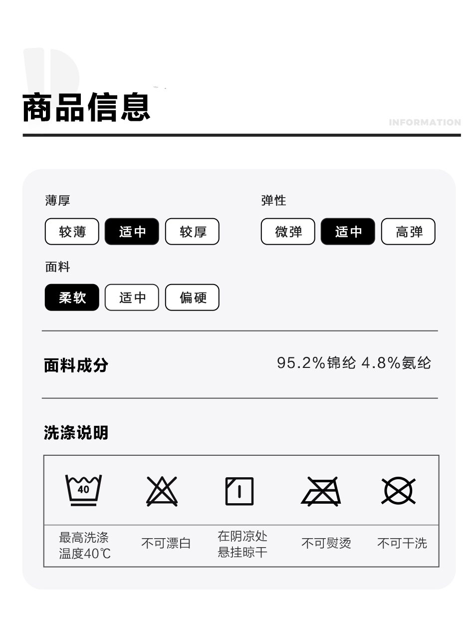 聚醯胺纖維(錦綸)95.2% 聚氨酯彈性纖維(氨綸)4.8%