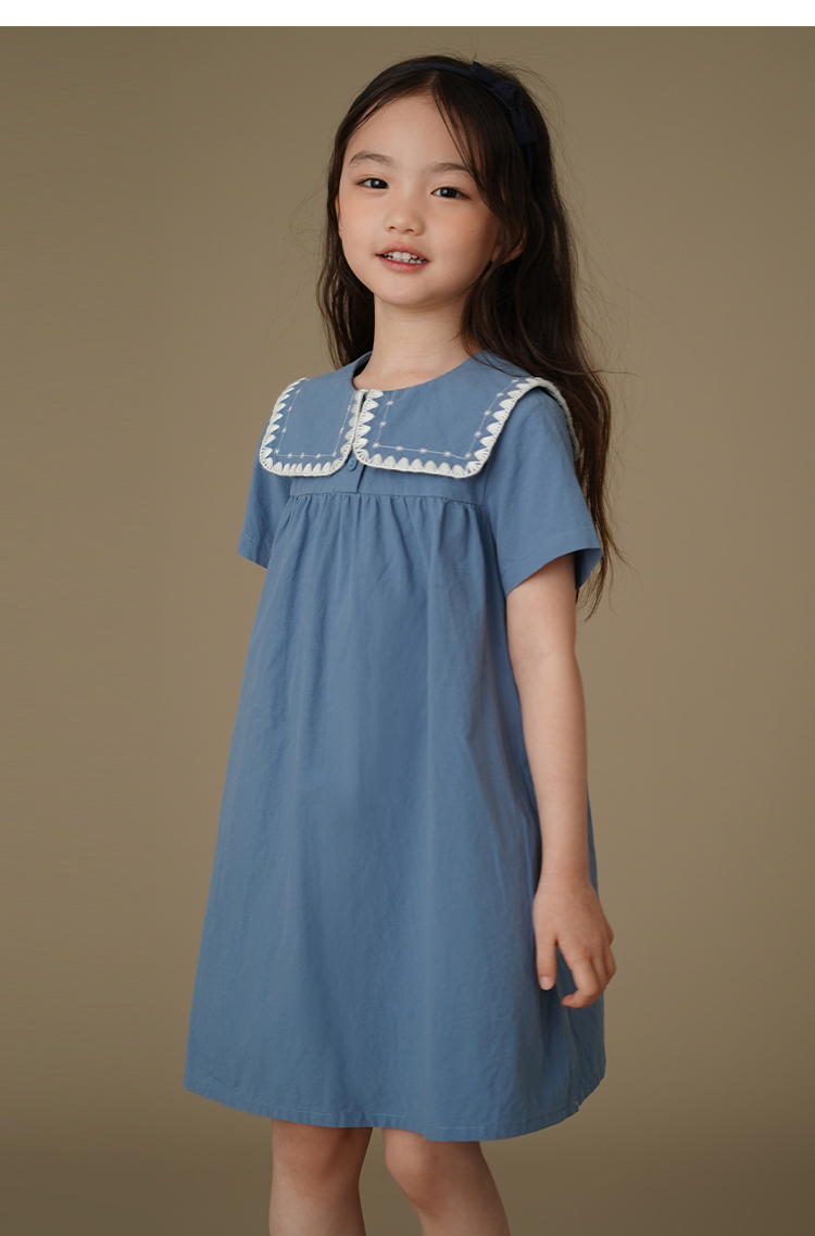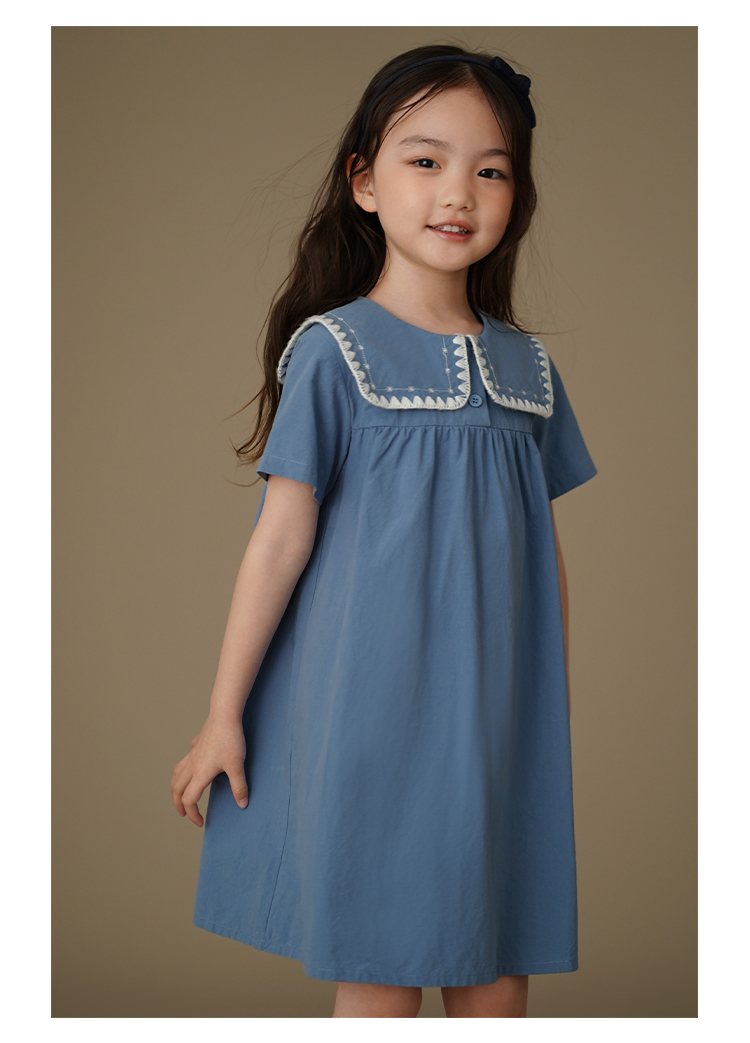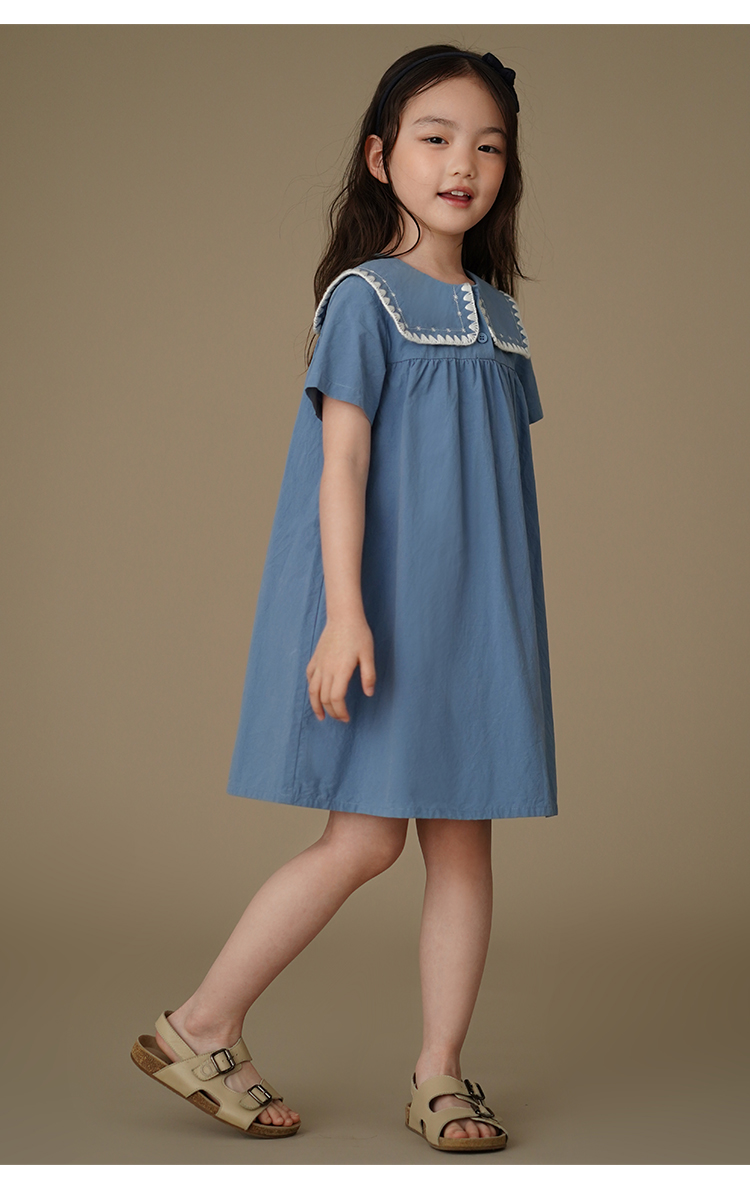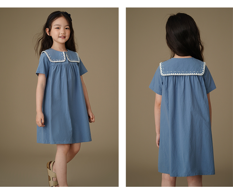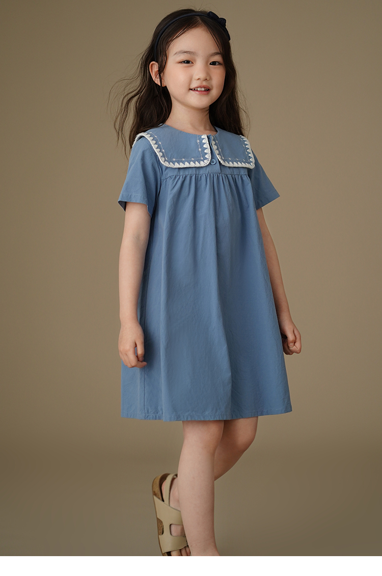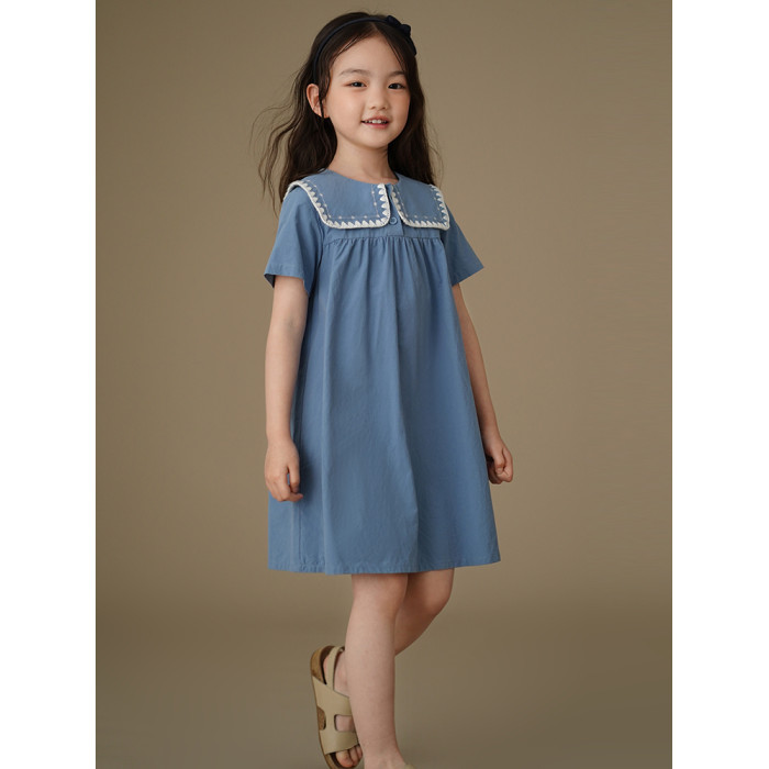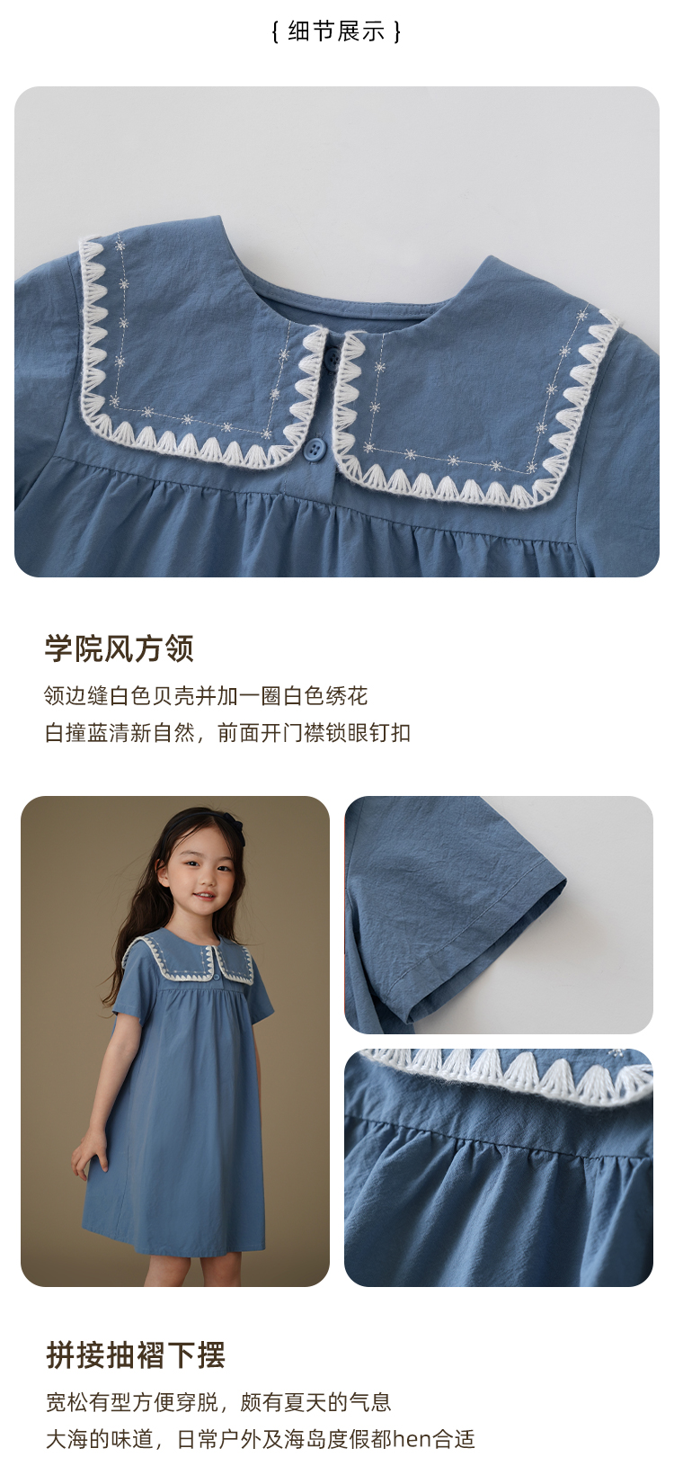 哈齒童裝夏季兒童休閒裙海軍領藍色學院風女童連衣裙女孩夏裝全棉