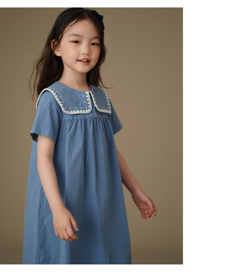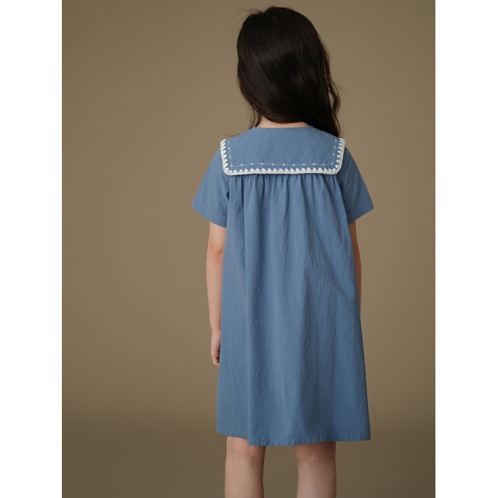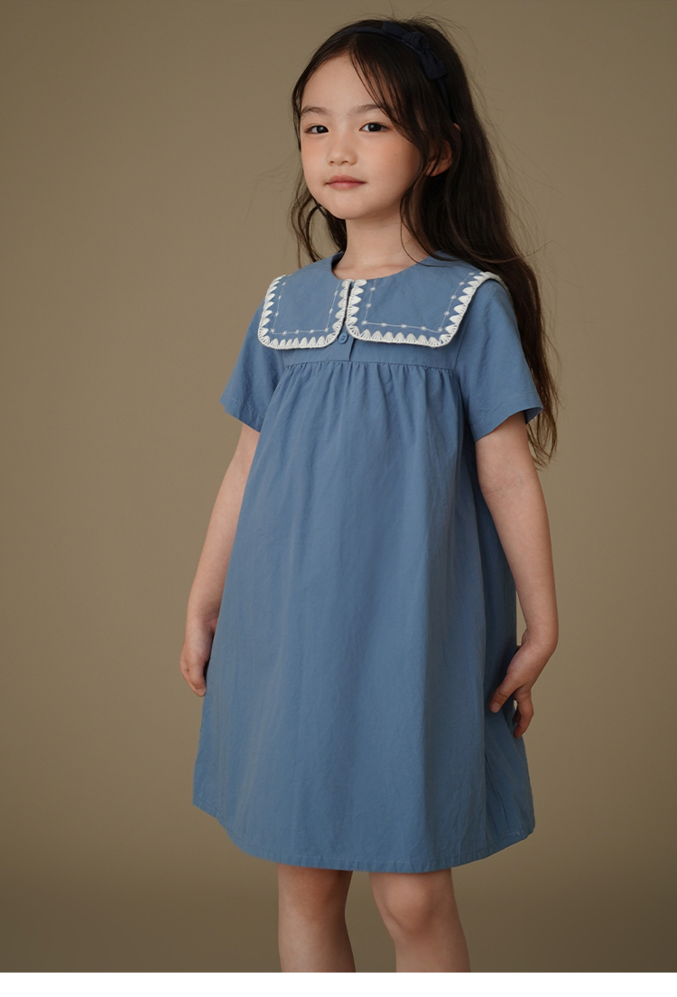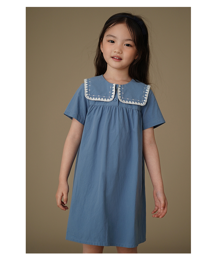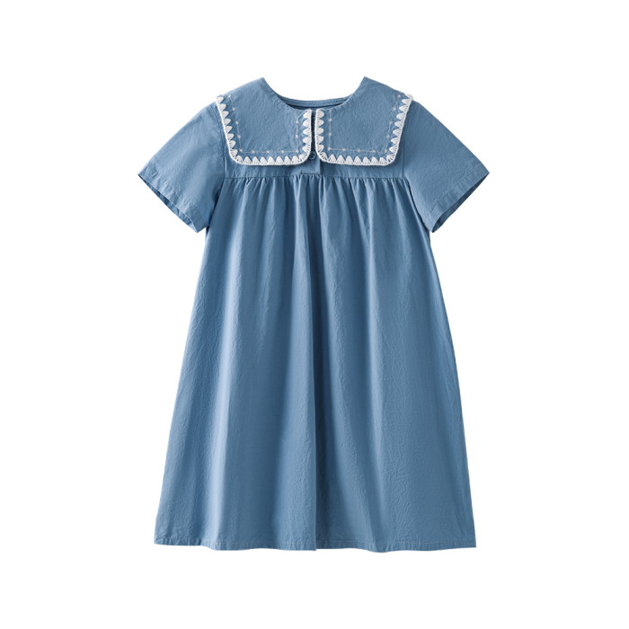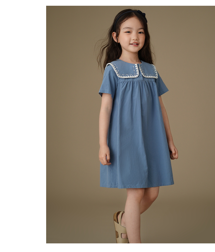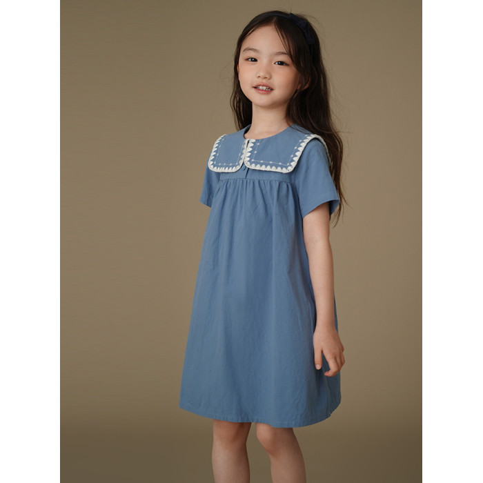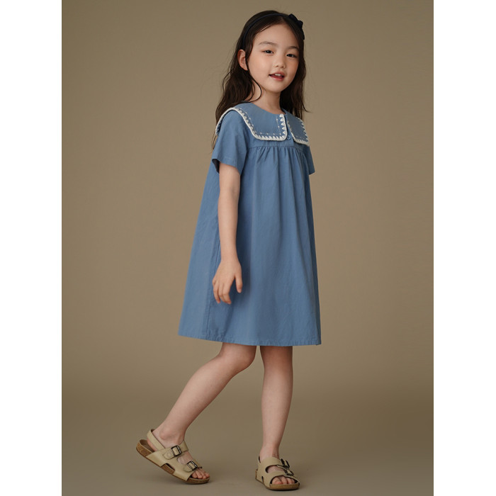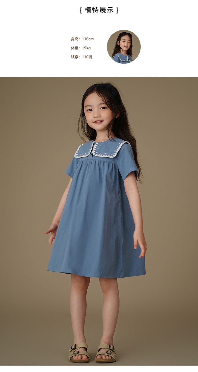 哈齒童裝夏季兒童休閒裙海軍領藍色學院風女童連衣裙女孩夏裝全棉