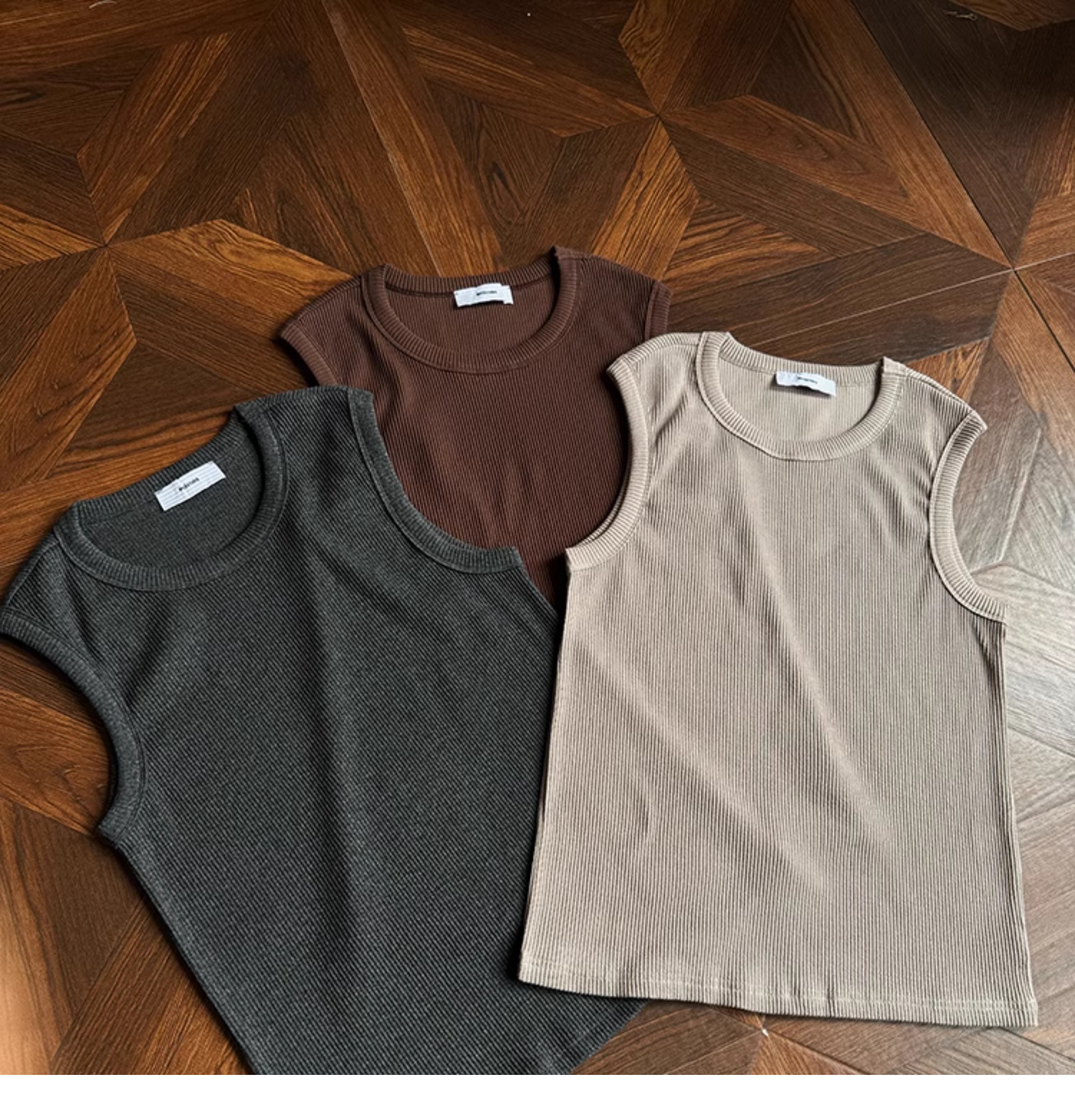 夏季螺紋坑條修身背心基礎款多色汗背心搭配日常純色T男女