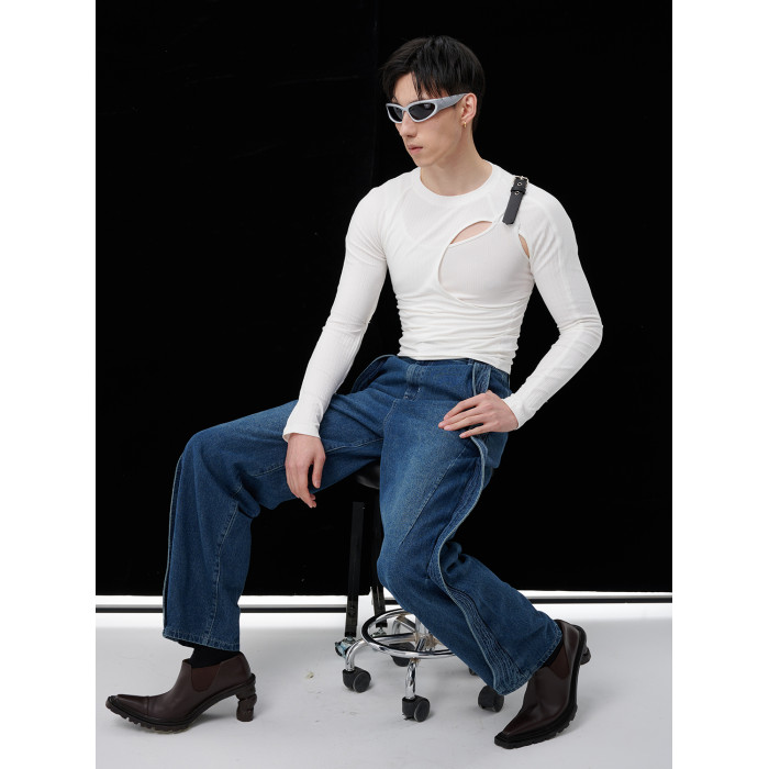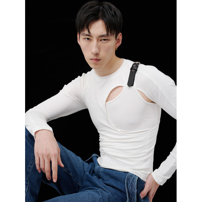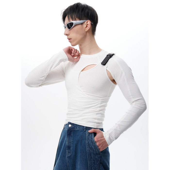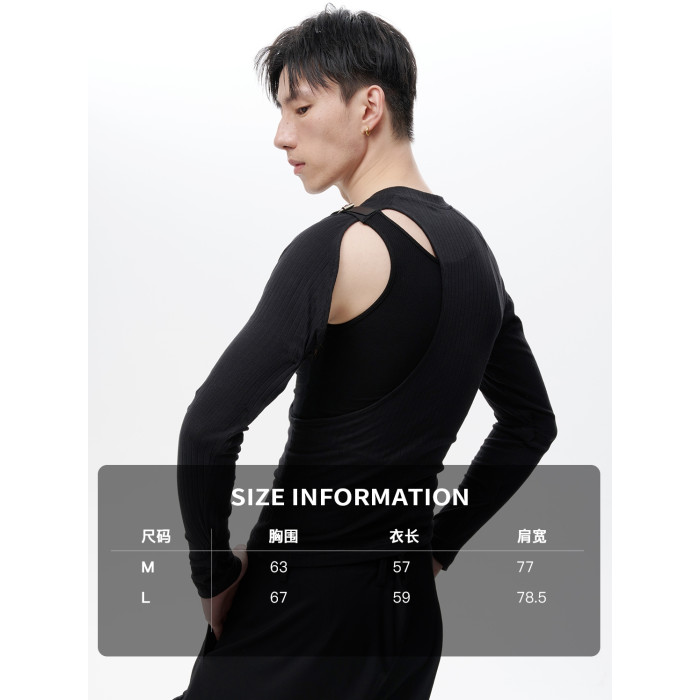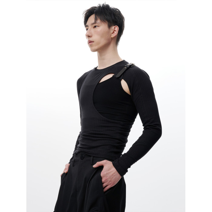 蛻幕|修身分割鏤空T恤塑形高彈緊身背心皮帶拼接解搆背心