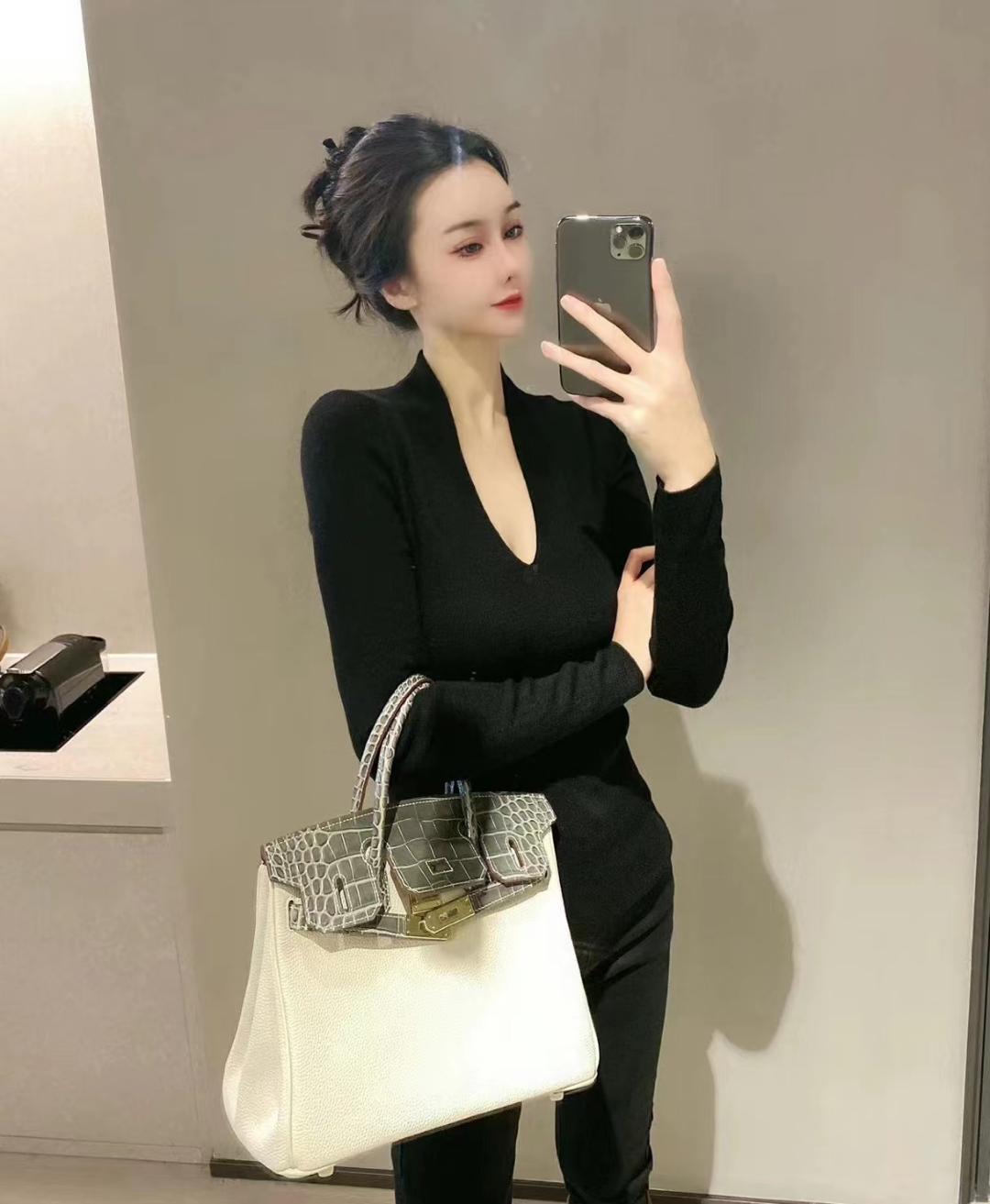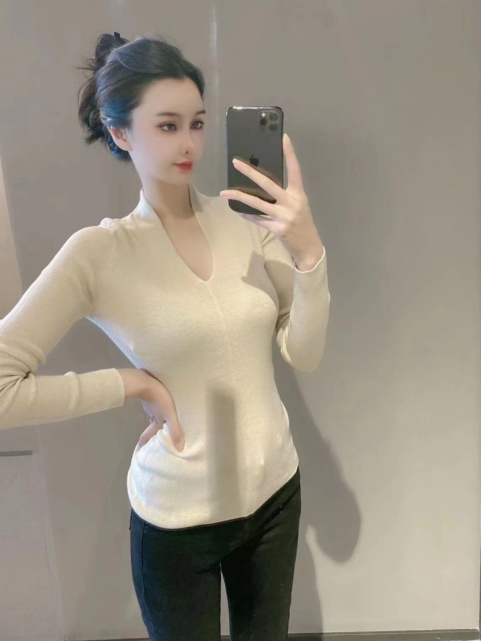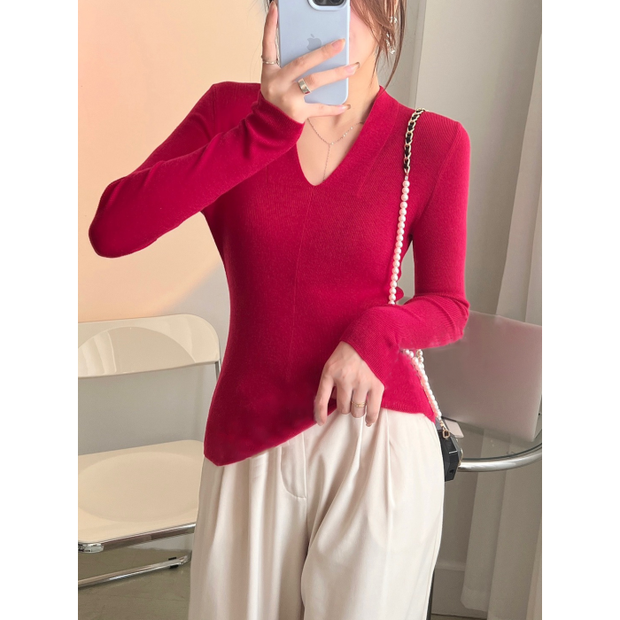 跑量款~女士黑色V領氣質細針美麗諾羊毛針織衫修身顯瘦打底衫毛衣