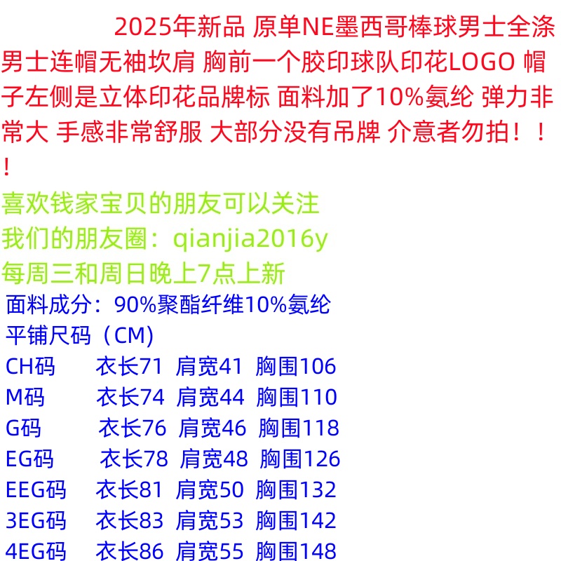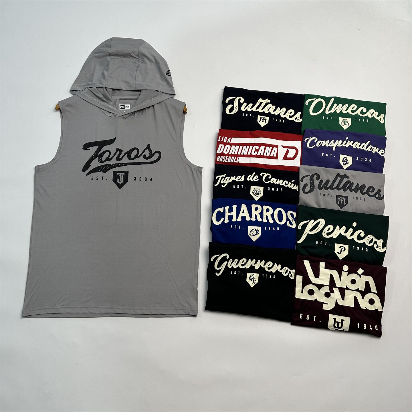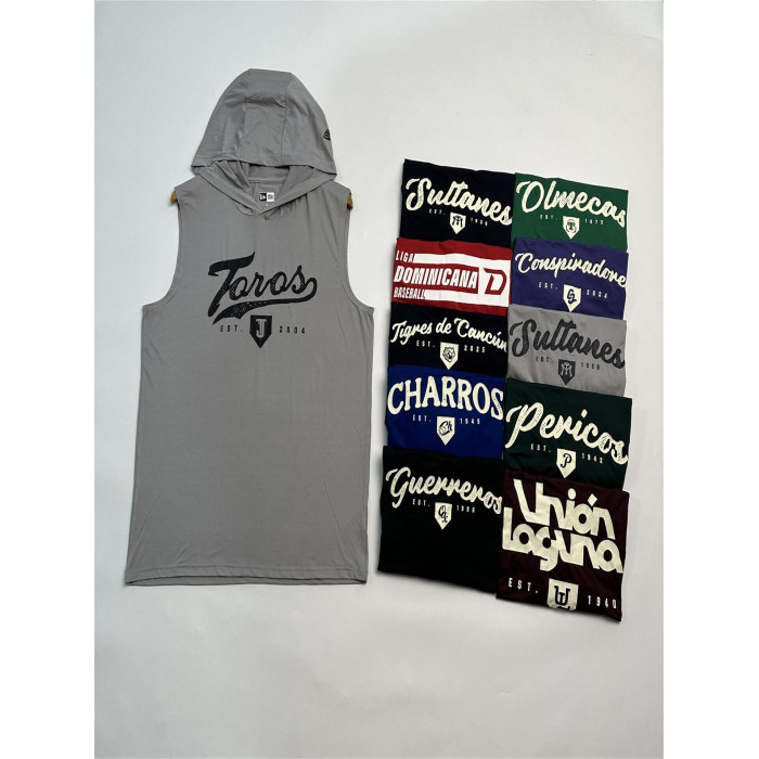 墨西哥棒球無袖連帽無袖坎肩 NE版男士運動背心 膠印印花大碼