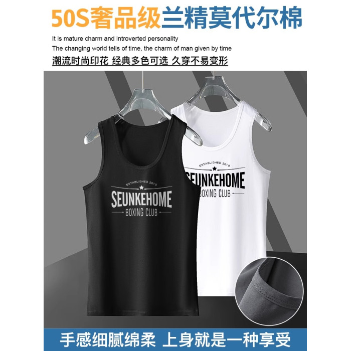 高級莫代爾冰絲背心男士夏季運動健身坎肩2025新款無袖t恤男款薄