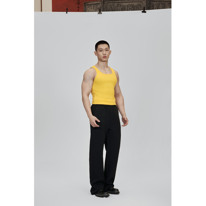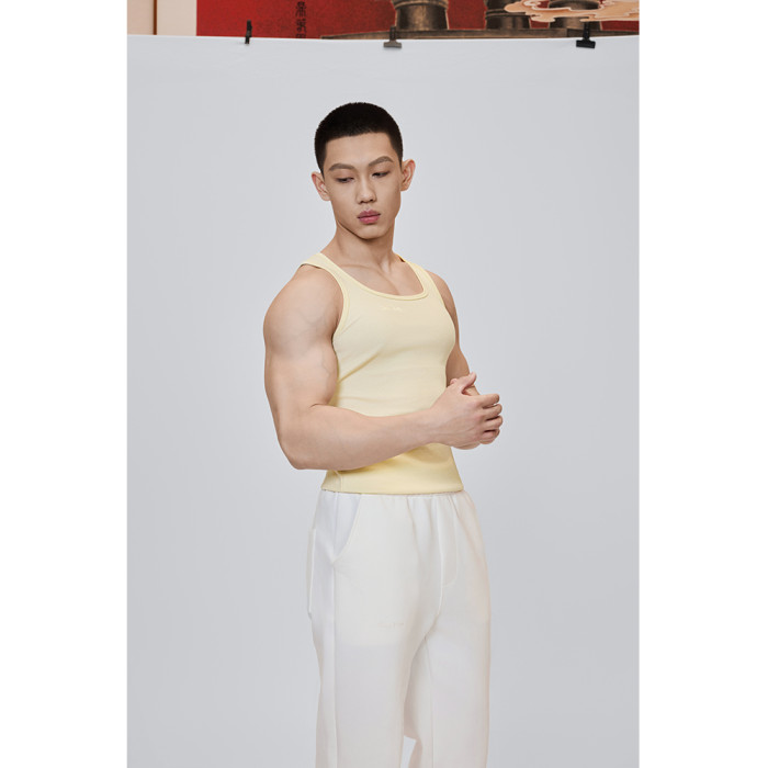 Cosy Rule 緊身款運動休閒健身螺紋背心|淡黃色 亮黃色