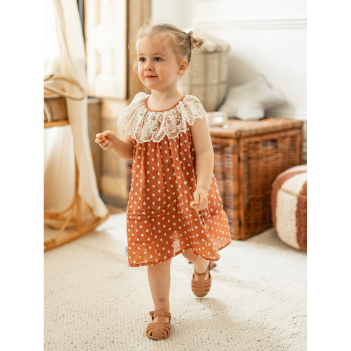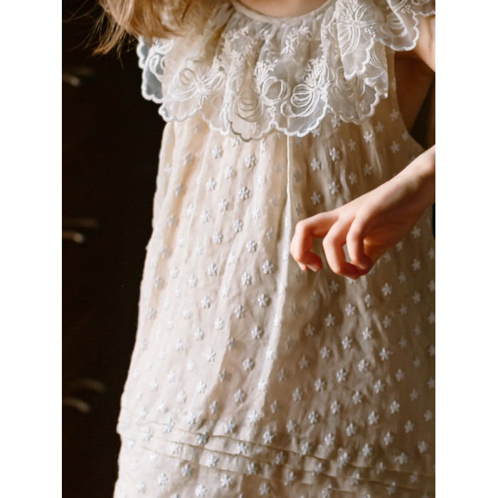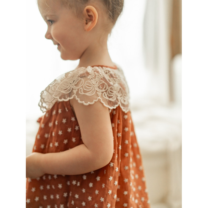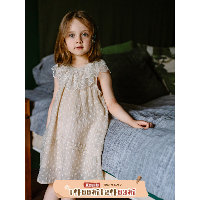 lelejove北歐風女童公主裙夏季輕薄苧麻綉花連衣裙女寶優雅連衣裙