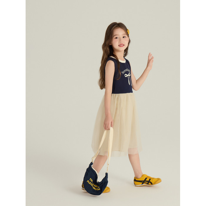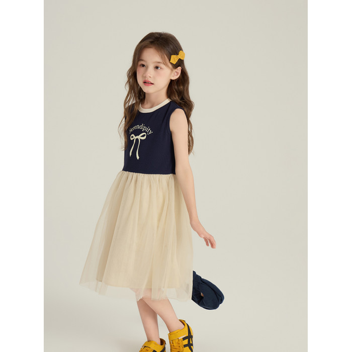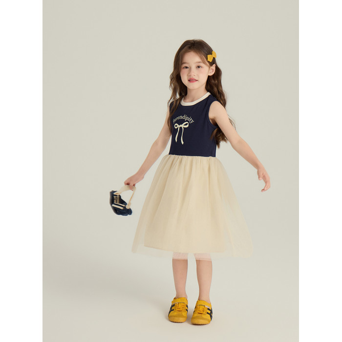 依依媽童裙2025夏裝款女童韓版甜美公主紗裙女孩蝴蝶結背心連衣裙
