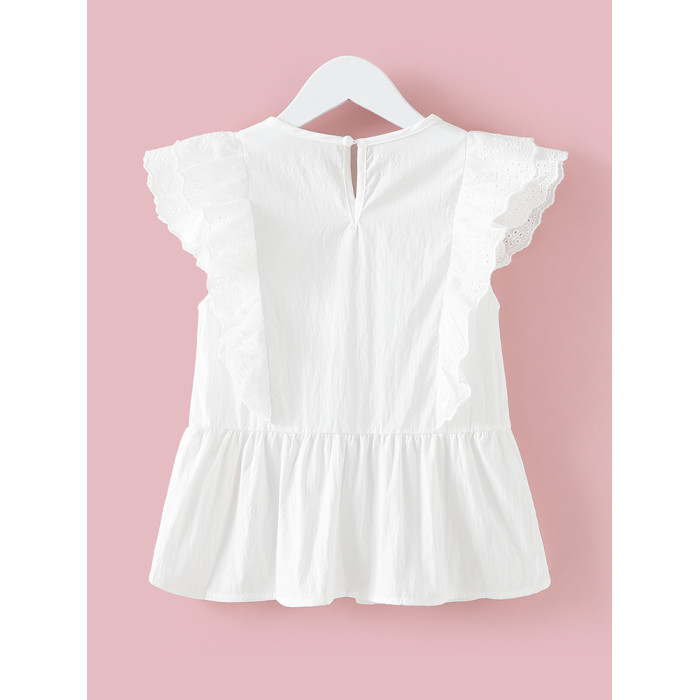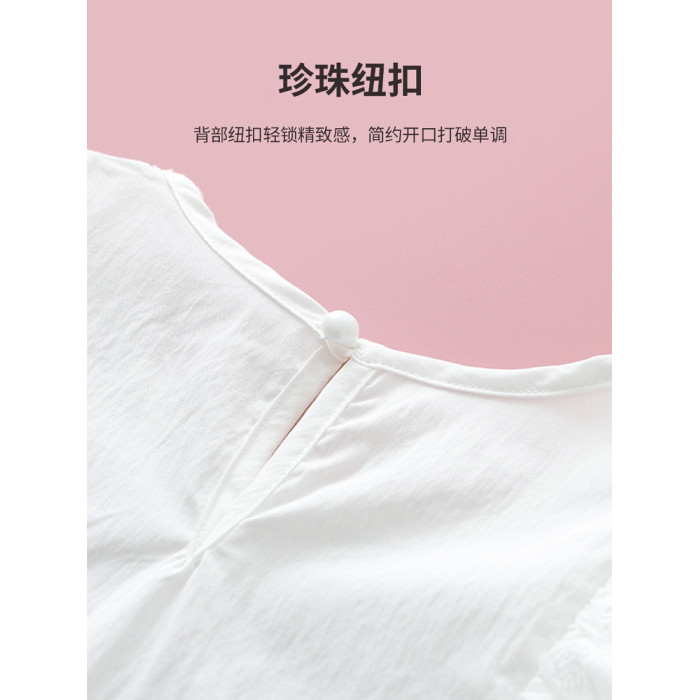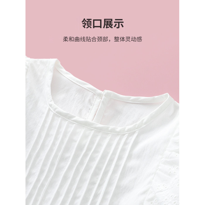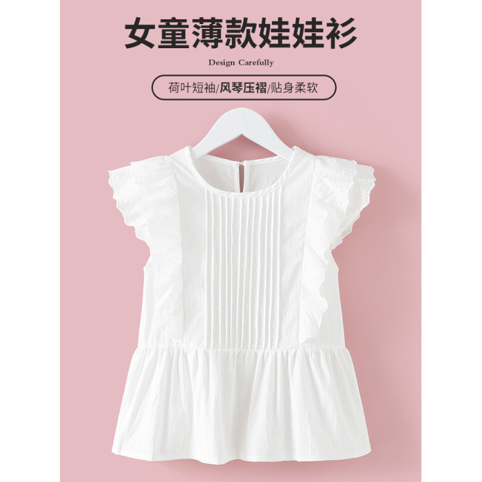 女童短袖白色襯衫夏季2025新款兒童夏裝娃娃衫上衣女孩薄襯衣純色
