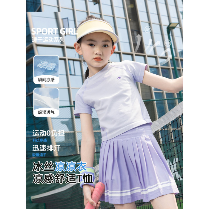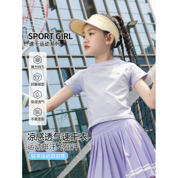 女童運動短袖兒童夏季薄款速乾衣羽毛球服上衣女大童T恤短款網球