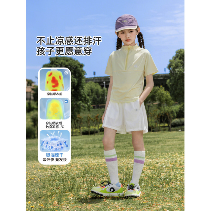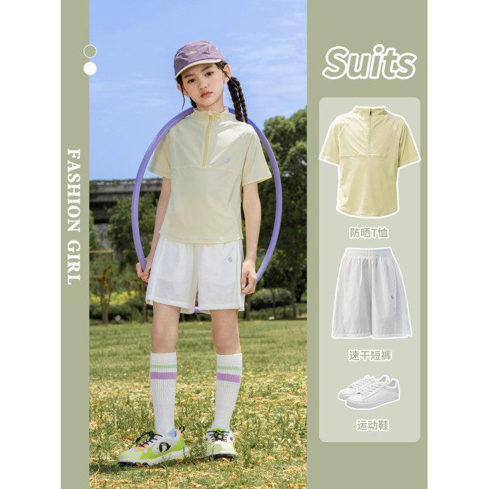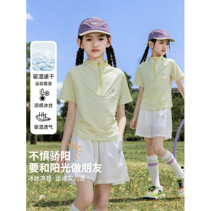 女童運動套裝兒童夏季速乾衣冰絲短褲女孩訓練女大童羽毛球服網球