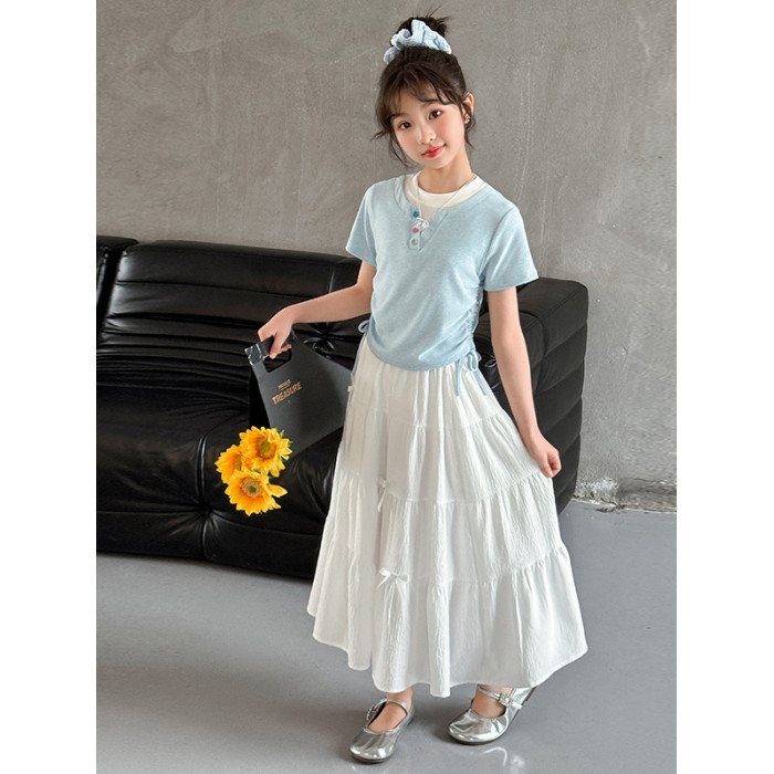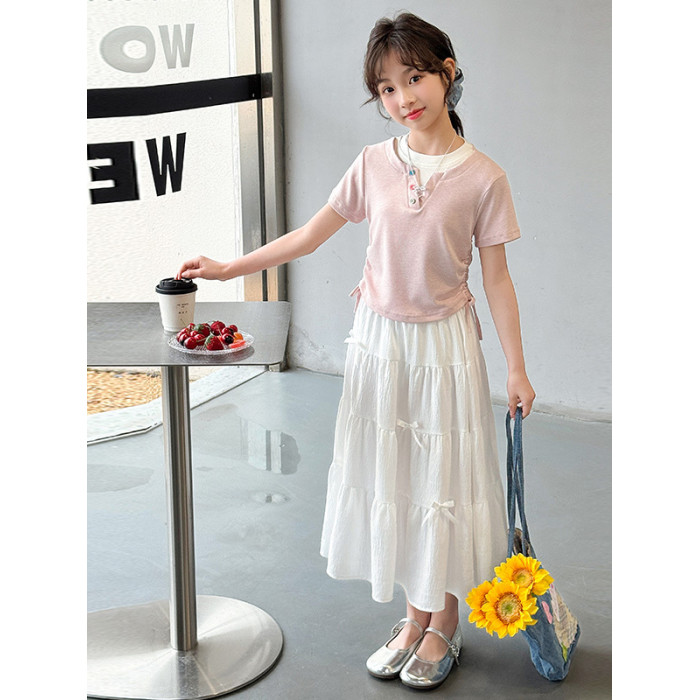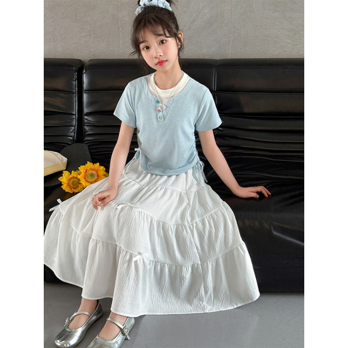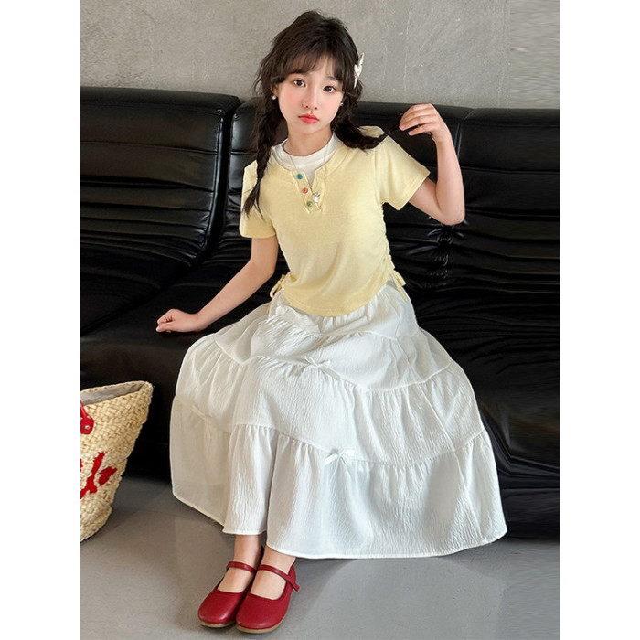 女童白色半身裙2025新款女孩紗裙兒童裙子長款半裙大童夏季蛋糕裙