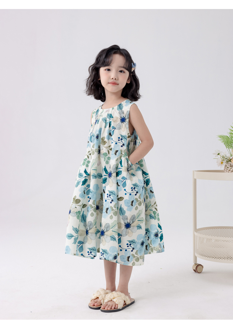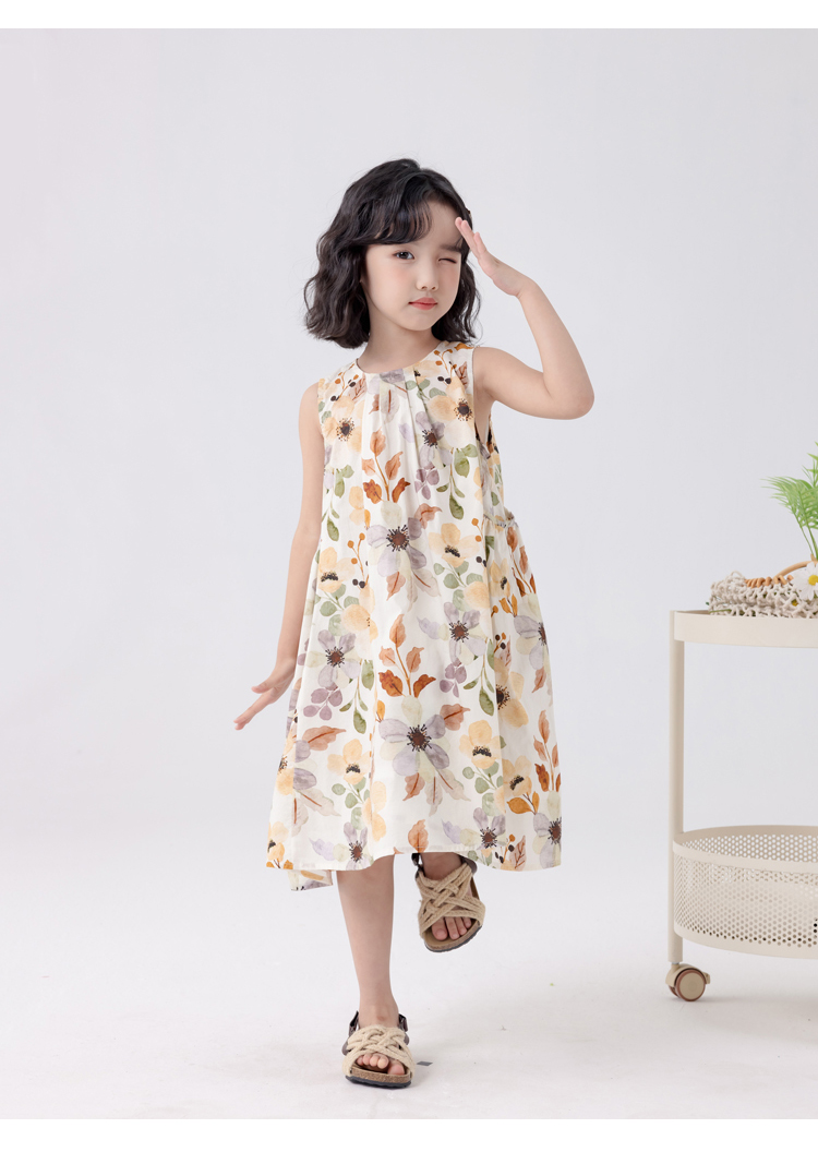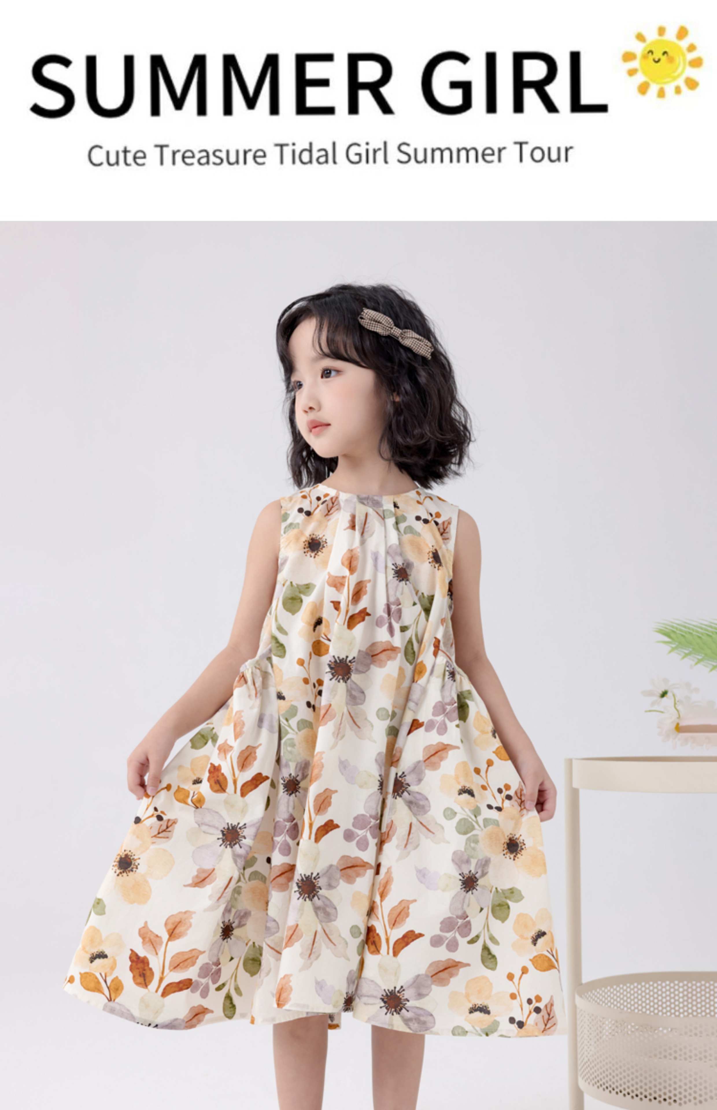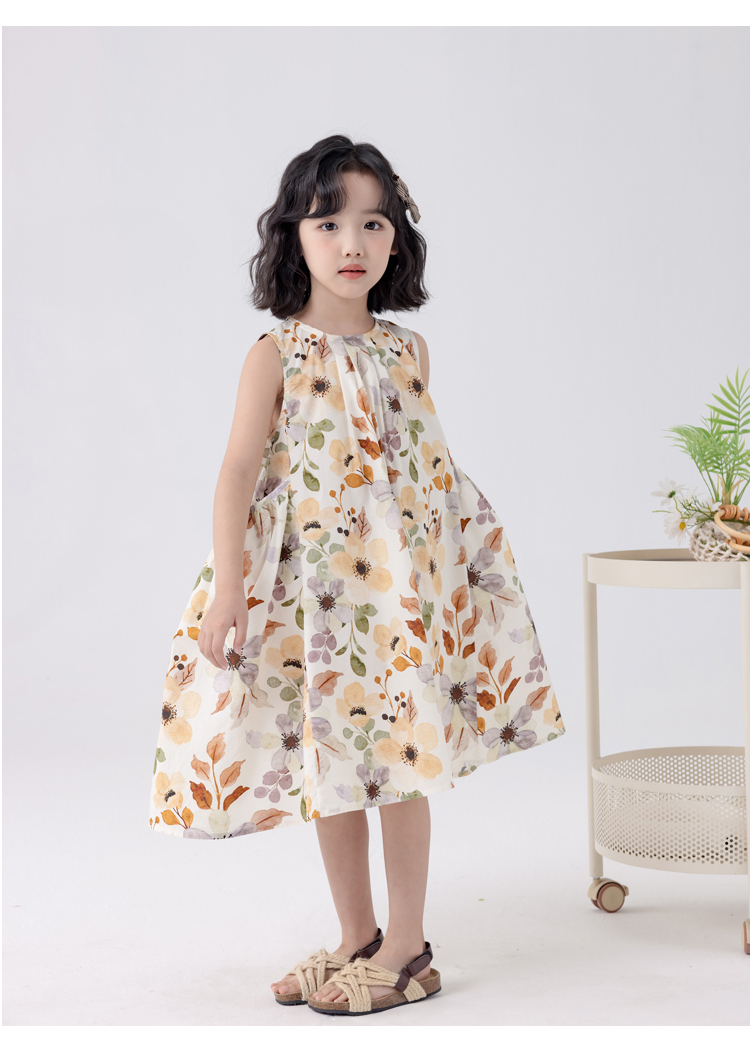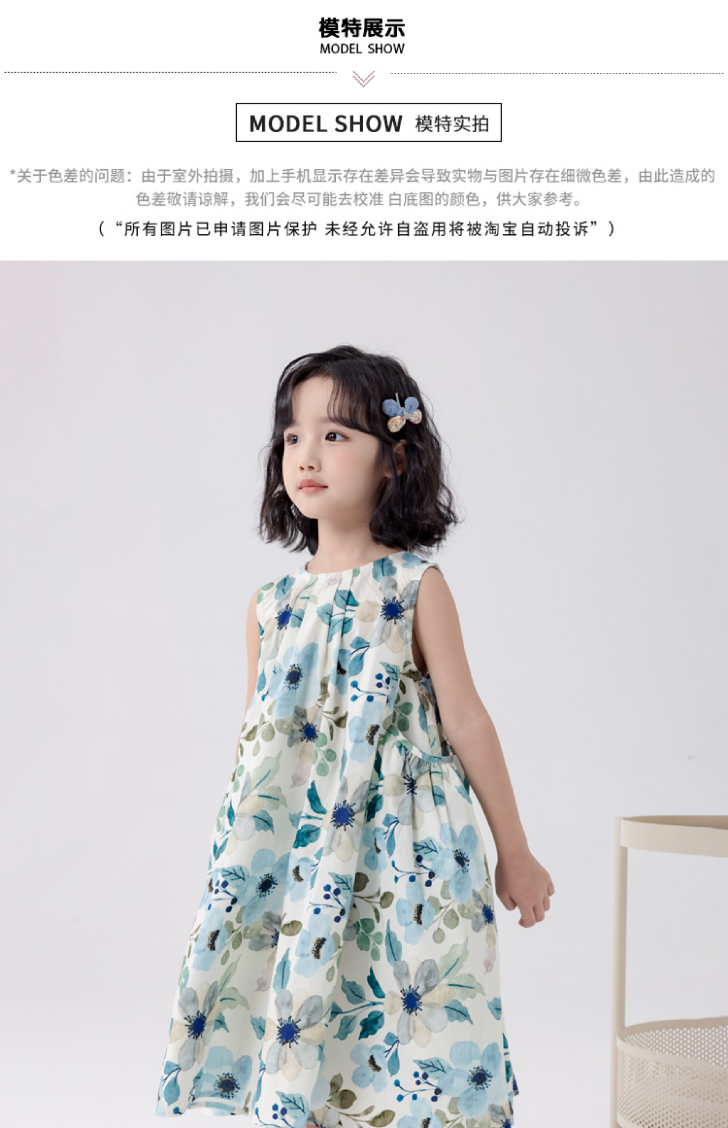 哈依魯2025夏季新款女童連衣裙兒童中大童純棉無袖時尚氣質沙灘裙