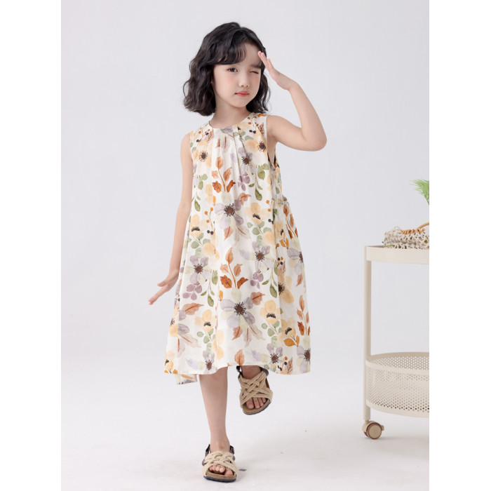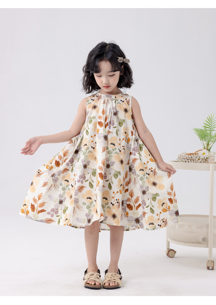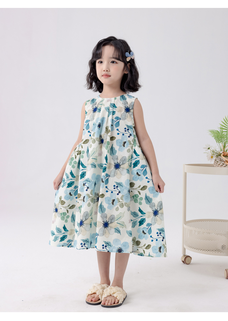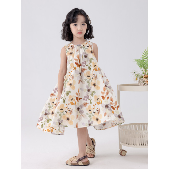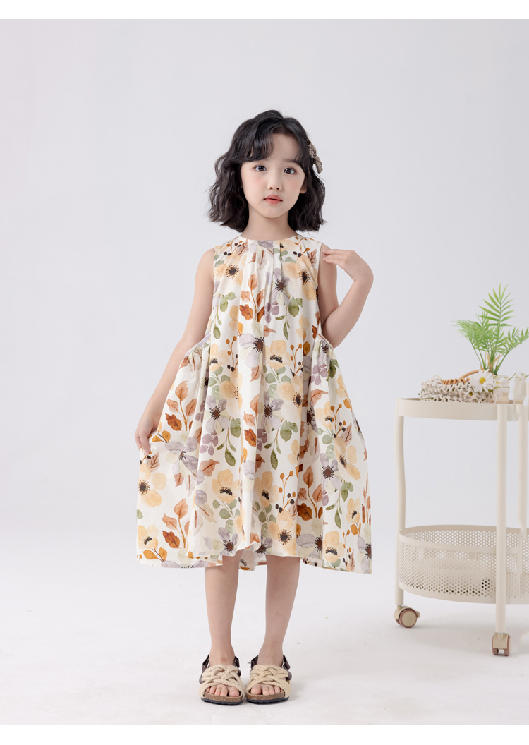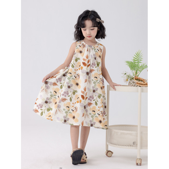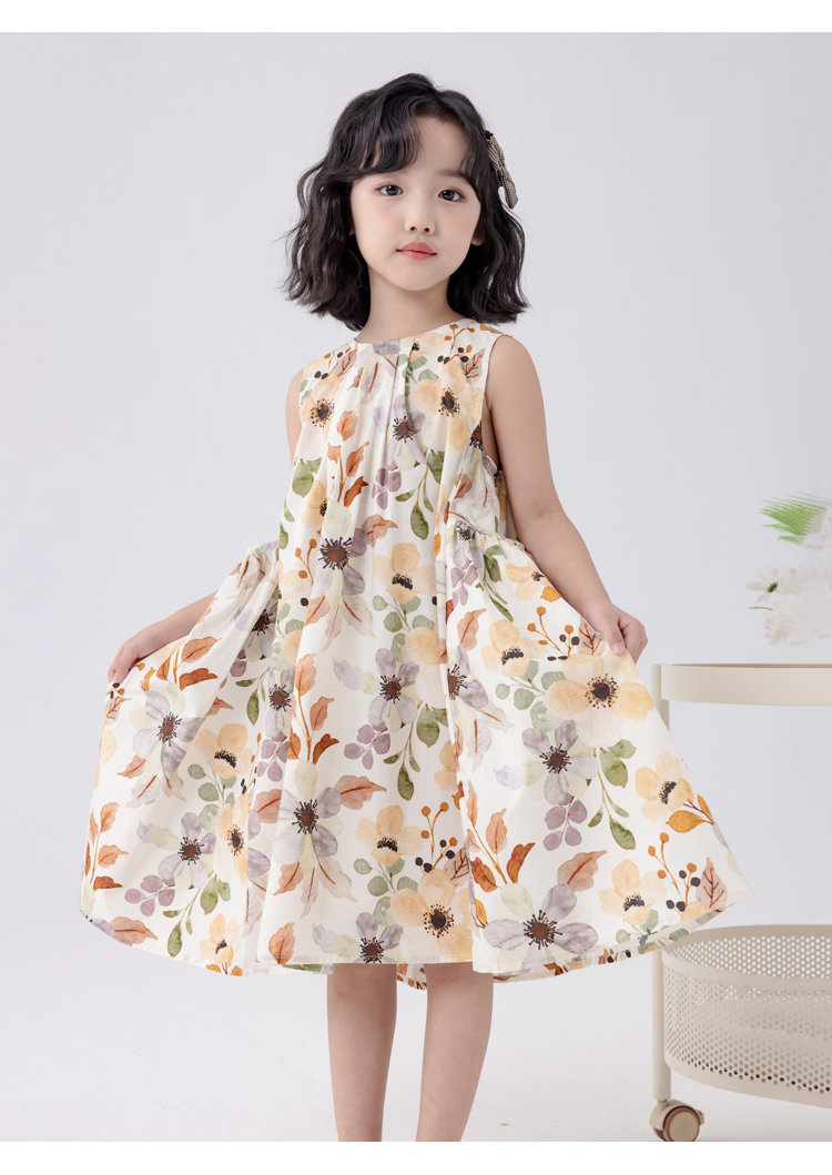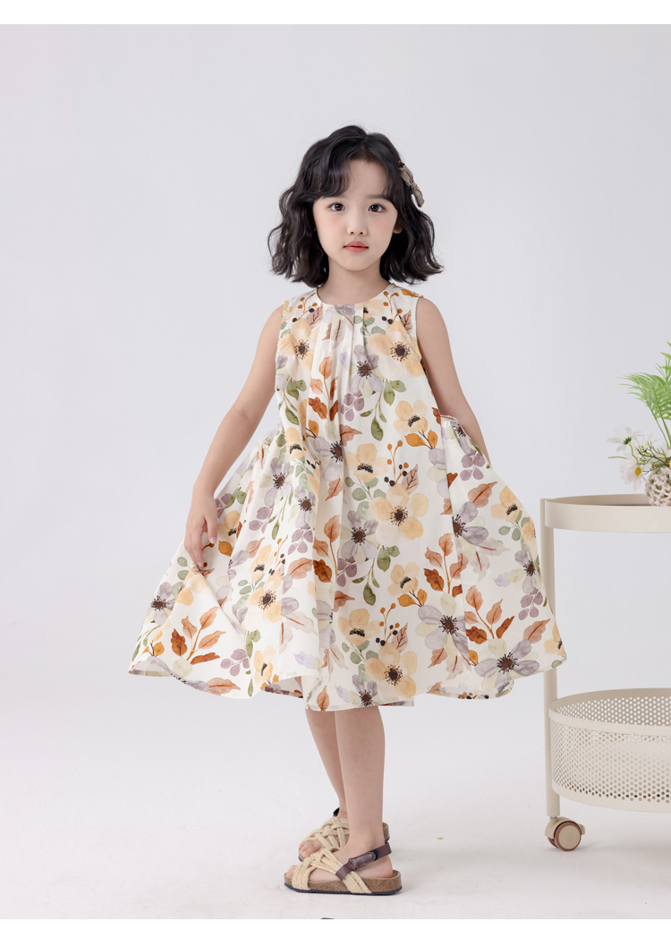 哈依魯2025夏季新款女童連衣裙兒童中大童純棉無袖時尚氣質沙灘裙