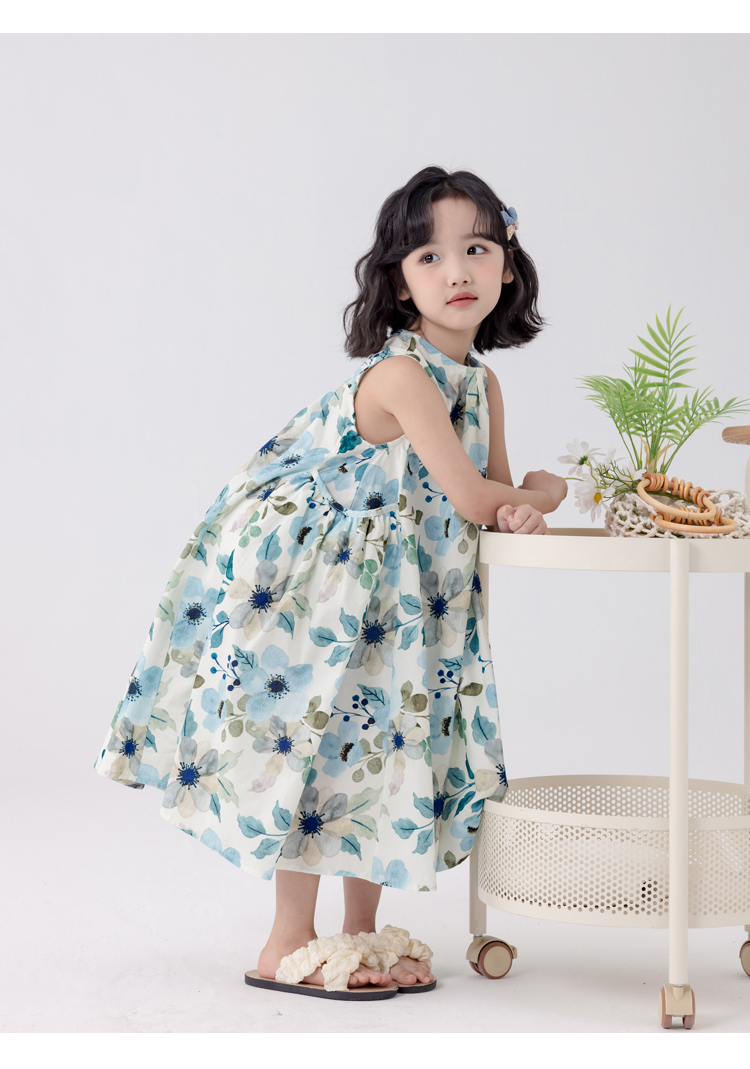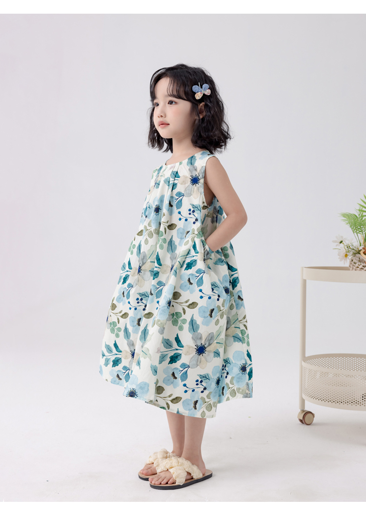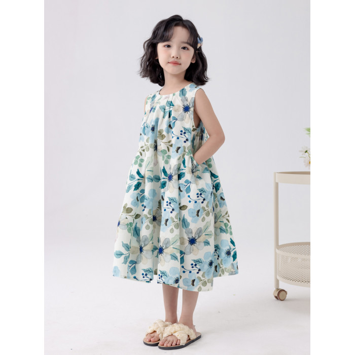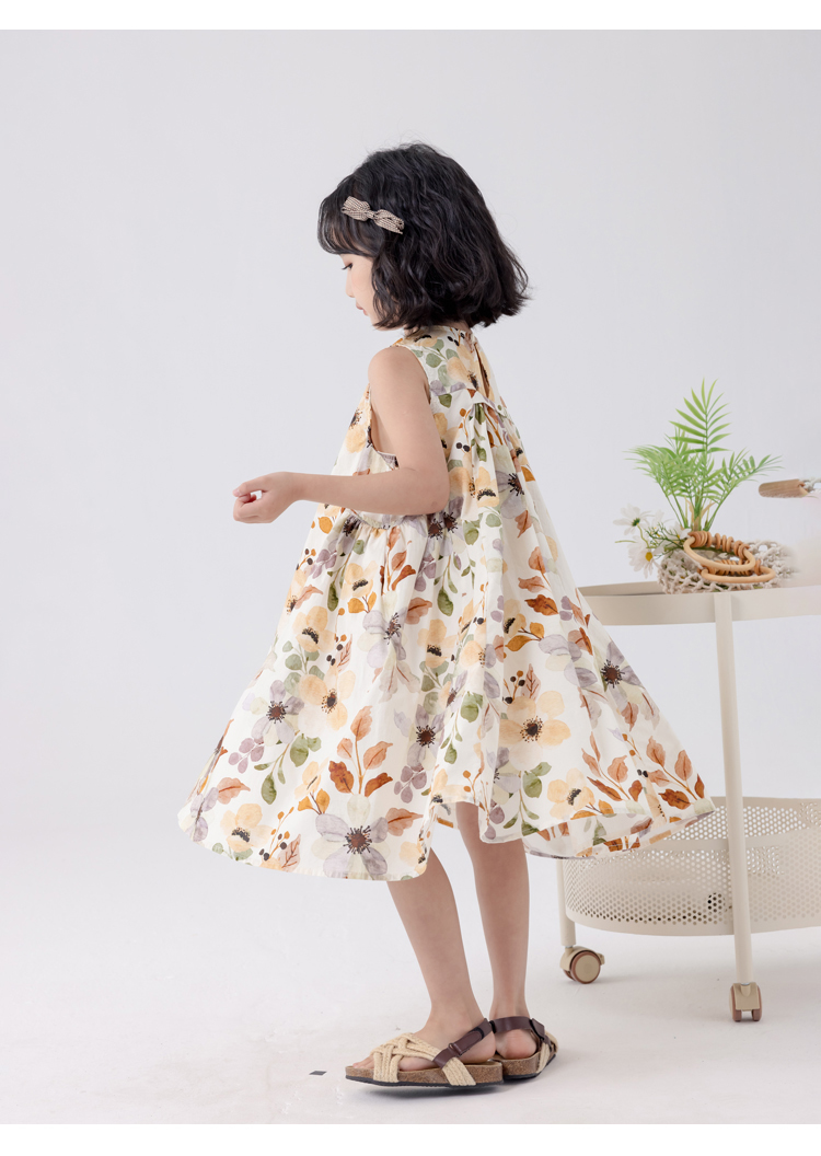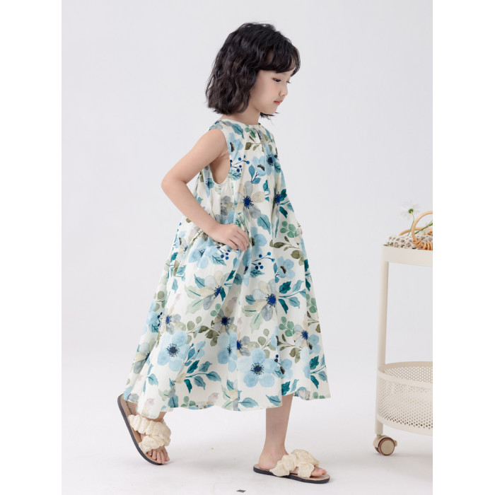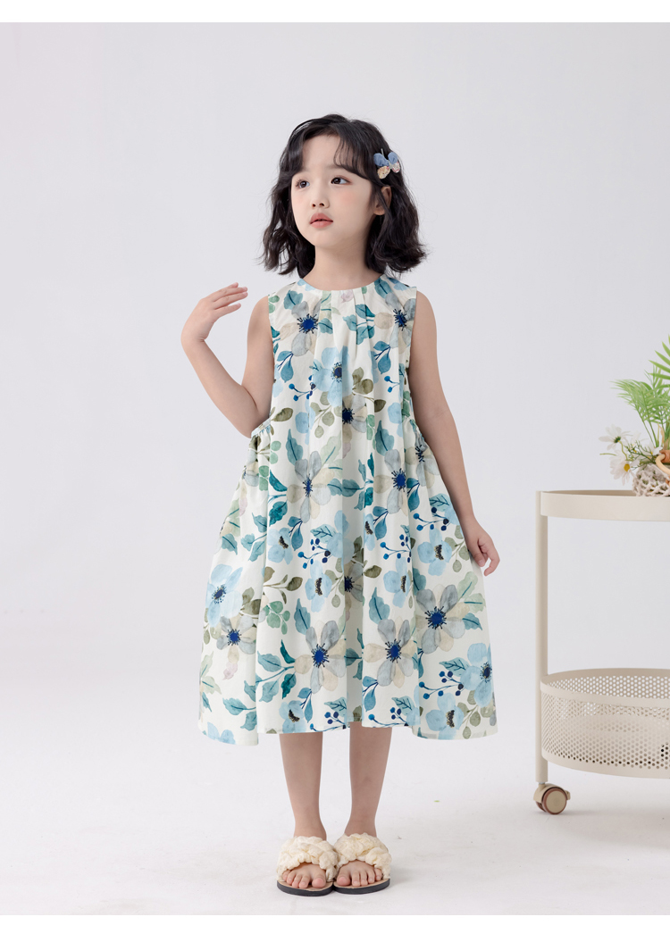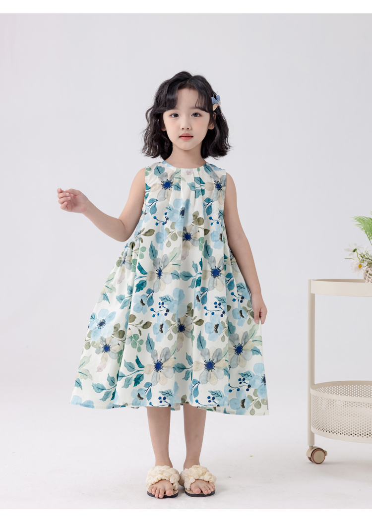 哈依魯2025夏季新款女童連衣裙兒童中大童純棉無袖時尚氣質沙灘裙