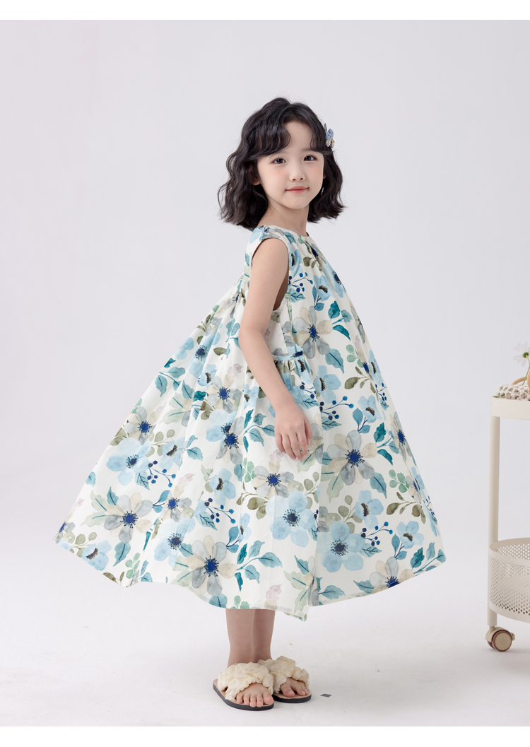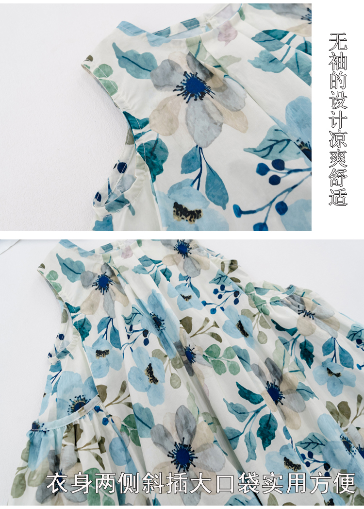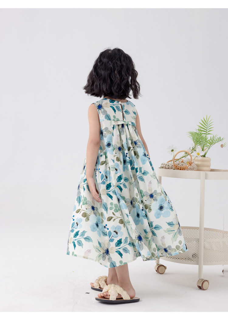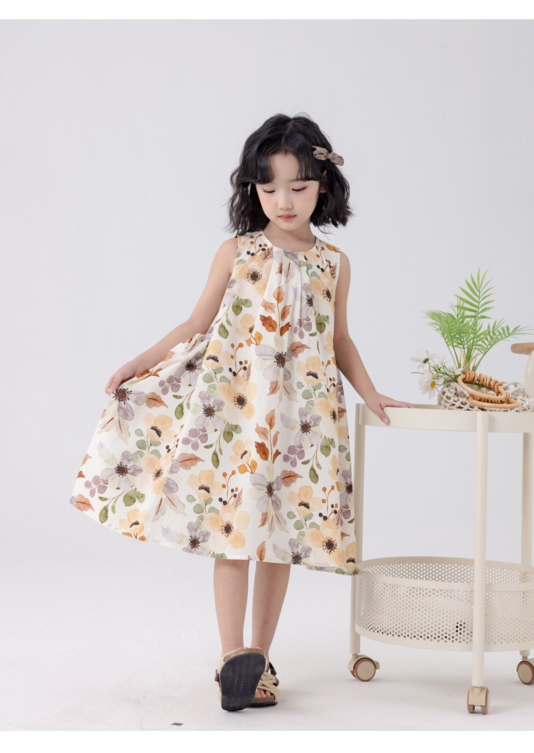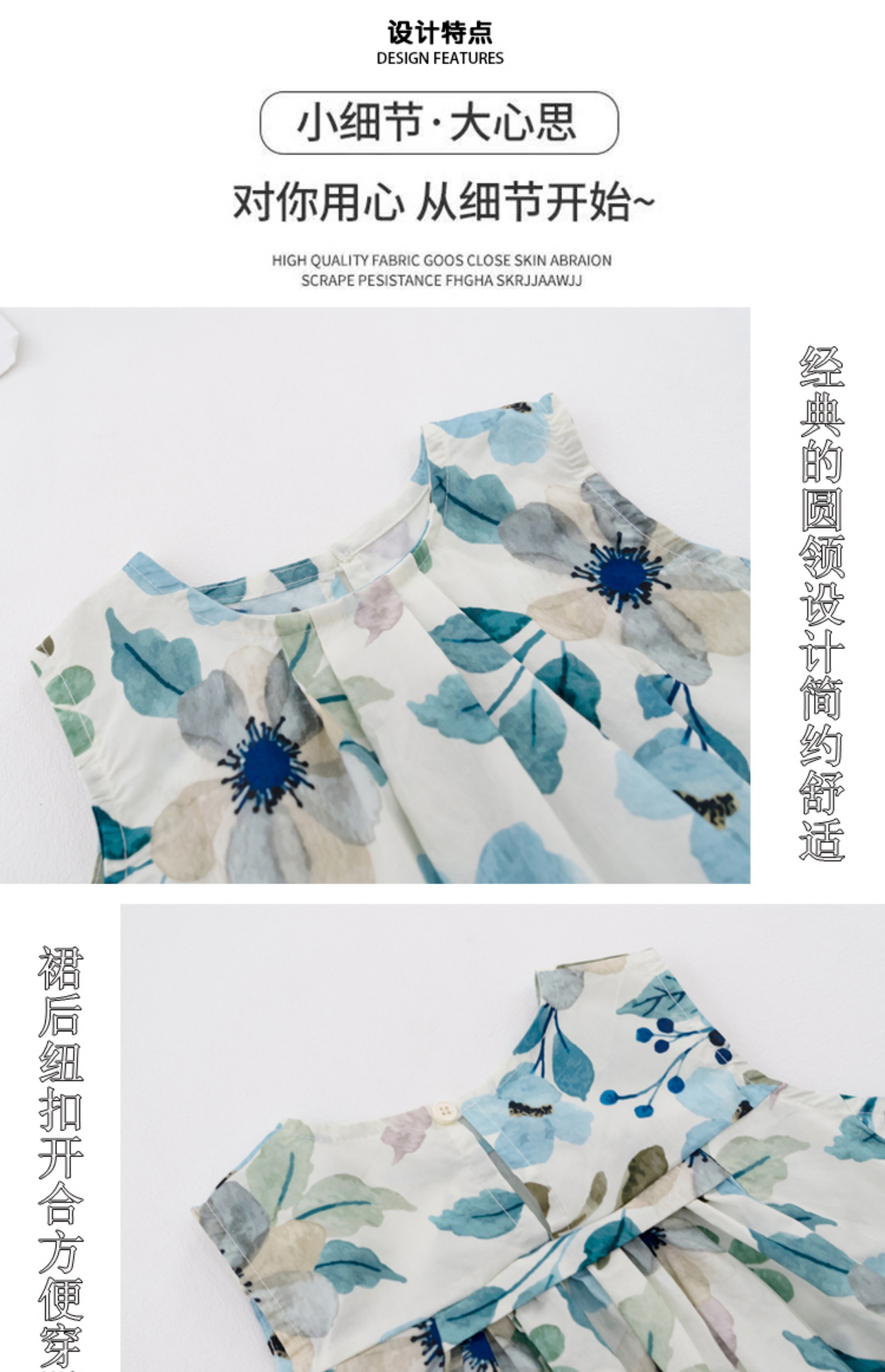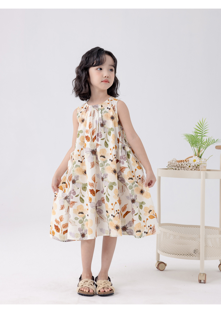 哈依魯2025夏季新款女童連衣裙兒童中大童純棉無袖時尚氣質沙灘裙