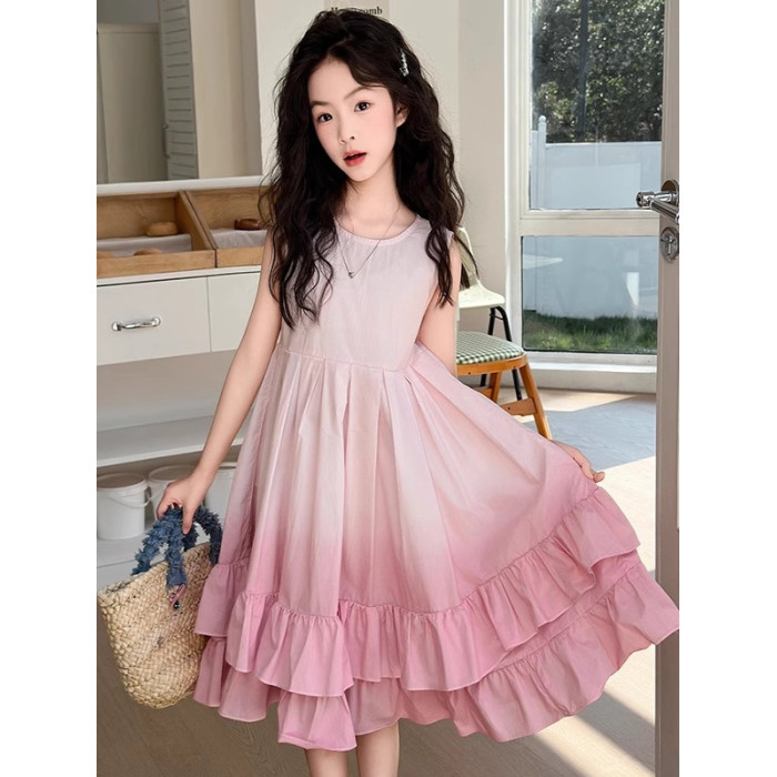 女童夏裝連衣裙2025新款兒童裝夏季漸變色背心裙子大童生日公主裙