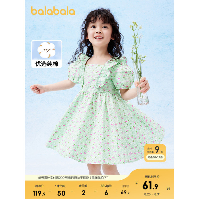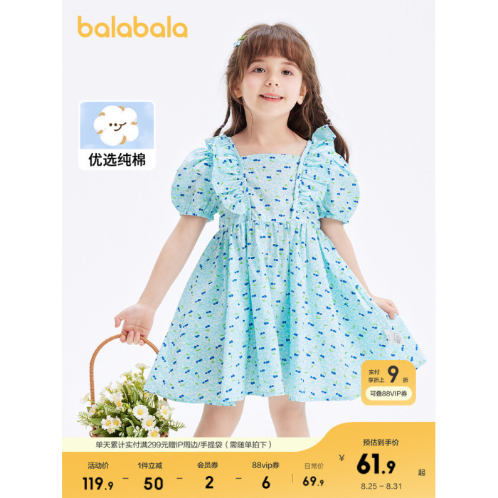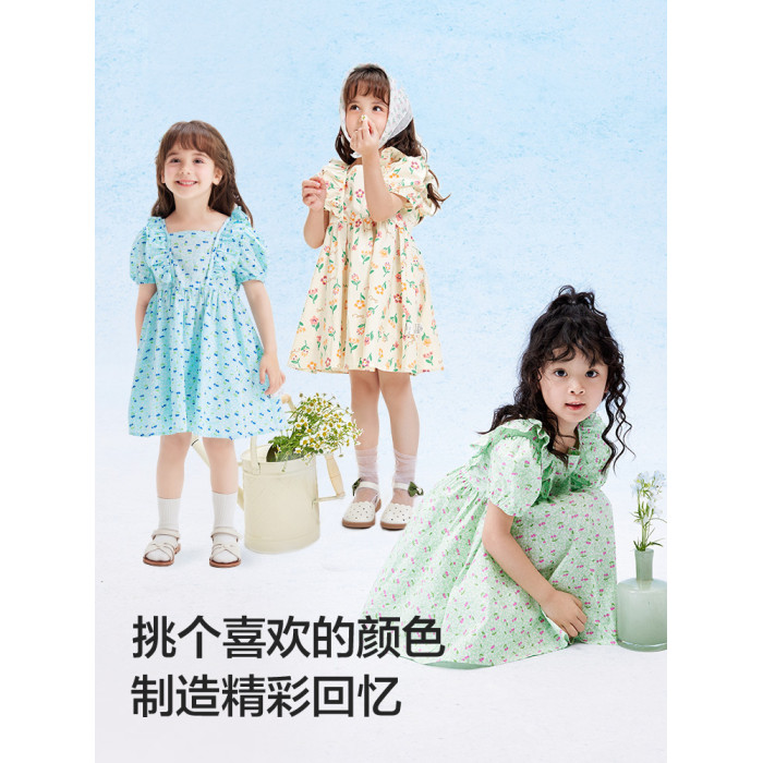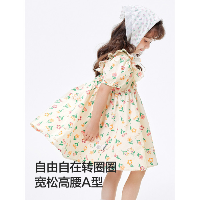 巴拉巴拉童裝女童連衣裙夏裝兒童裙子泡泡袖公主裙甜美碎花裙純棉