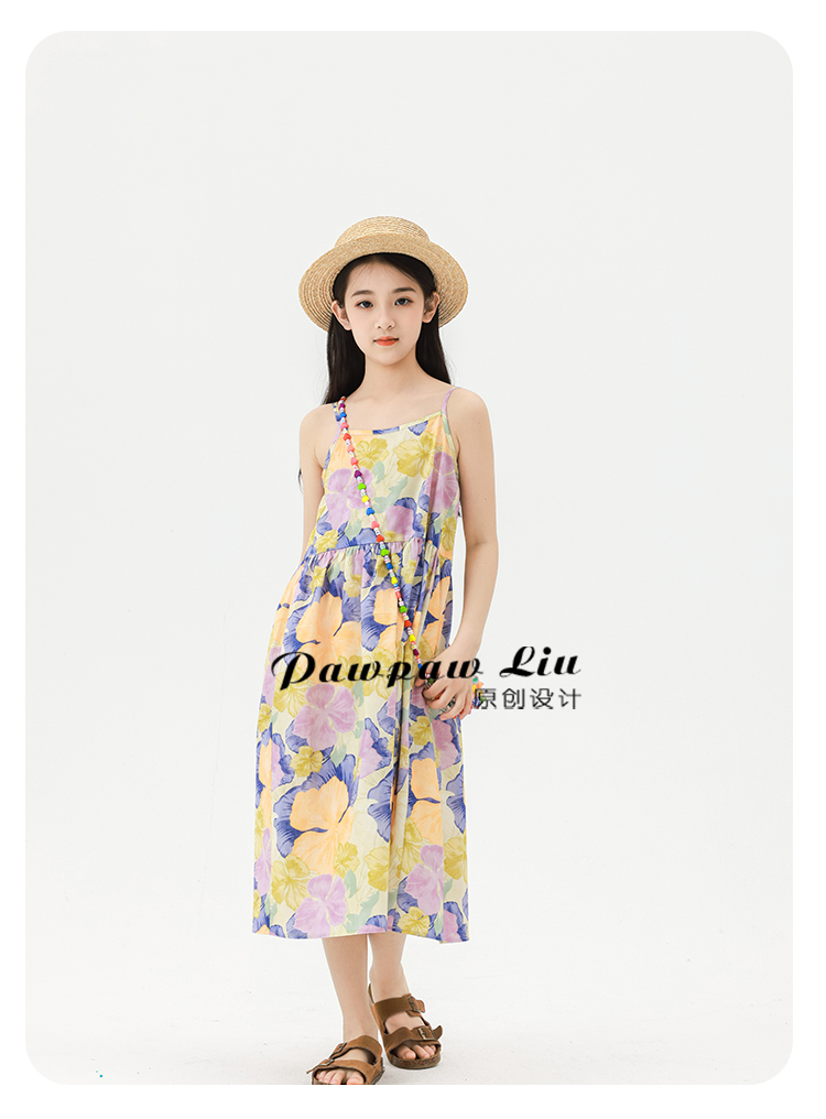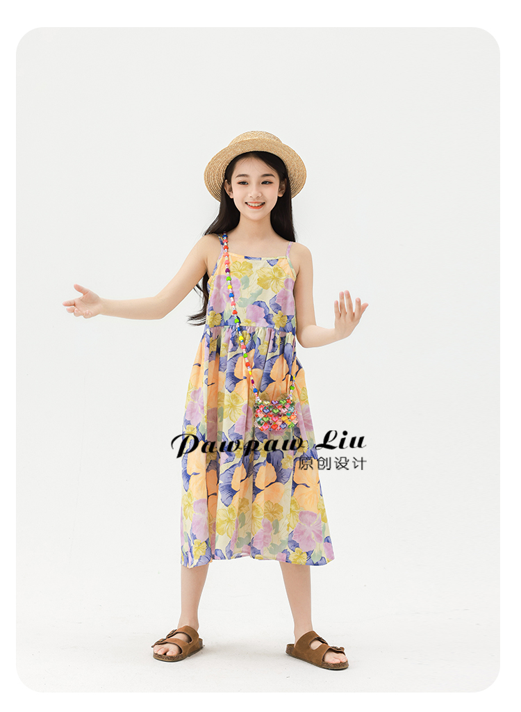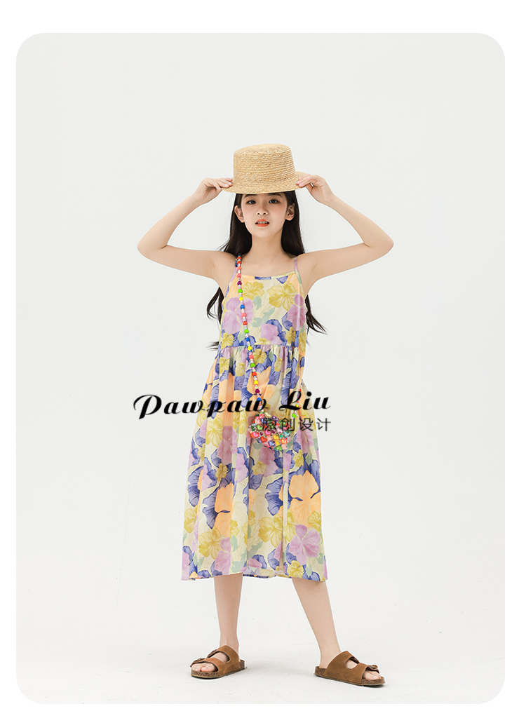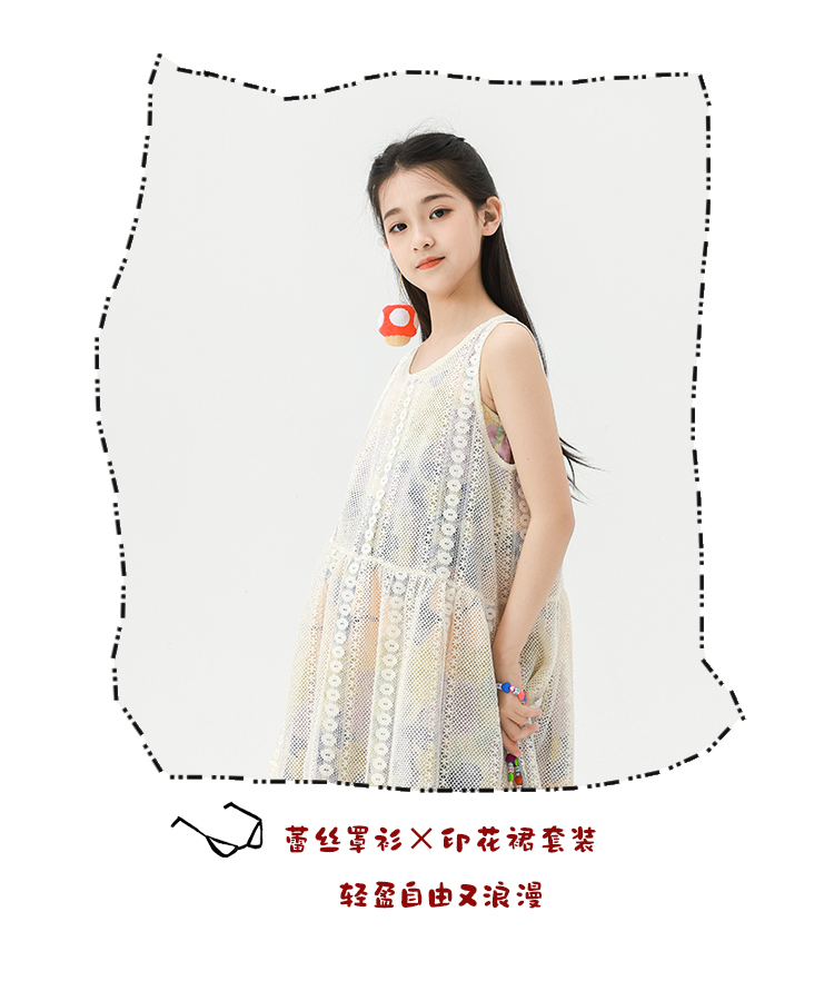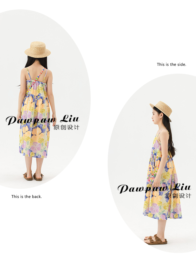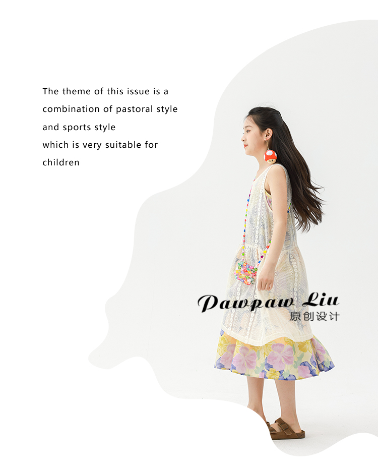 Pawpaw Liu原創設計女童夏套裝2025新款兒童碎花吊帶裙+蕾絲罩衫