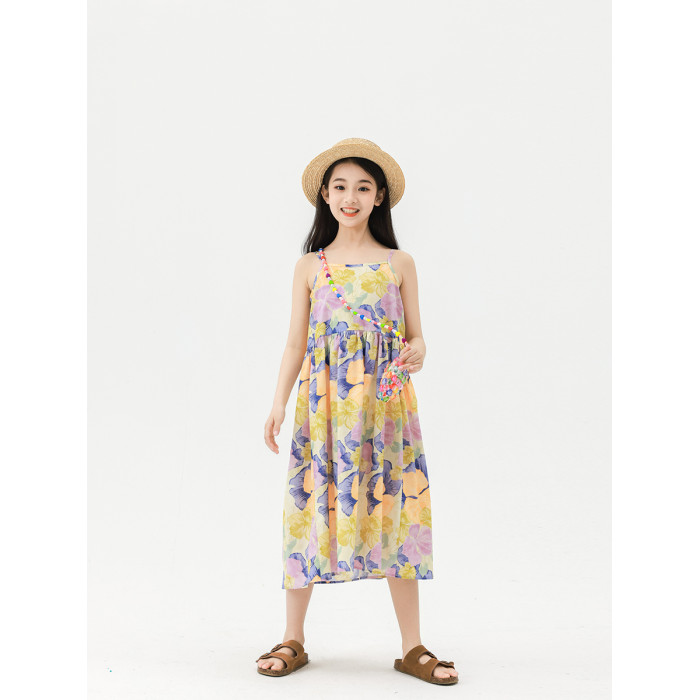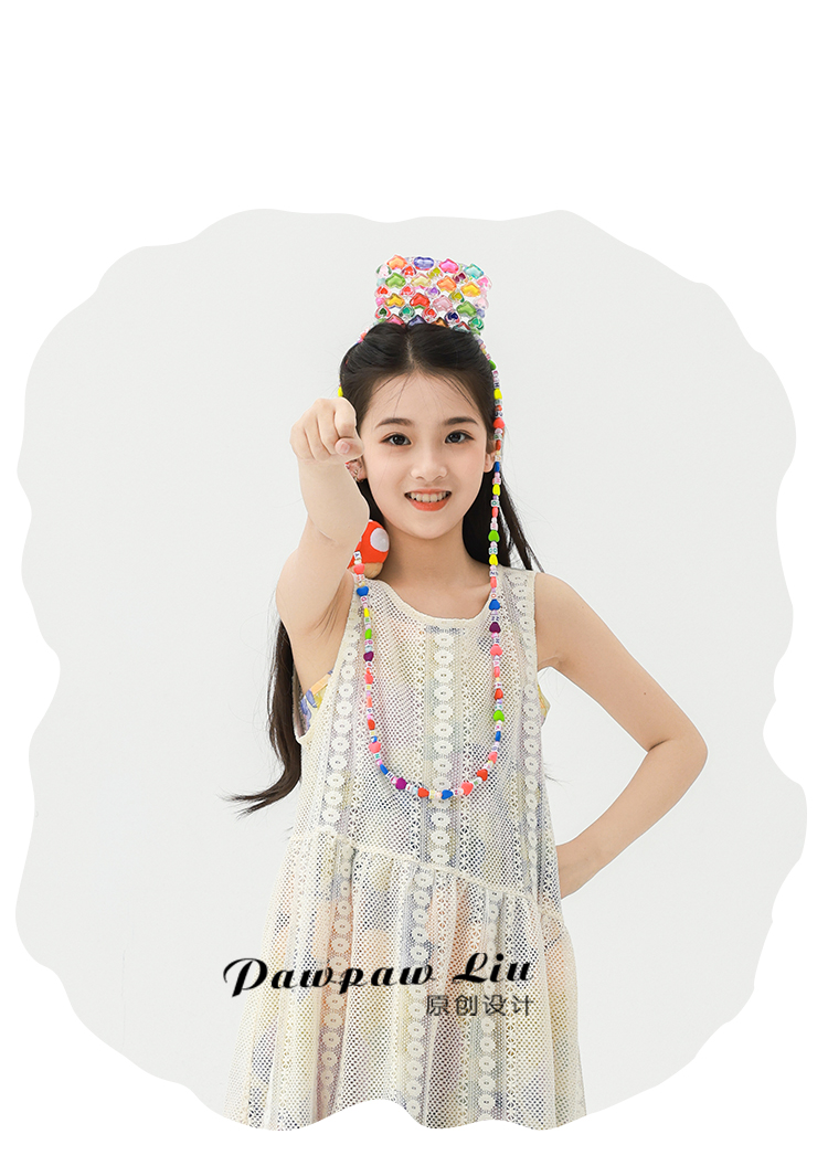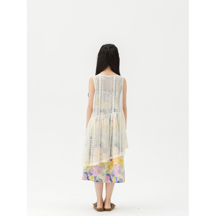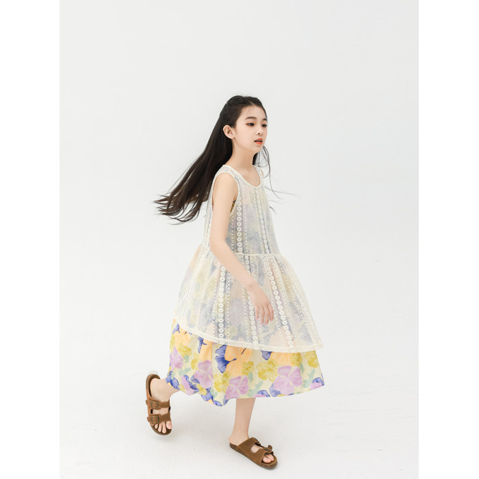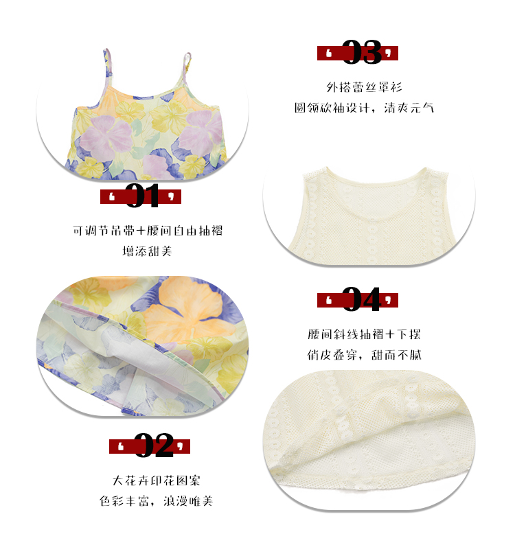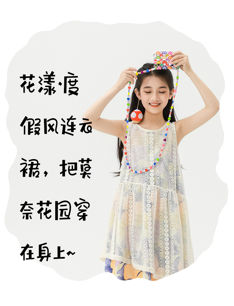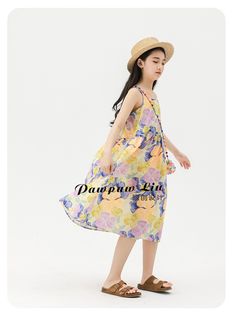 Pawpaw Liu原創設計女童夏套裝2025新款兒童碎花吊帶裙+蕾絲罩衫