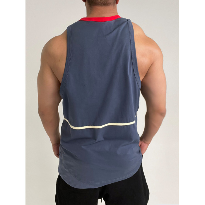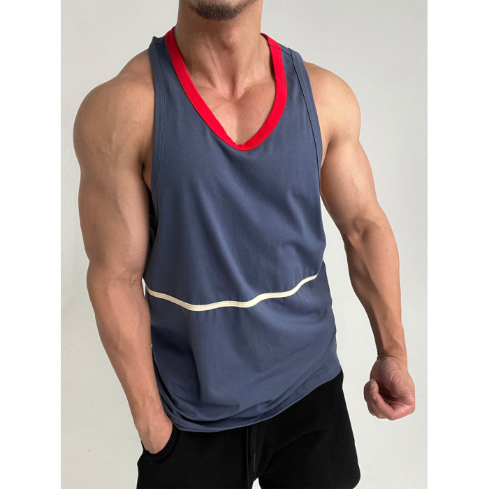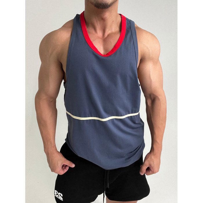 好面料!撞色彈性運動健身棉背心肌肉男顯身材顯壯無袖T恤海灘旅遊