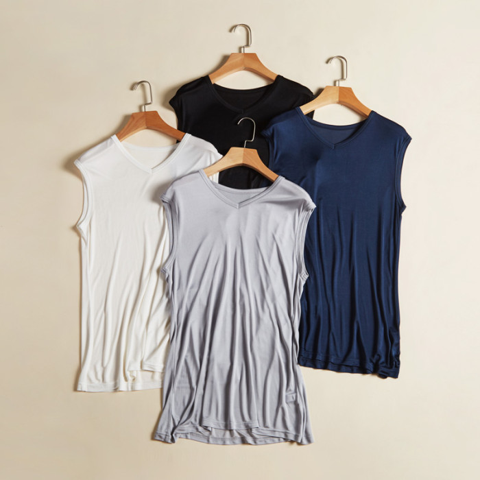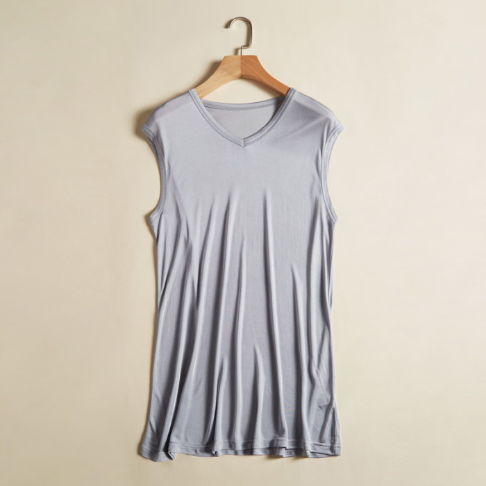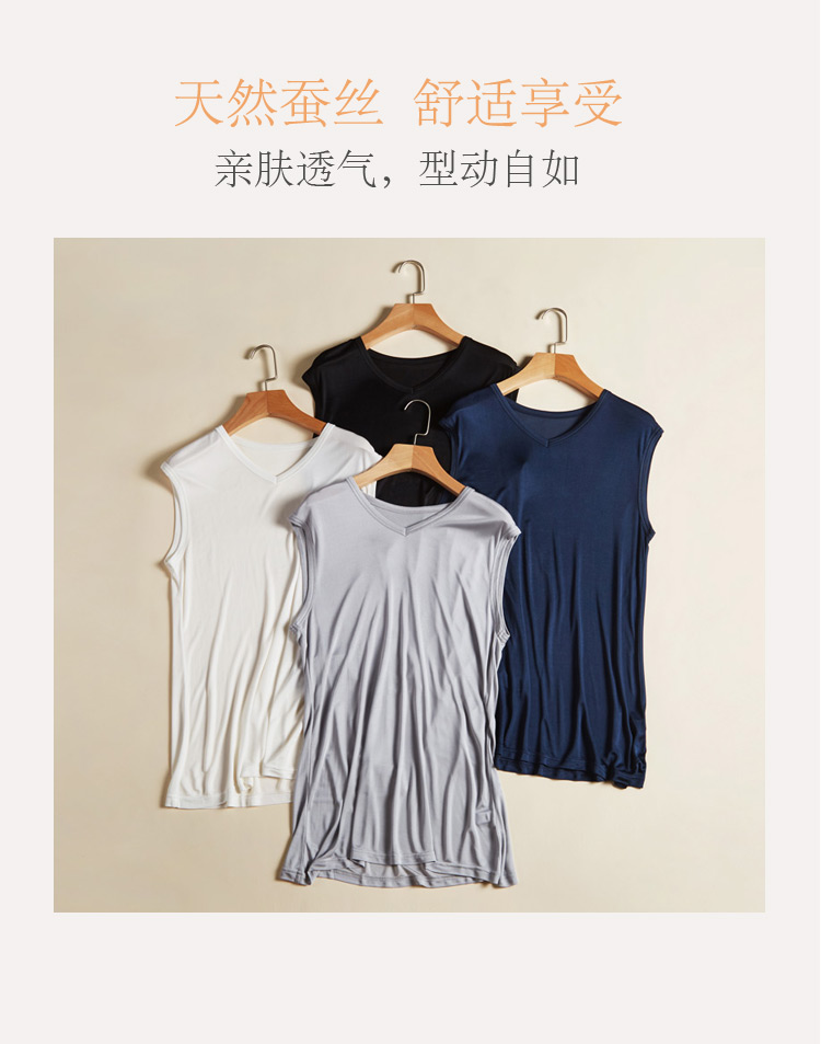 真絲針織男士背心寬松夏季無袖內衣大碼桑蠶絲上衣休閒汗背心男