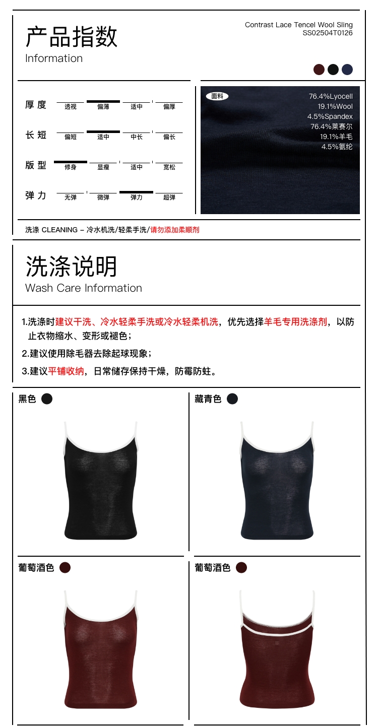 Oneup美麗奴羊毛吊帶女夏親膚透氣彈力撞色修身內搭打底外穿背心