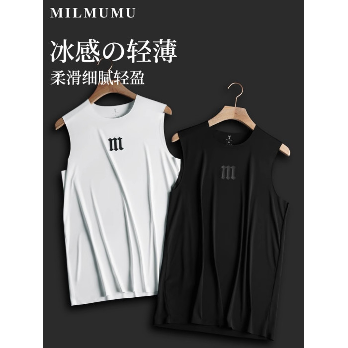MILMUMU羊奶絲男冰絲背心超薄無痕坎肩夏季降溫涼感彈力絲滑汗衫