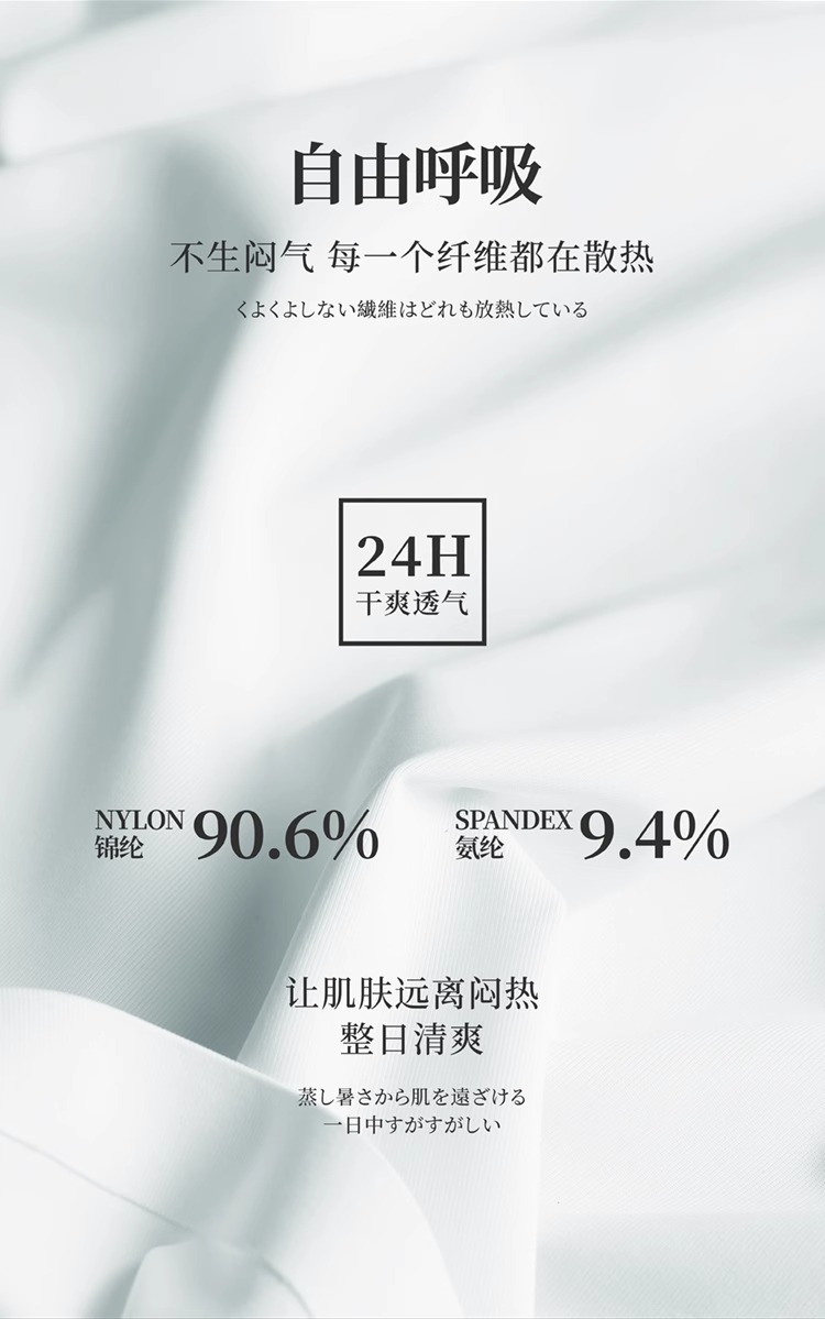 材質成分 聚醯胺纖維(錦綸)90.6% 聚氨酯彈性纖維(氨綸)9.4%