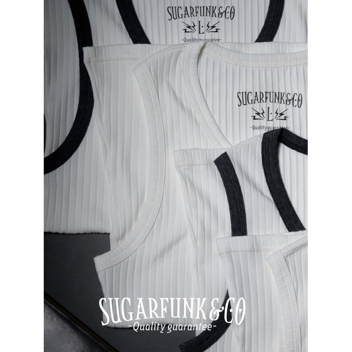 Sugarfunk修身粗螺紋條紋彈力純棉打底背心美式復古/阿美哢嘰