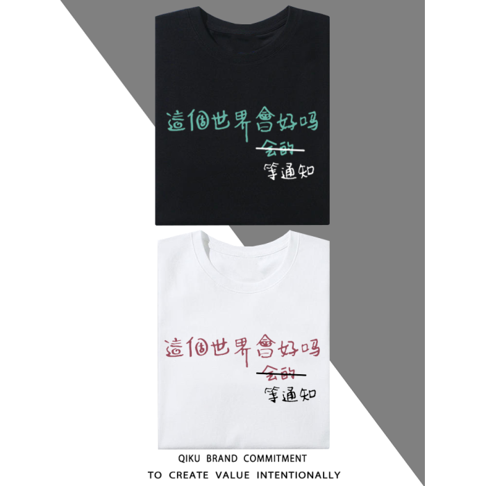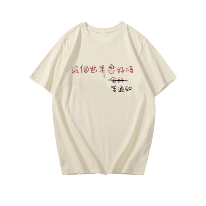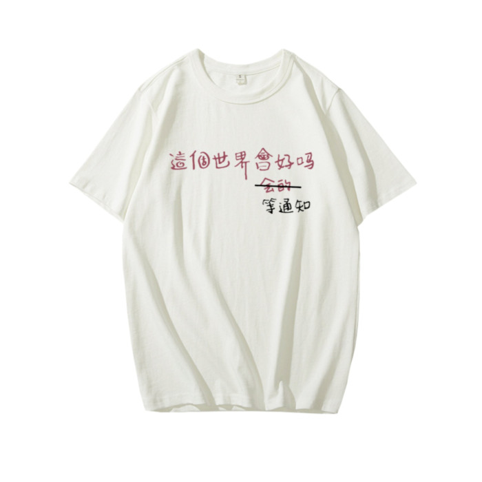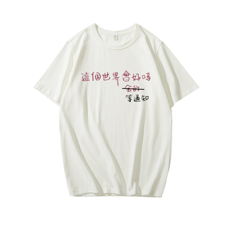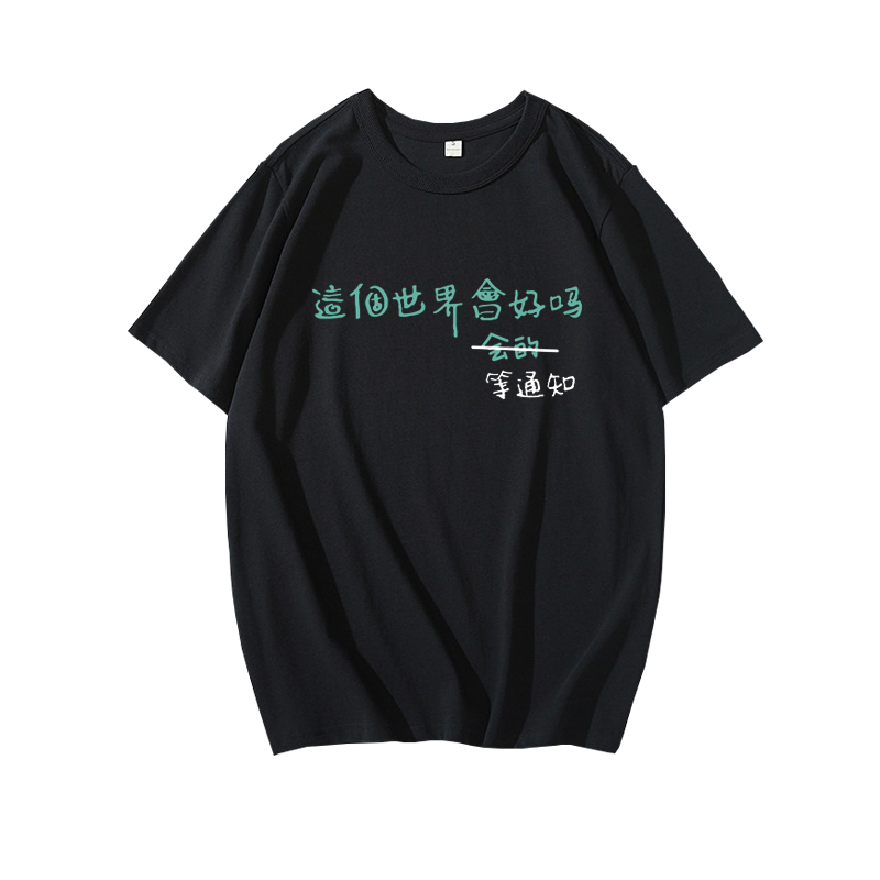 這個世界會好嗎會的等通知短袖T恤趣味文字印花半袖衫上衣服背心