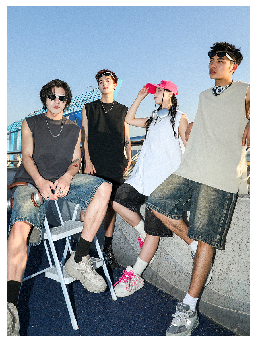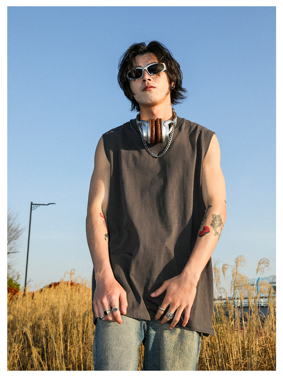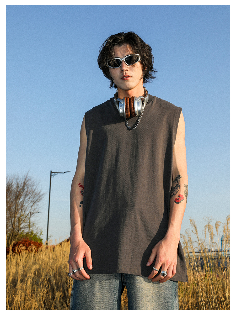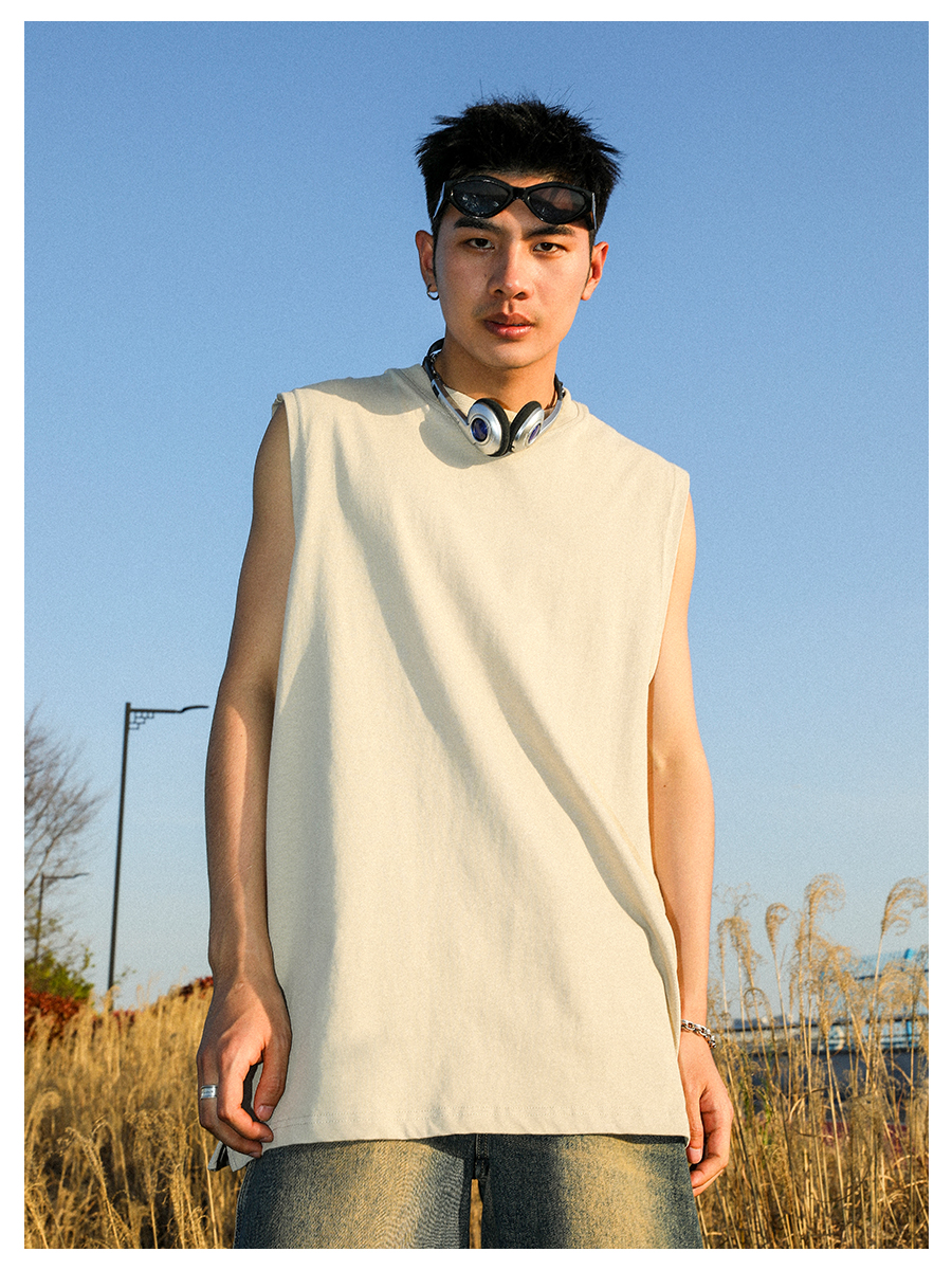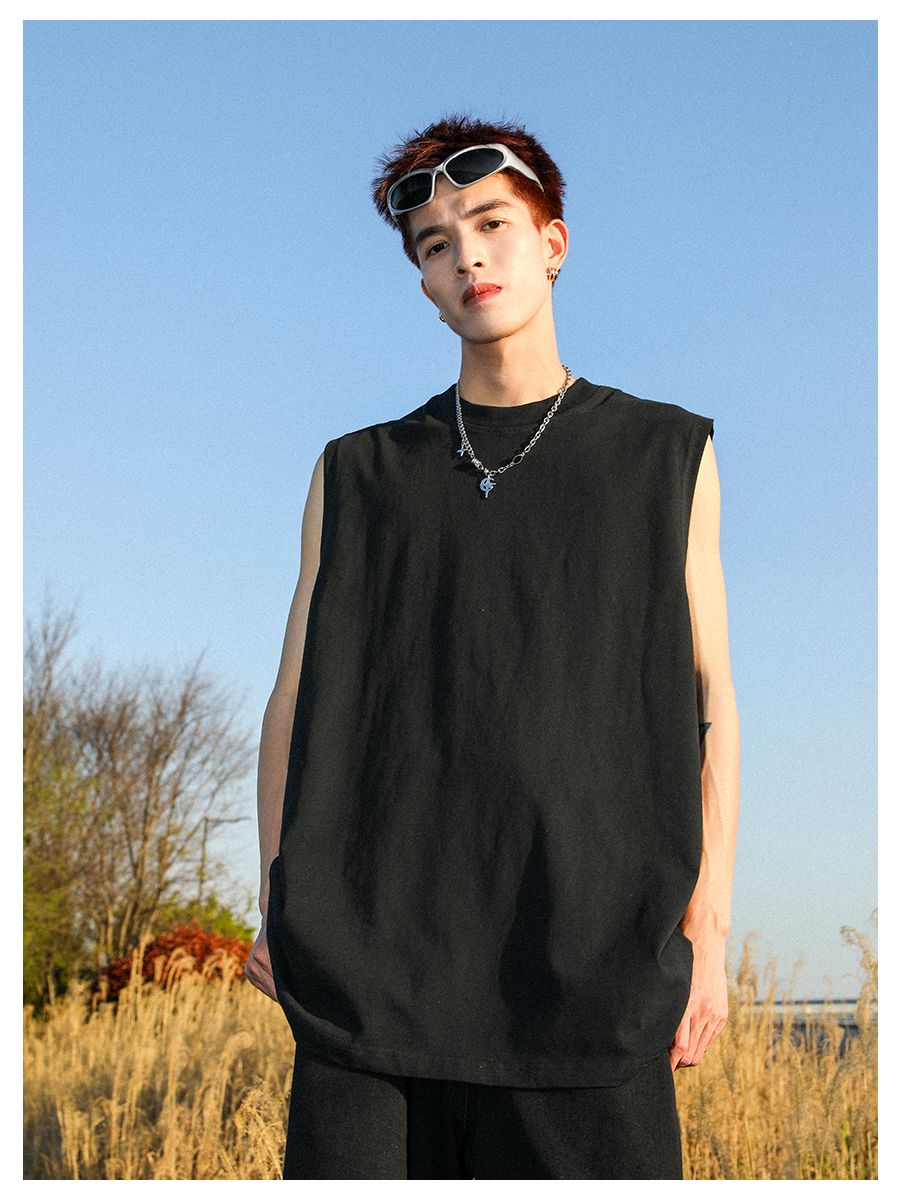 MANYSTON 美式280g重磅坎肩背心男款夏季籃球健身運動純棉無袖t恤