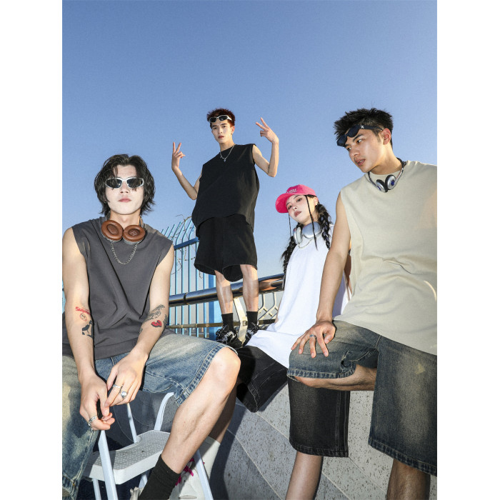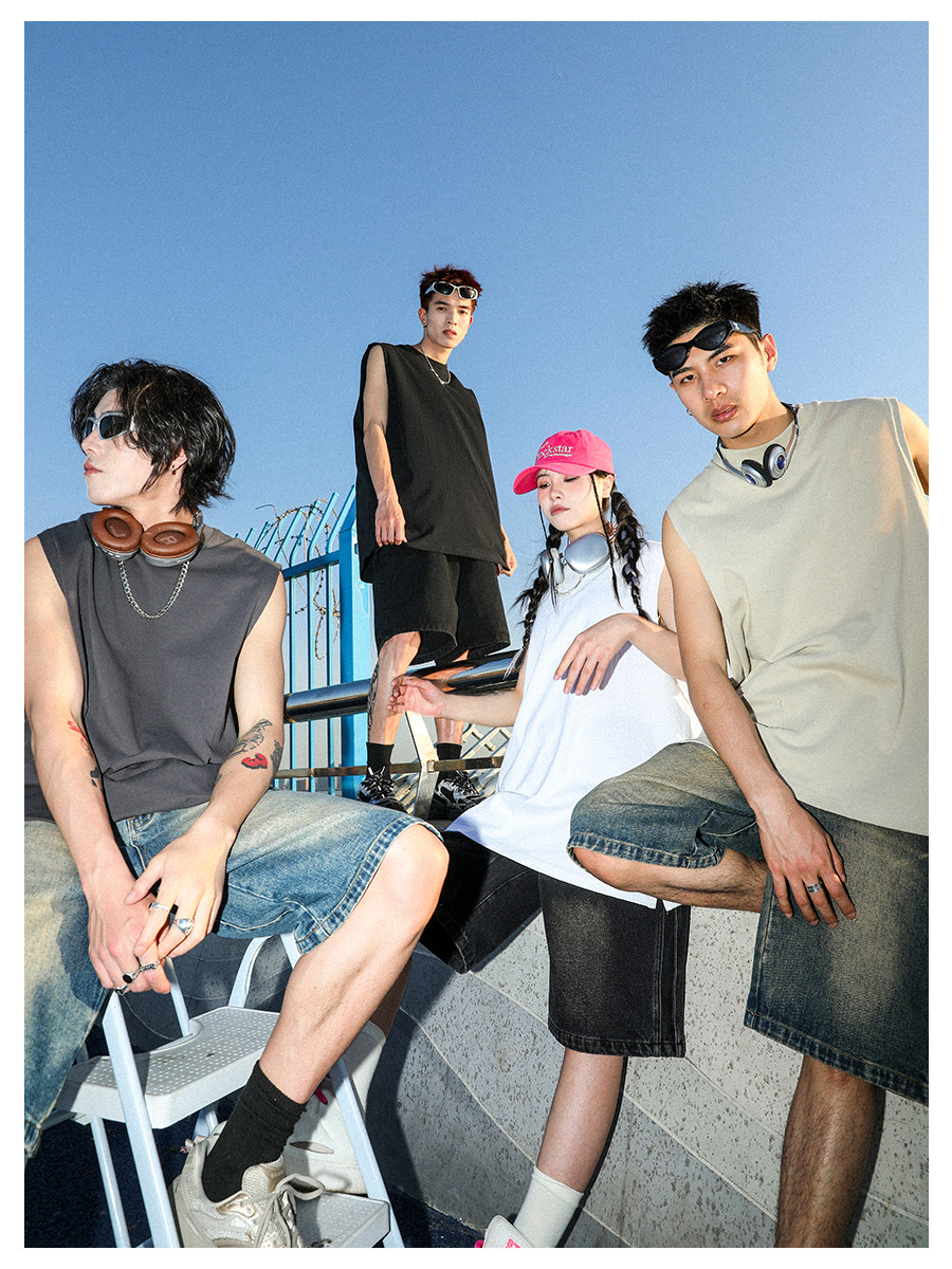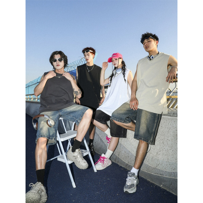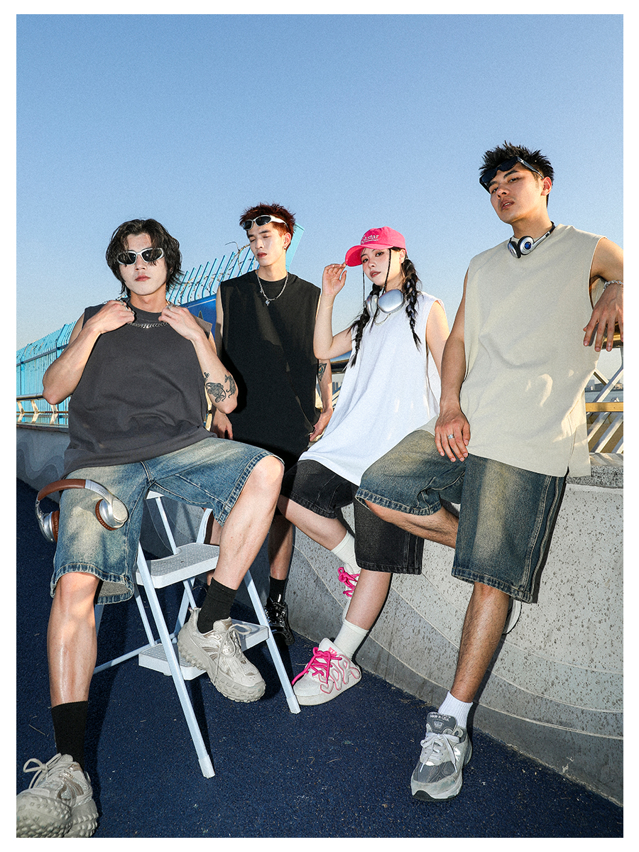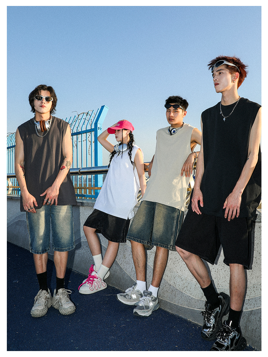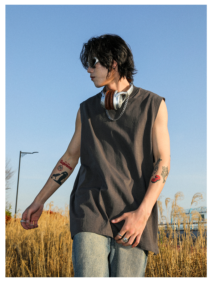 MANYSTON 美式280g重磅坎肩背心男款夏季籃球健身運動純棉無袖t恤