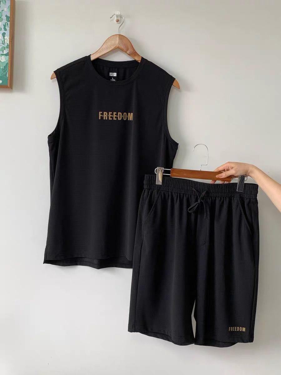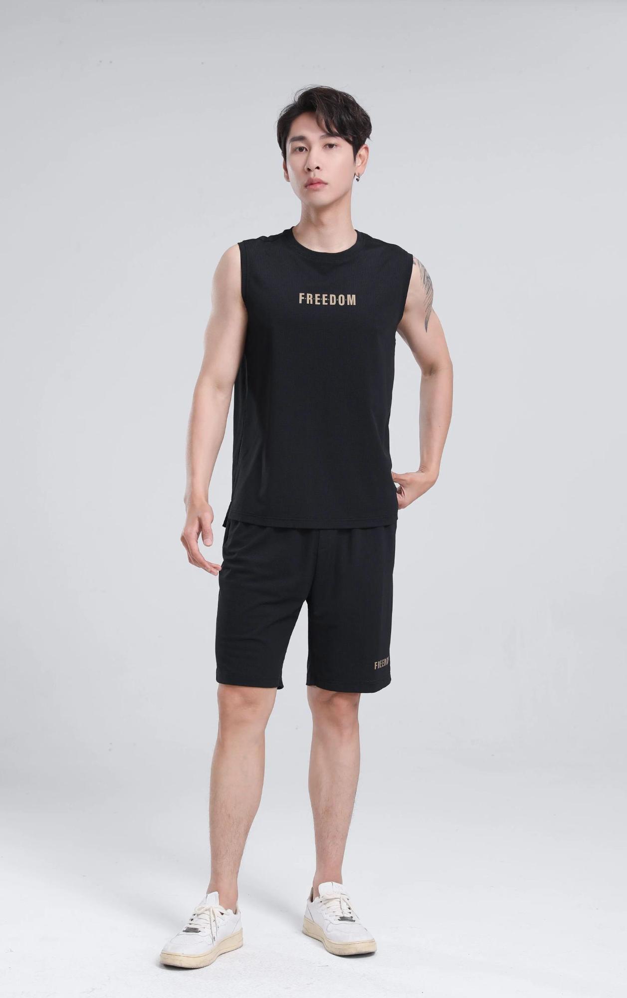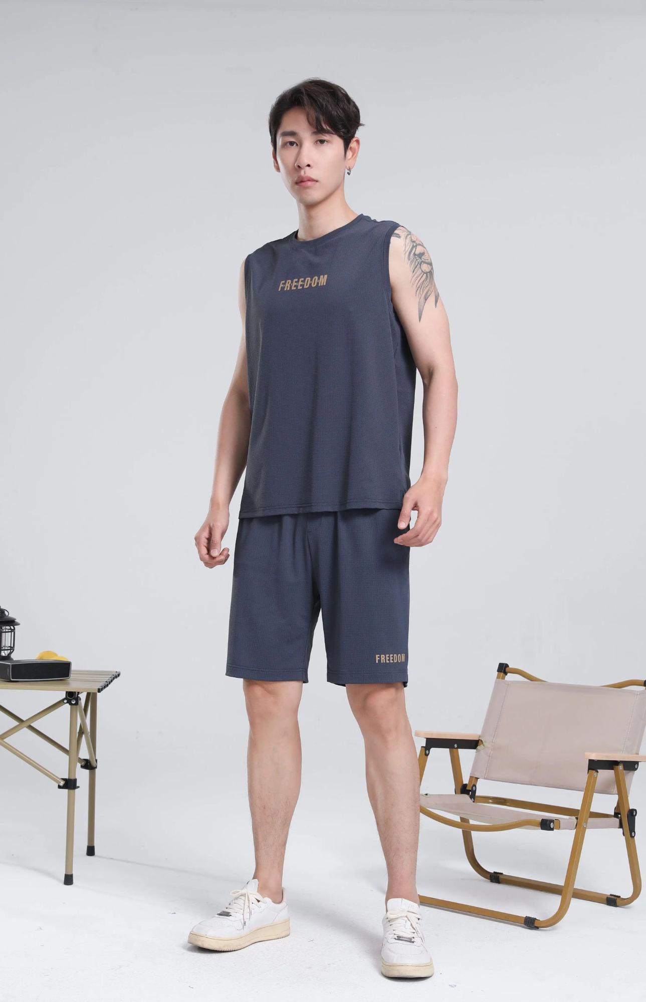 梵貝希男士背心短褲夏季坎袖速乾寬松大碼運動健身套裝t恤8451142