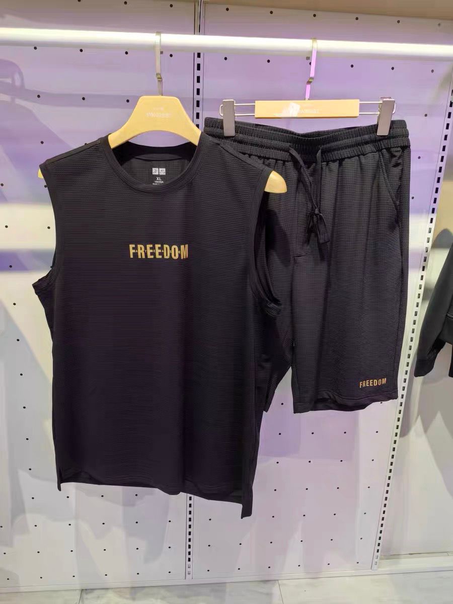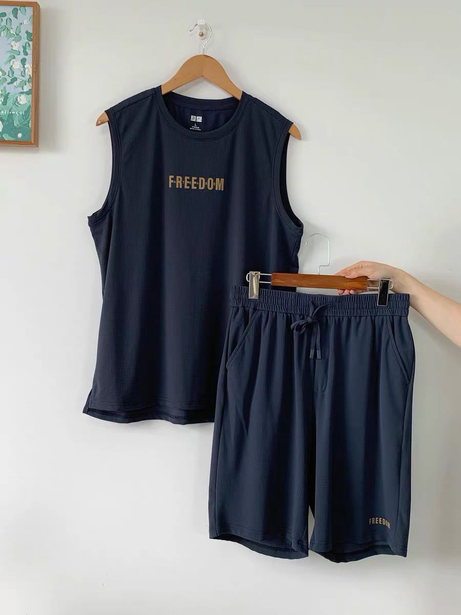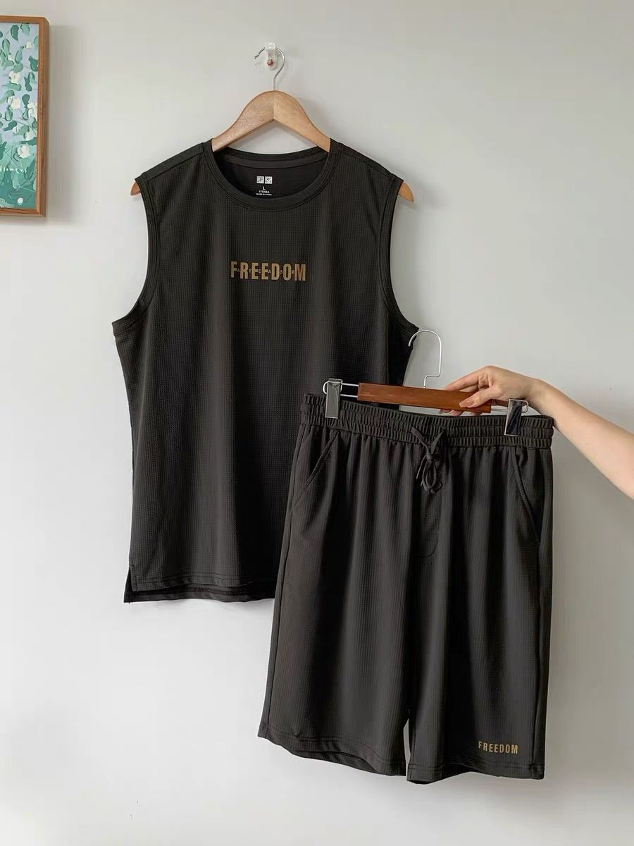 梵貝希男士背心短褲夏季坎袖速乾寬松大碼運動健身套裝t恤8451142