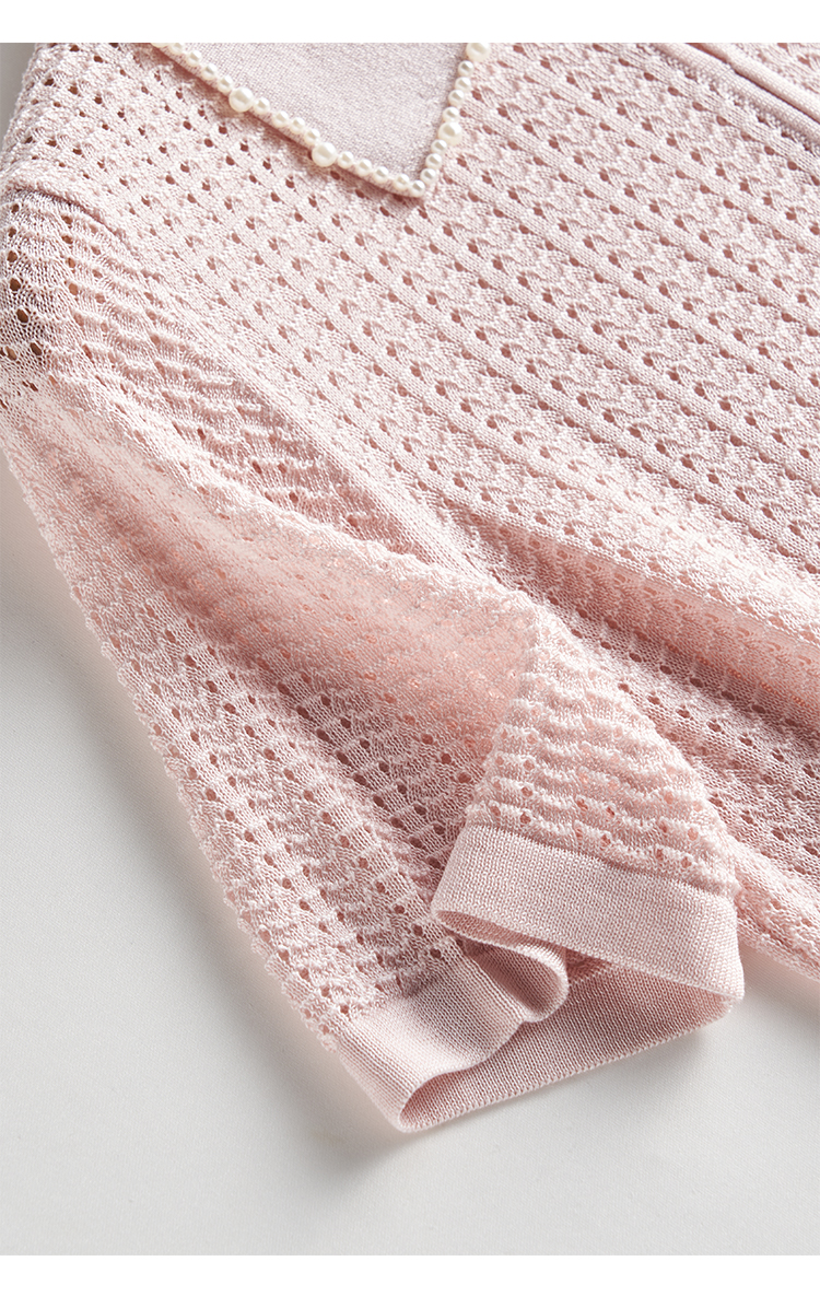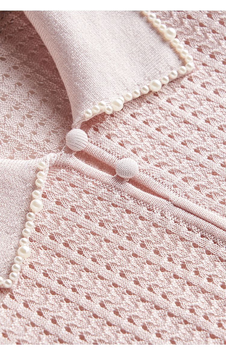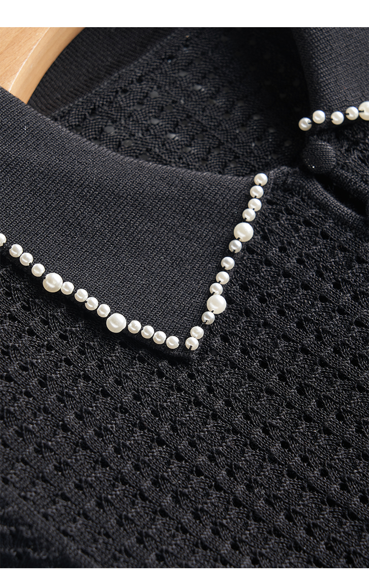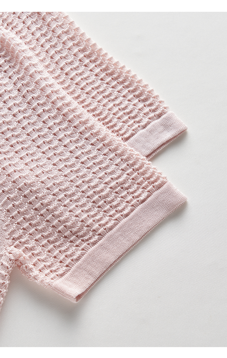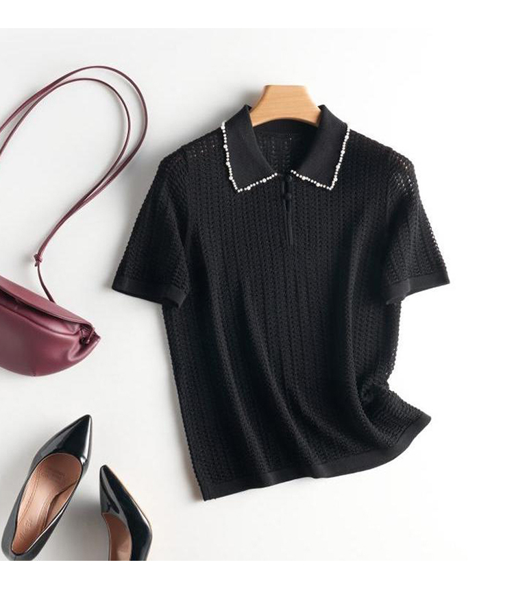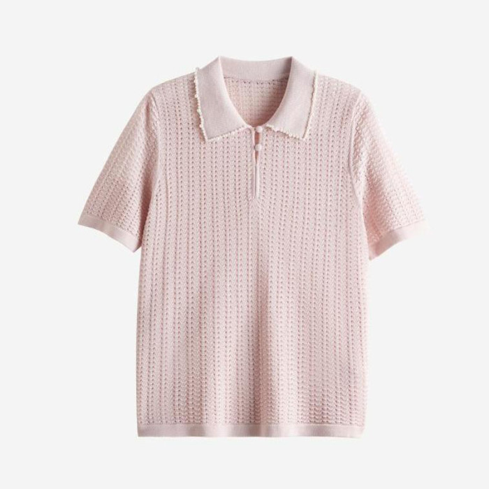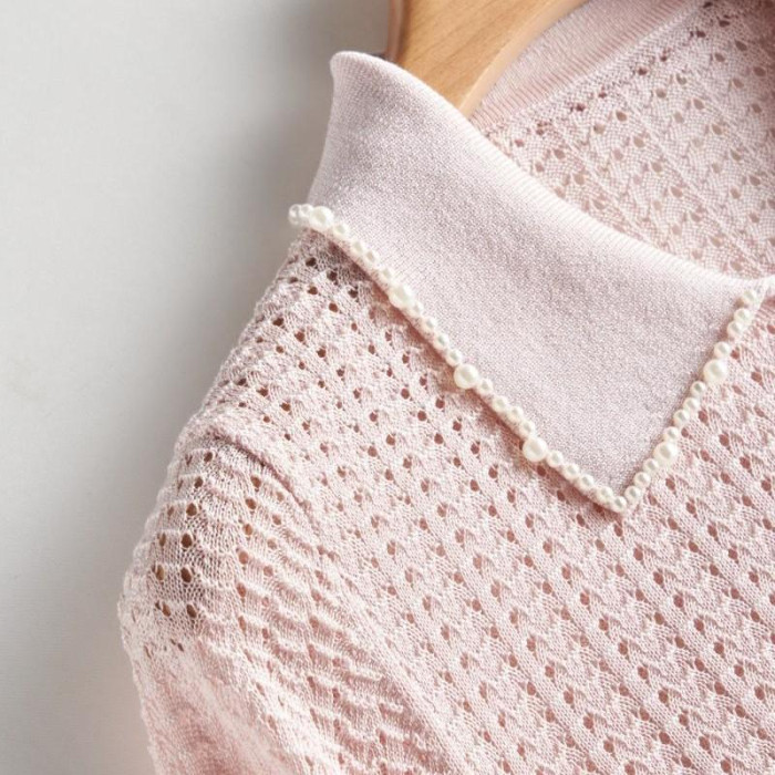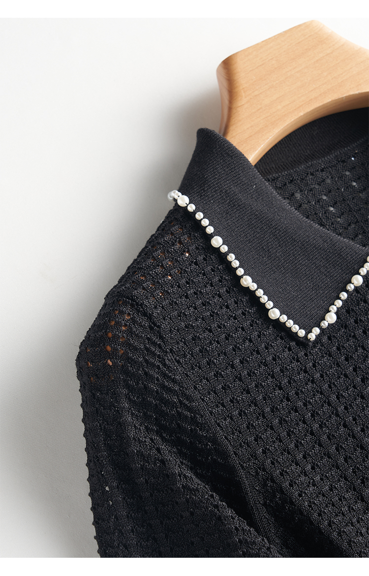 輕奢小香風~桑蠶絲短袖女polo衫珍珠翻領萊賽爾天絲寬松針織衫薄