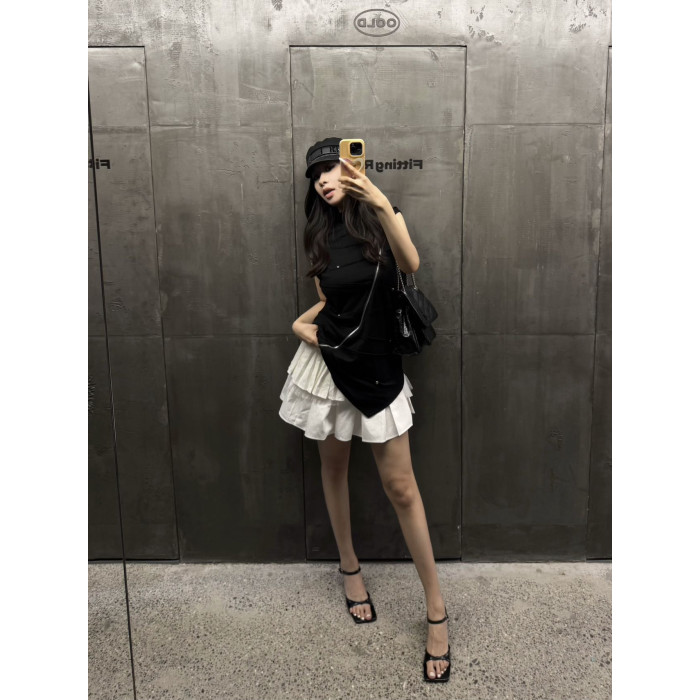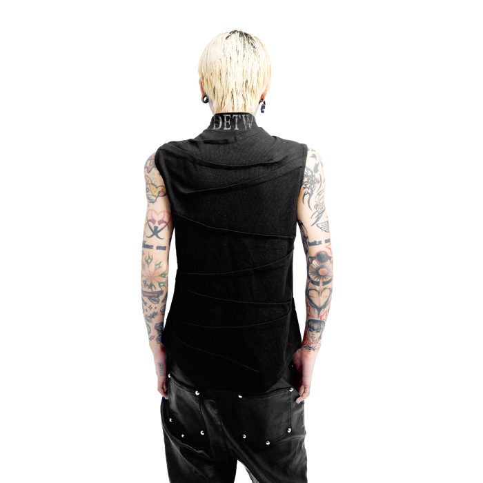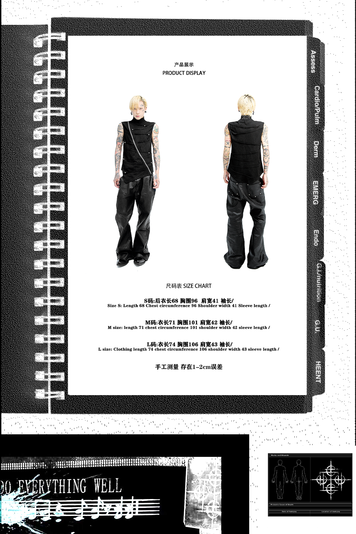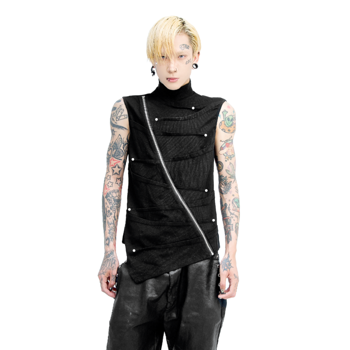 DETW 25ss*《暗黑》原創小衆斜拉鍊鉚釘褶皺背心立領高級感短袖T