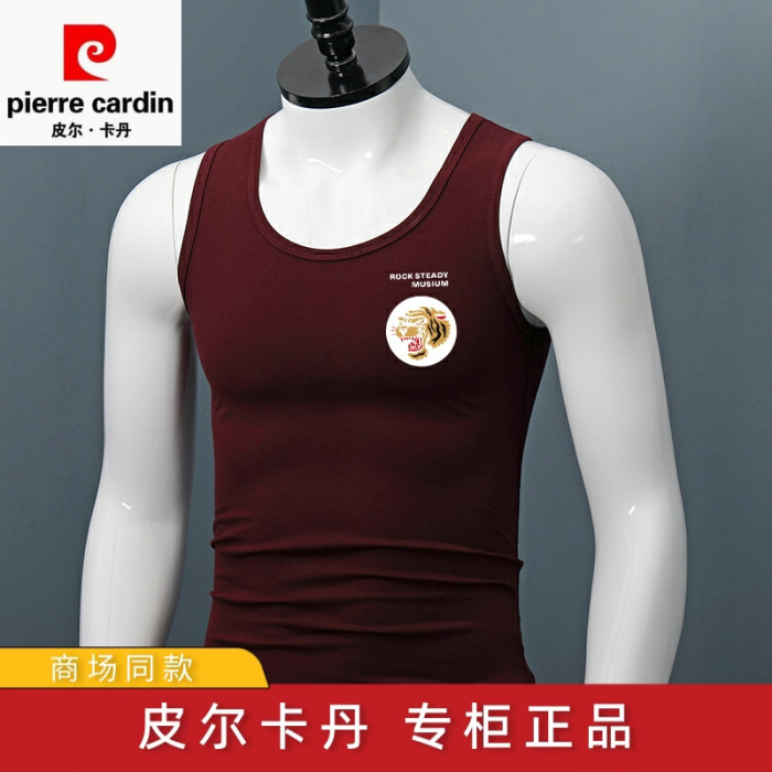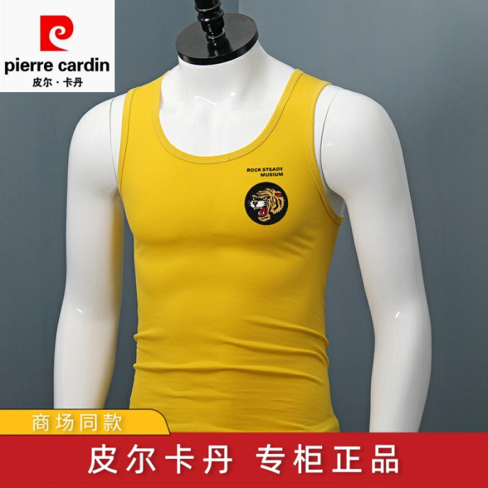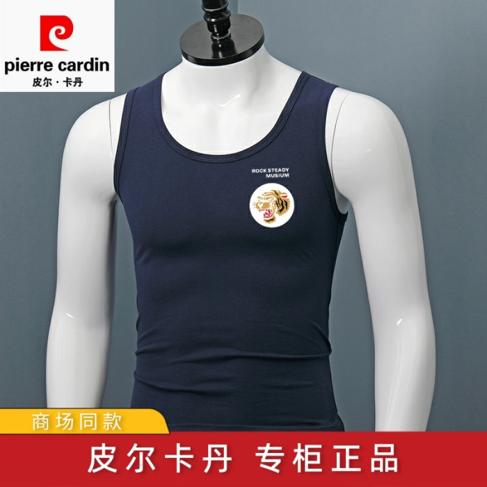 皮爾卡丹純棉寬肩背心男士夏季新款大碼修身薄款運動健身無袖汗衫
