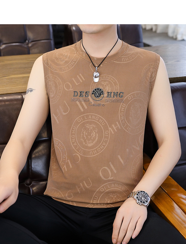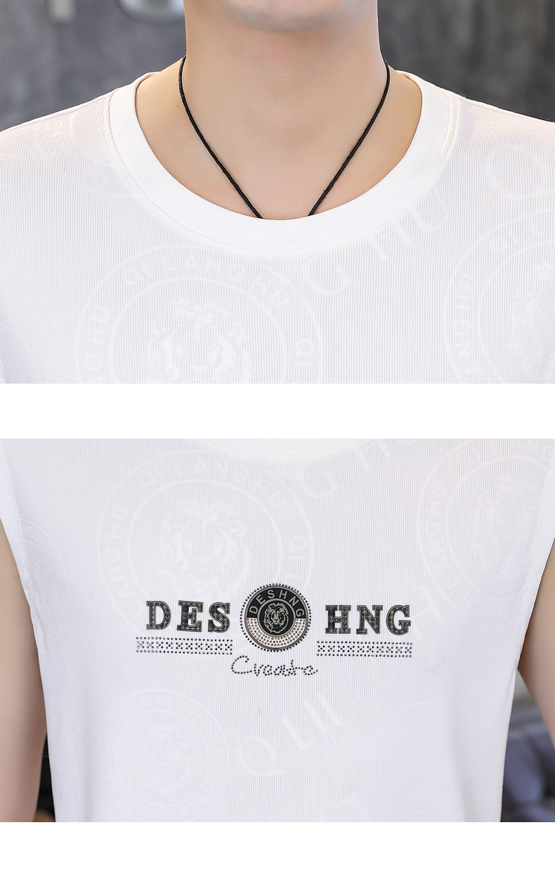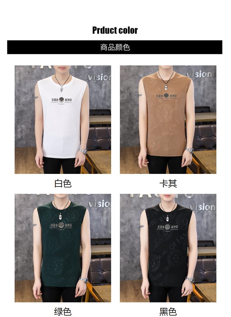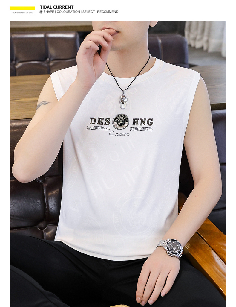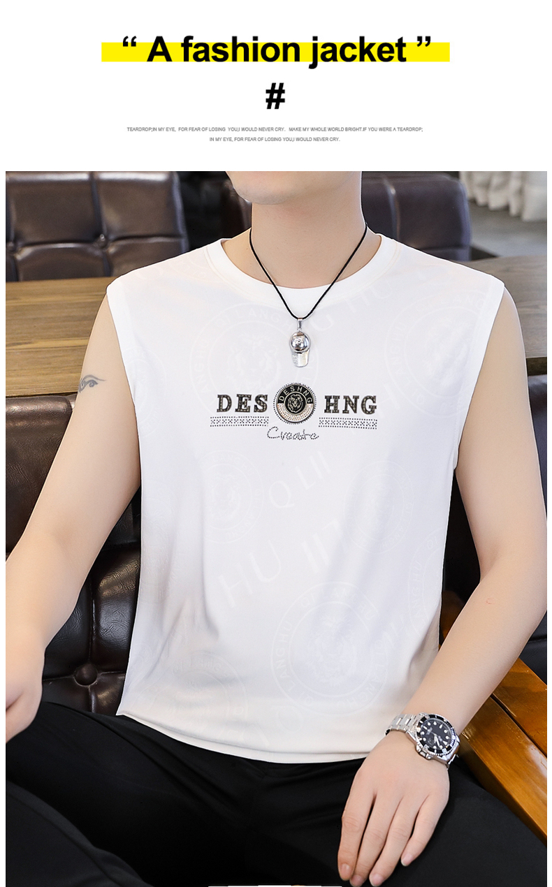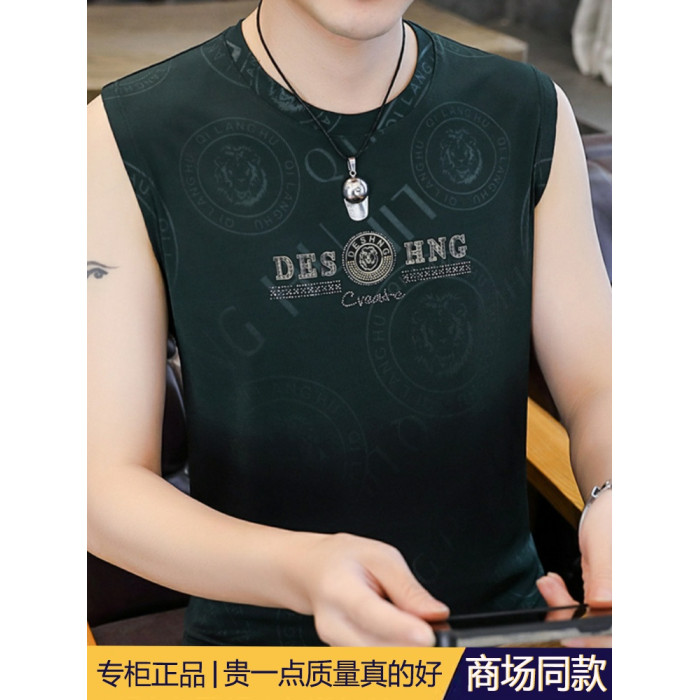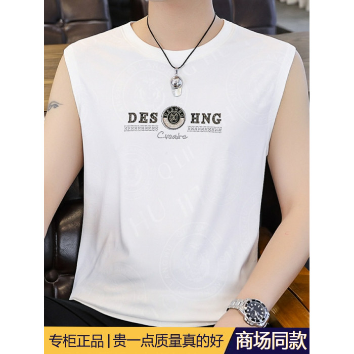 高級潮流夏季男士背心薄款圓領無袖汗衫冰絲短袖t恤速乾打底上衣