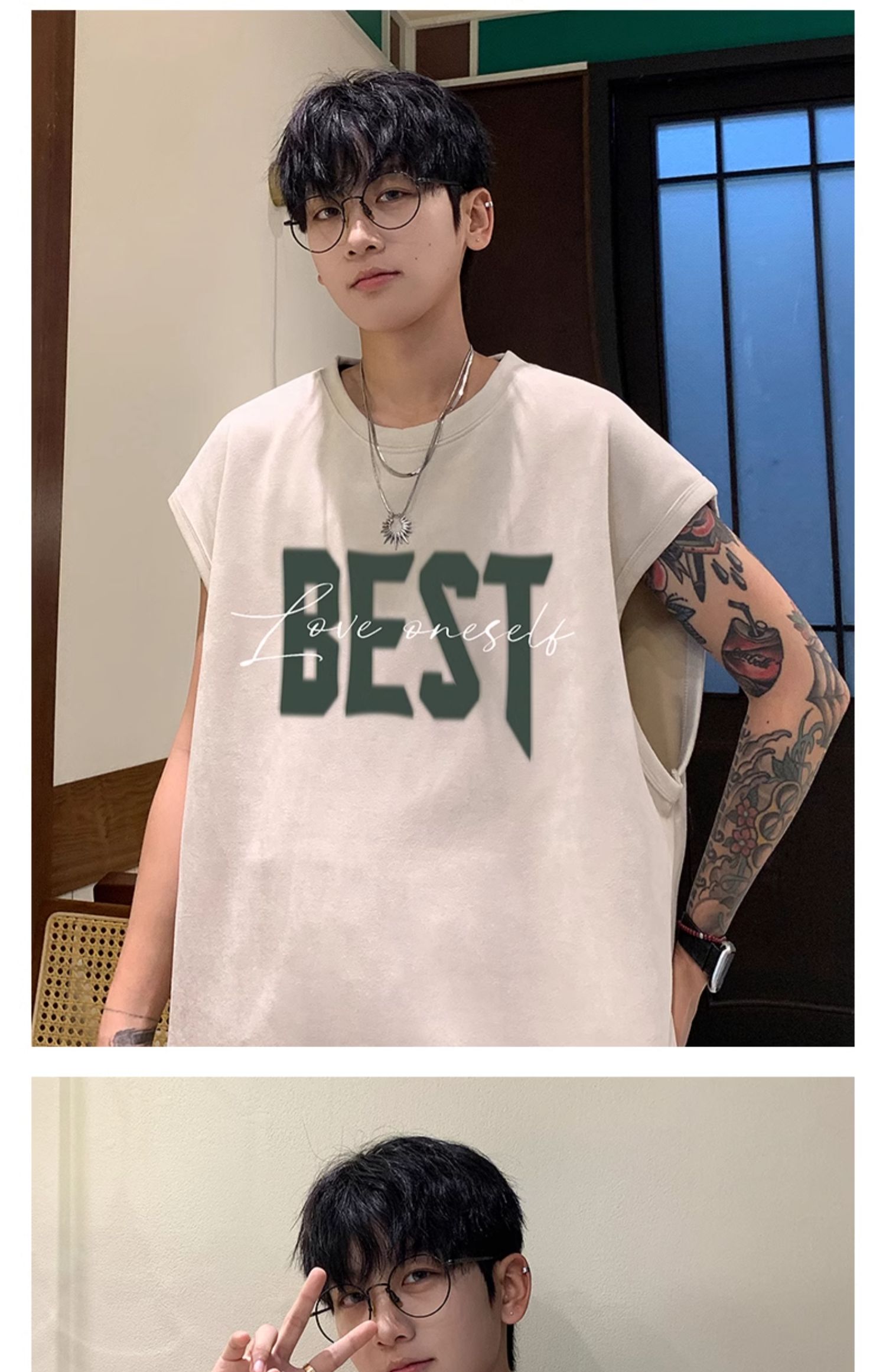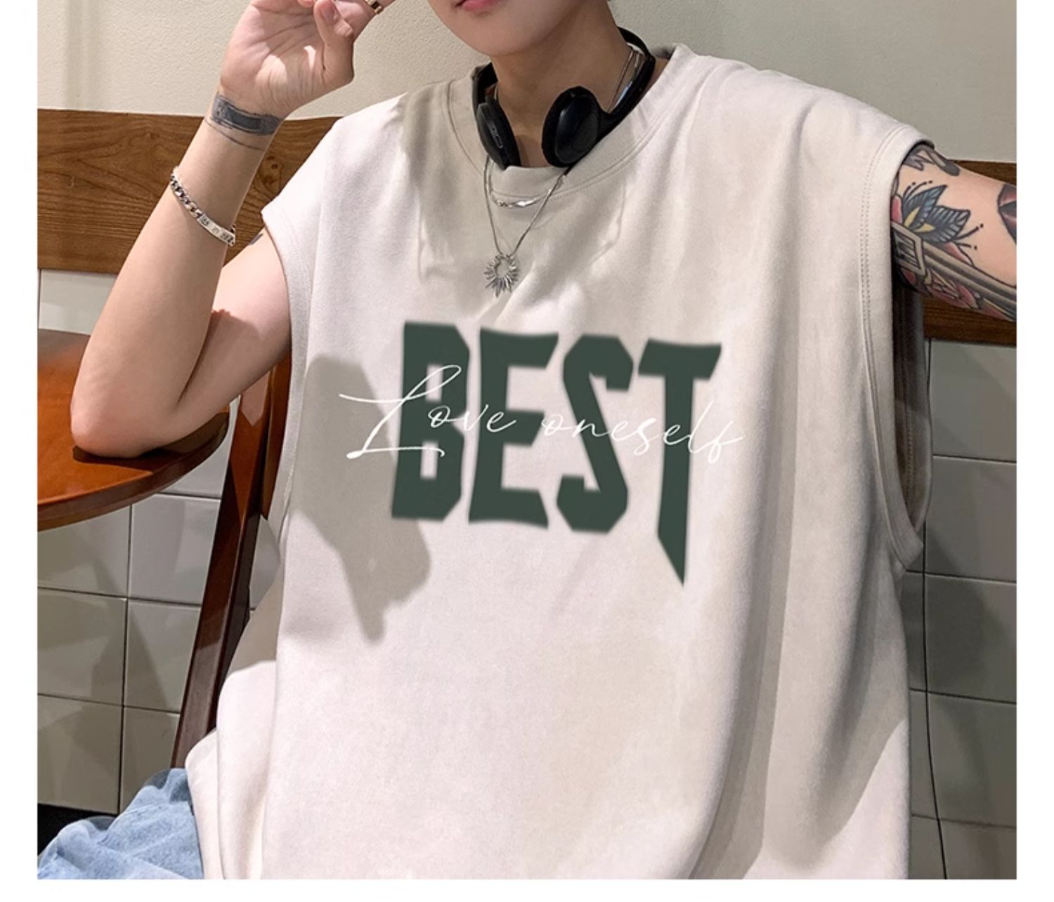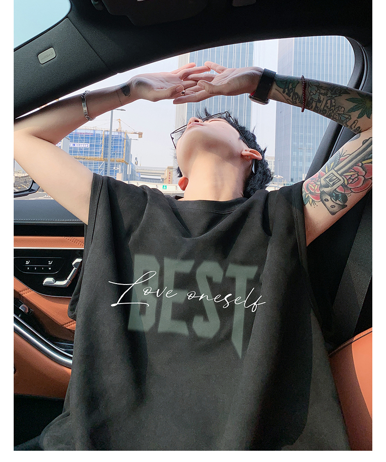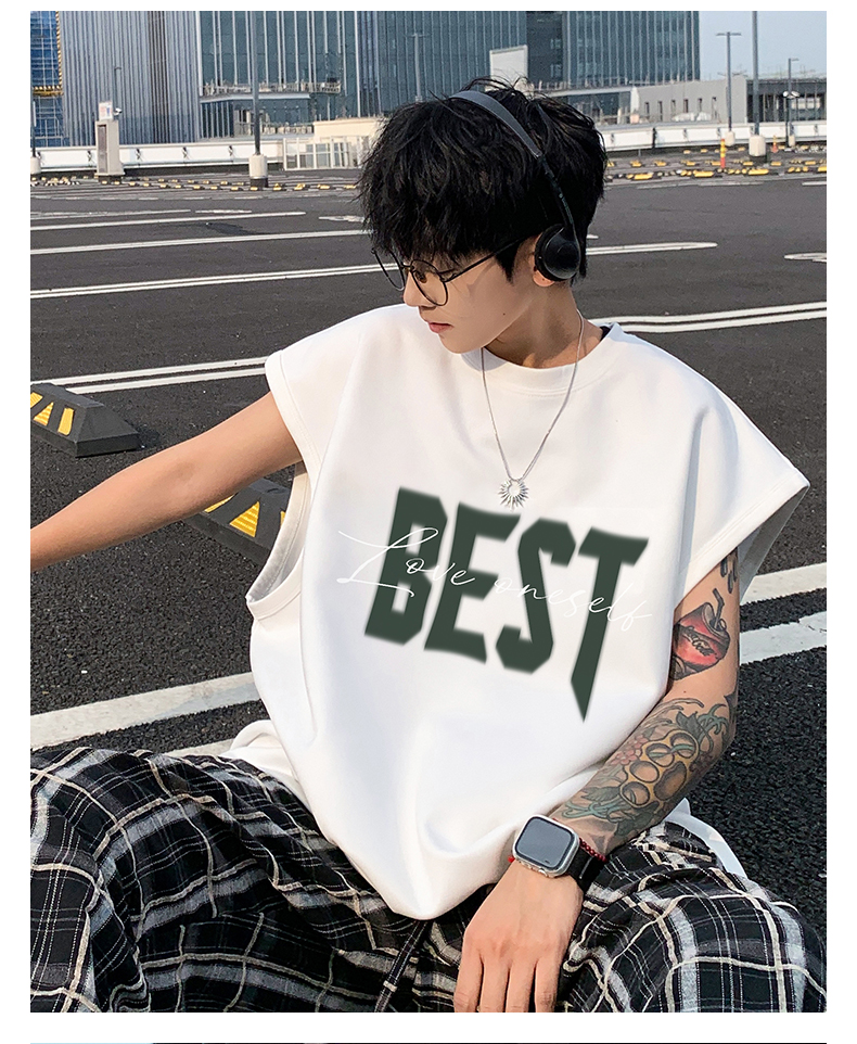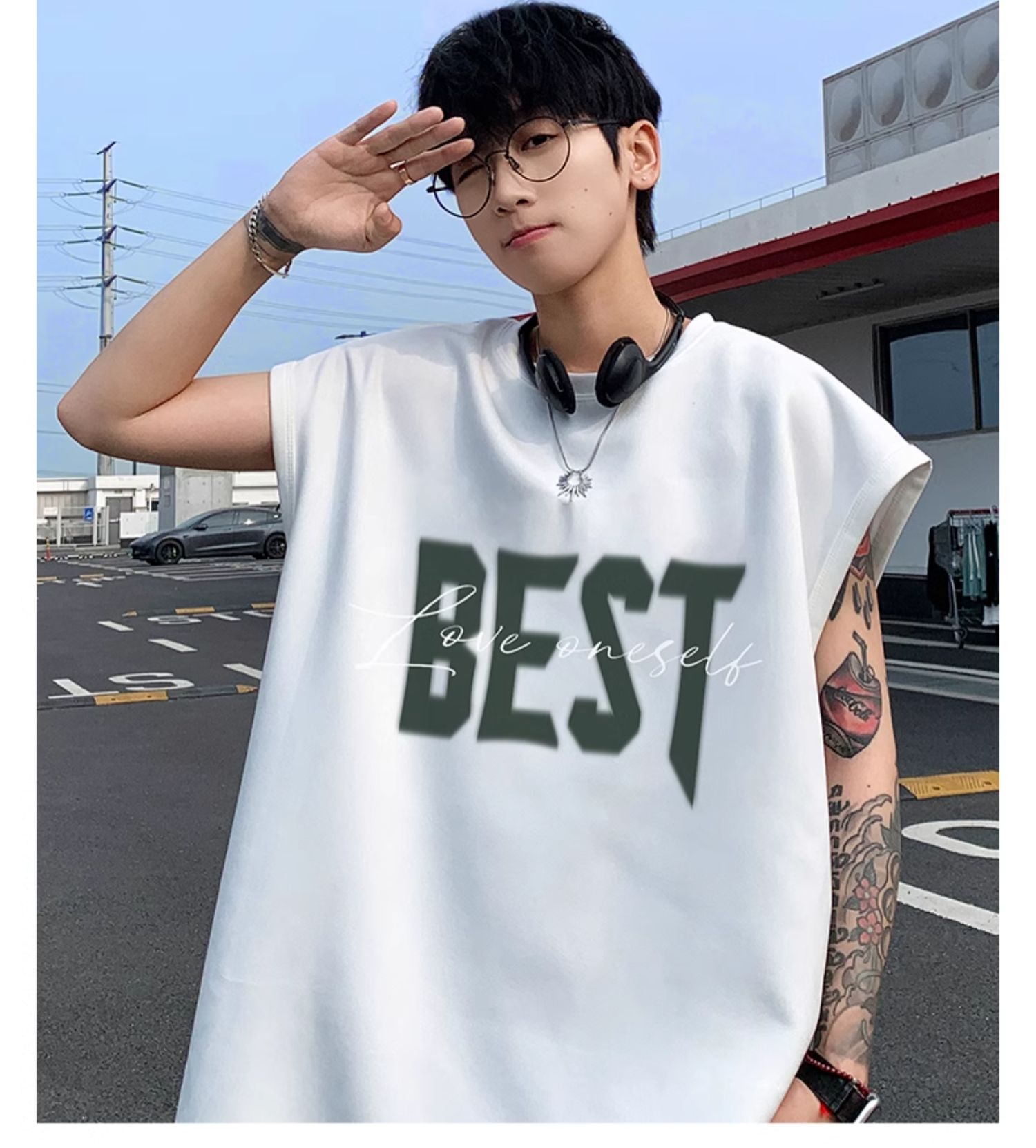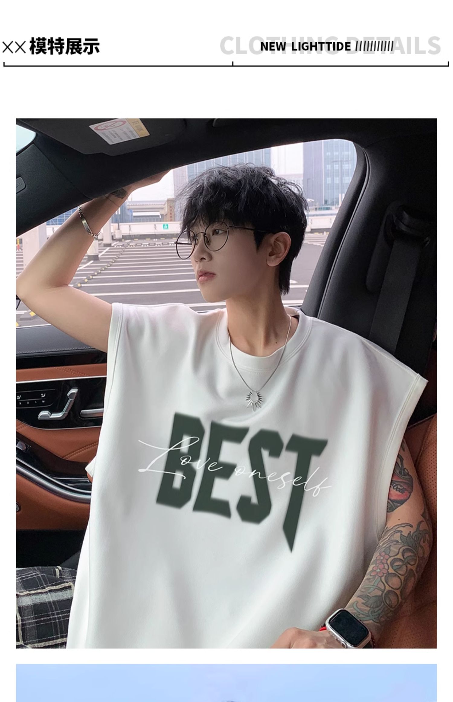 粉色重磅麂皮背心男款夏季潮流潮牌寬松大碼無袖t恤男生坎肩短袖