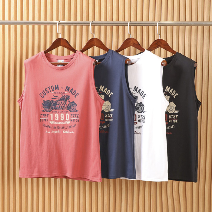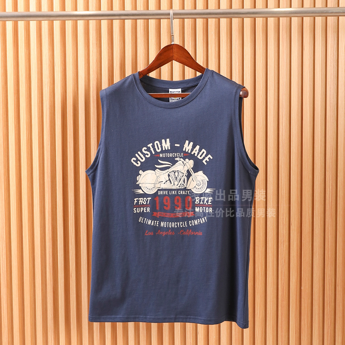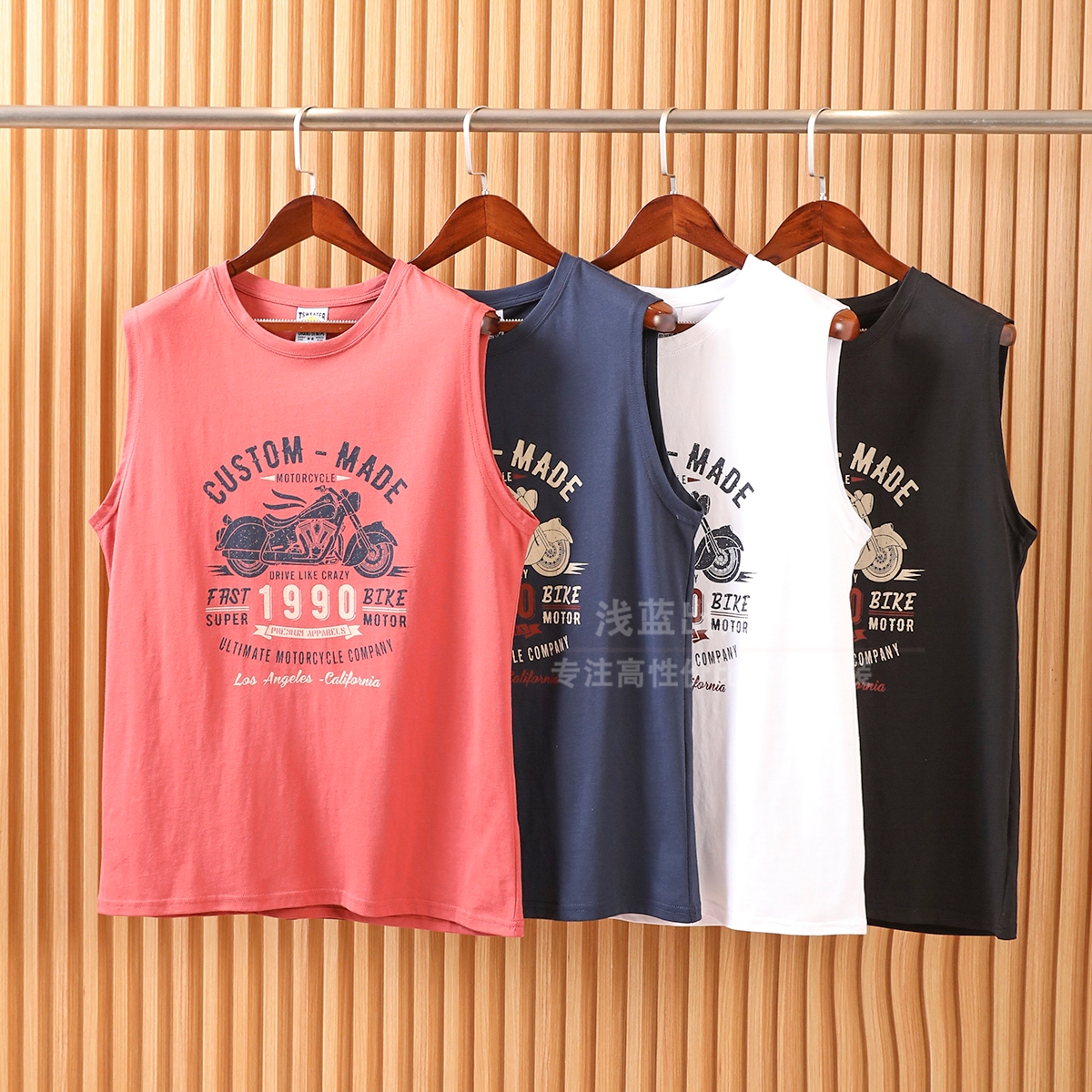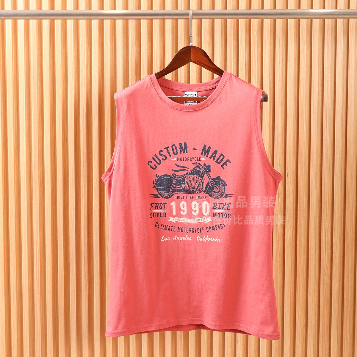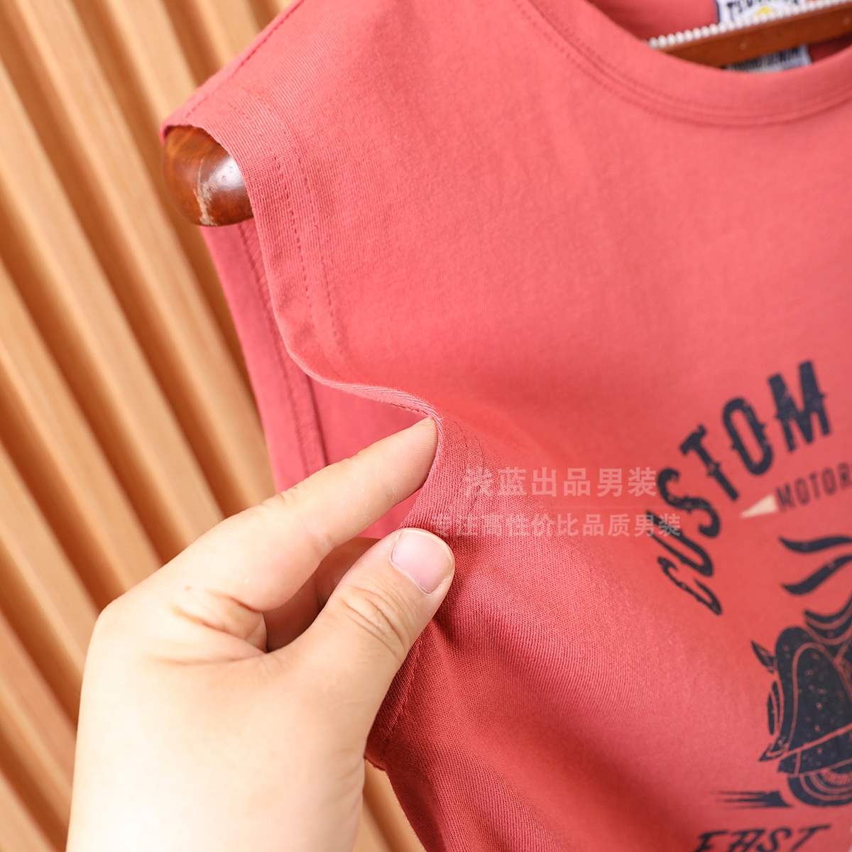 阿美哢嘰復古風!新疆長絨棉!立體印花!夏季男打底無袖背心上衣